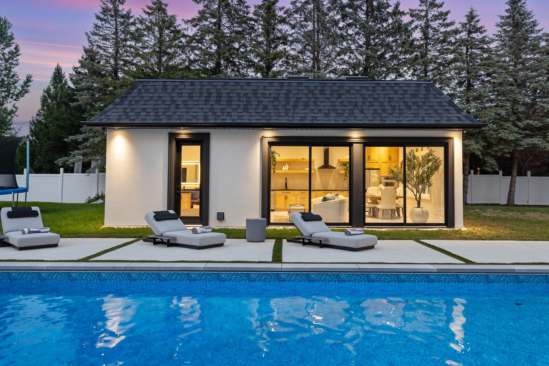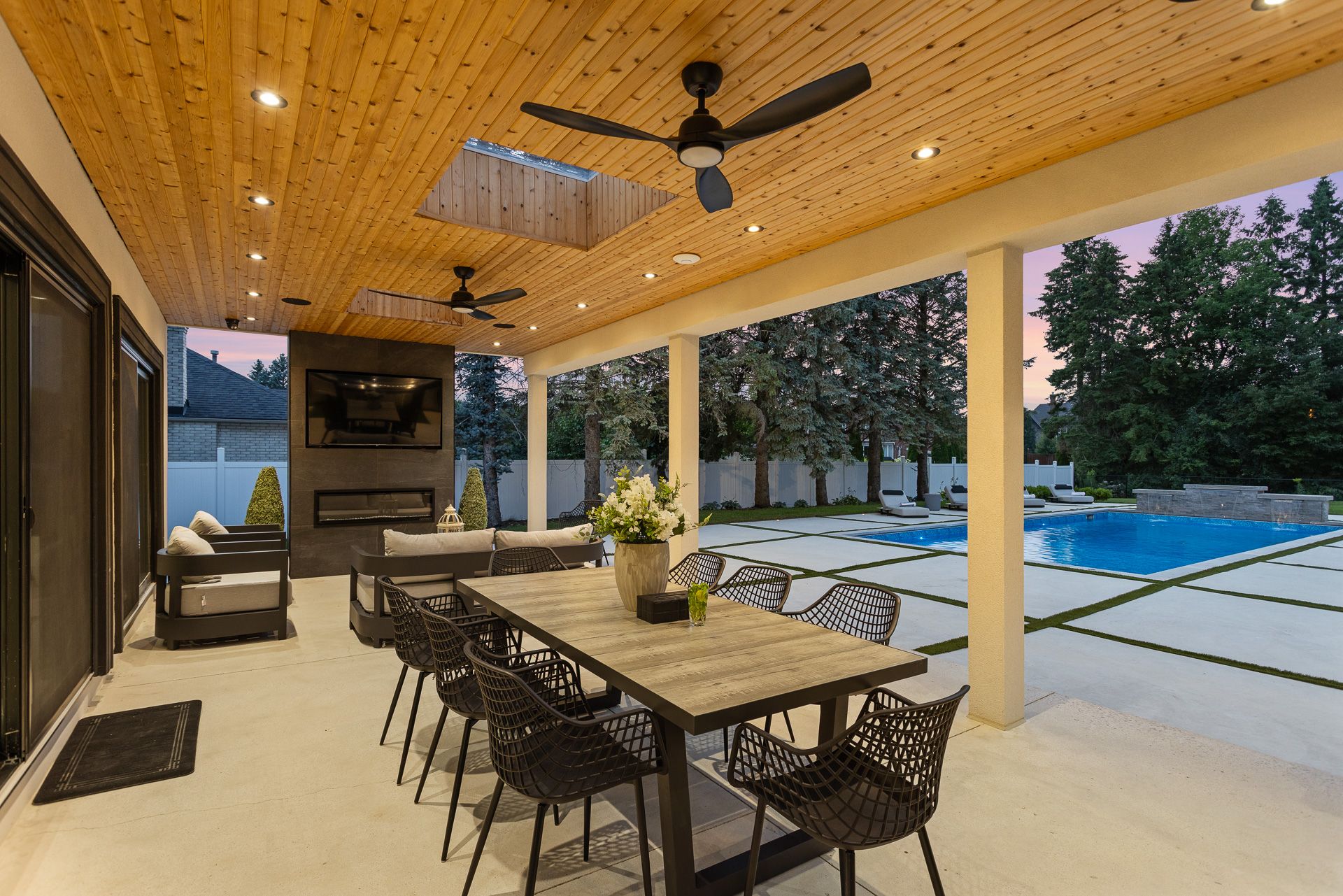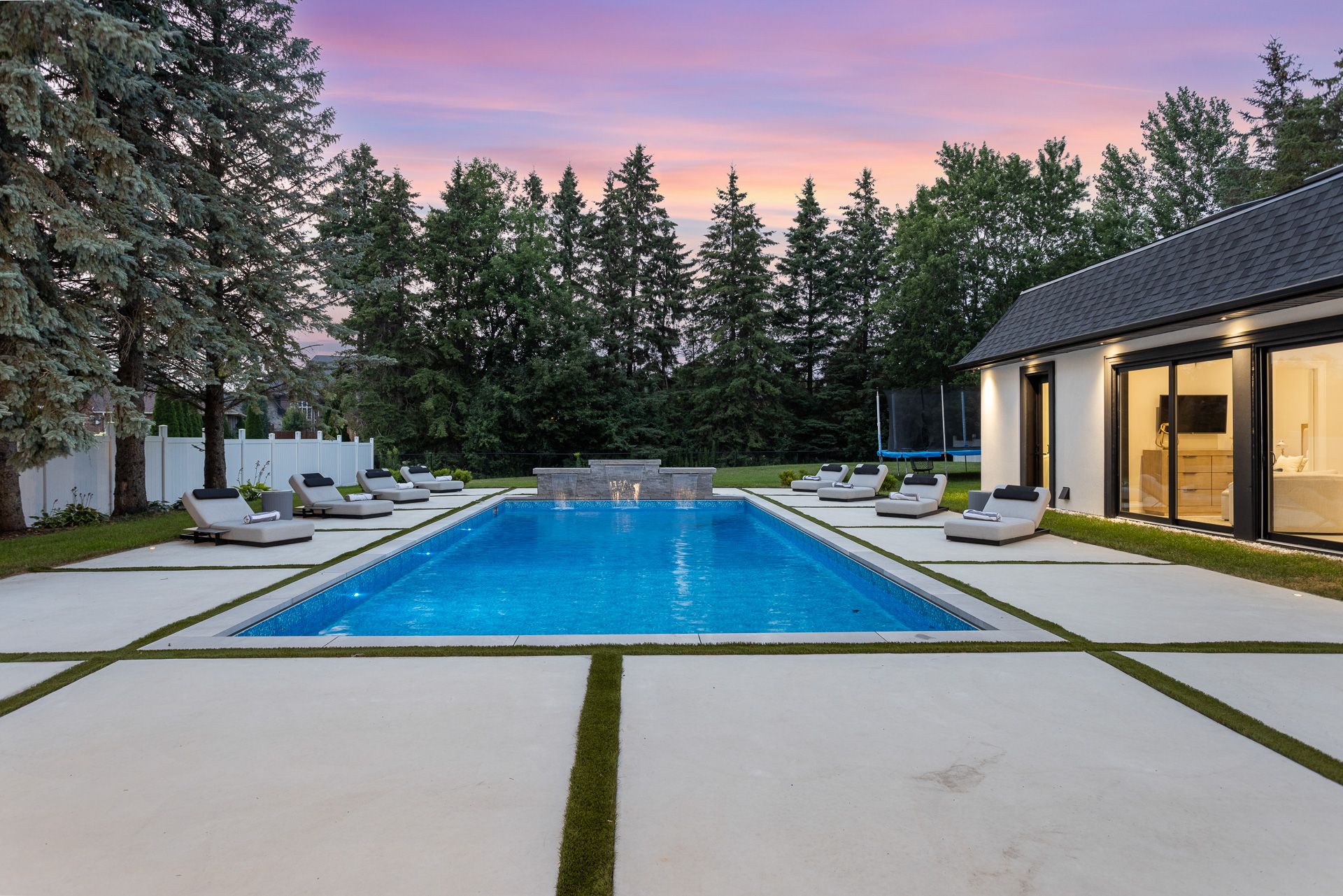 La maison eclantate *exquisite luxury estate in prestigious king city* welcome to an extraordinary opportunity to own a truly exceptional estate nestled in one of king city's most coveted enclaves. Situated on a magnificent 113 x 200 ft, over half an acre, and surrounded by lush, manicured grounds, this residence epitomizes refined living, blending timeless elegance with modern sophistication. At the heart of the backyard oasis lies a spectacular 18 x 40 saltwater in-ground pool perfect for serene relaxation or lavish entertaining. Complementing this private retreat is a fully appointed 650 sq. Ft. In-law or nanny suite / cabana, featuring a custom kitchen, bedroom, stylish 3-piece bath, laundry amenities, and full hvac for year-round comfort and convenience. Inside, the main residence spans over 6,500 sq. Ft. Of beautifully designed living space. With 6 luxuriously appointed bathrooms, a private home theatre, and an airy open-concept floor plan, the home is both grand and inviting. The gourmet chefs kitchen flows effortlessly into expansive living and dining areas, extending out to a covered outdoor kitchen and entertainment pavilion designed for seamless indoor-outdoor living. Smart home integration includes a full suite of security cameras, automated lighting, and a premium built-in speaker system, all accessible via your smart device. Dual furnaces and two air-conditioners ensure consistent, customized climate control throughout. A true turn-key masterpiece offering unmatched privacy, space, and elegance, this is luxury living at its finest in the heart of king city. A world of magnificence awaits!