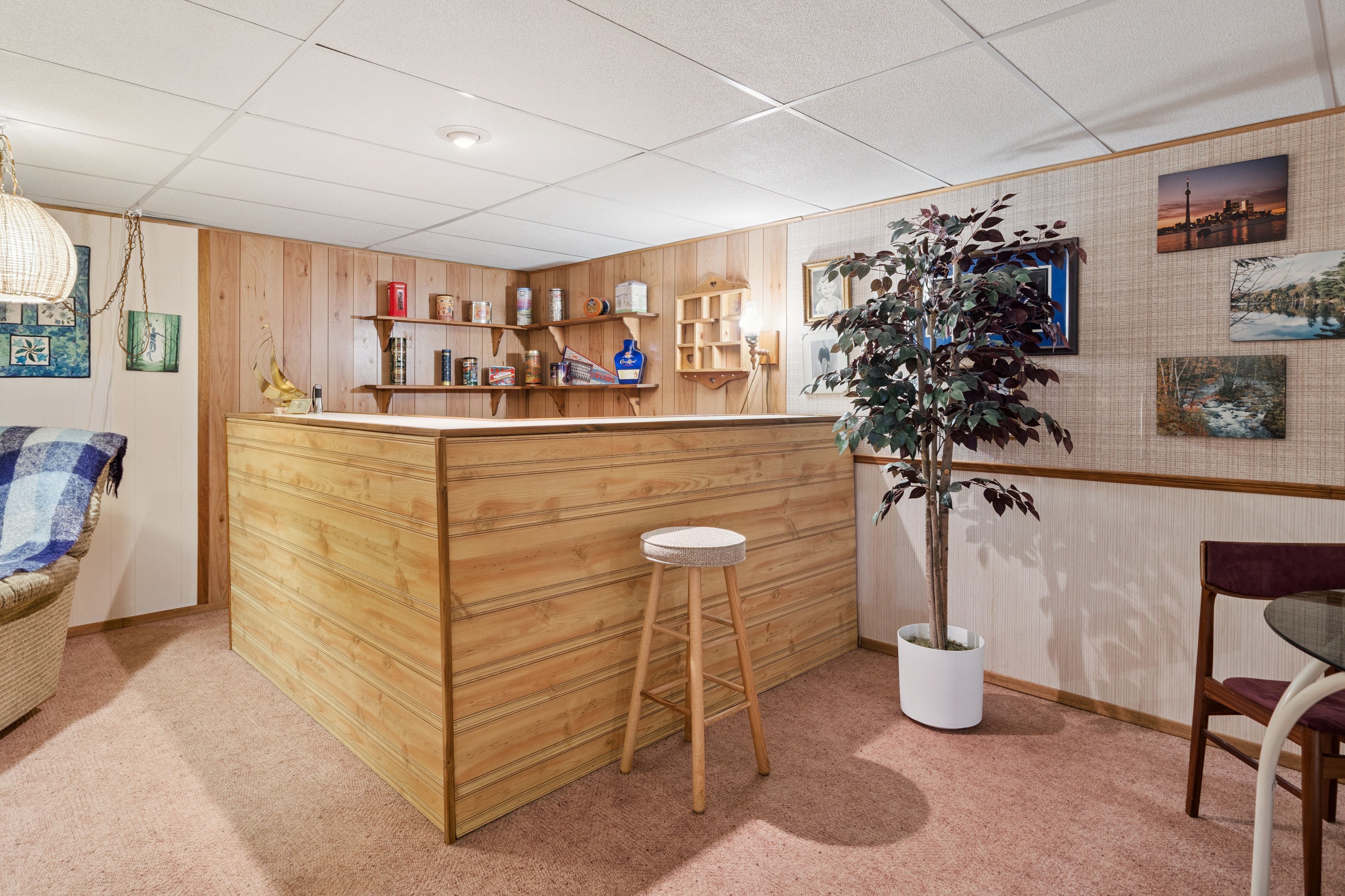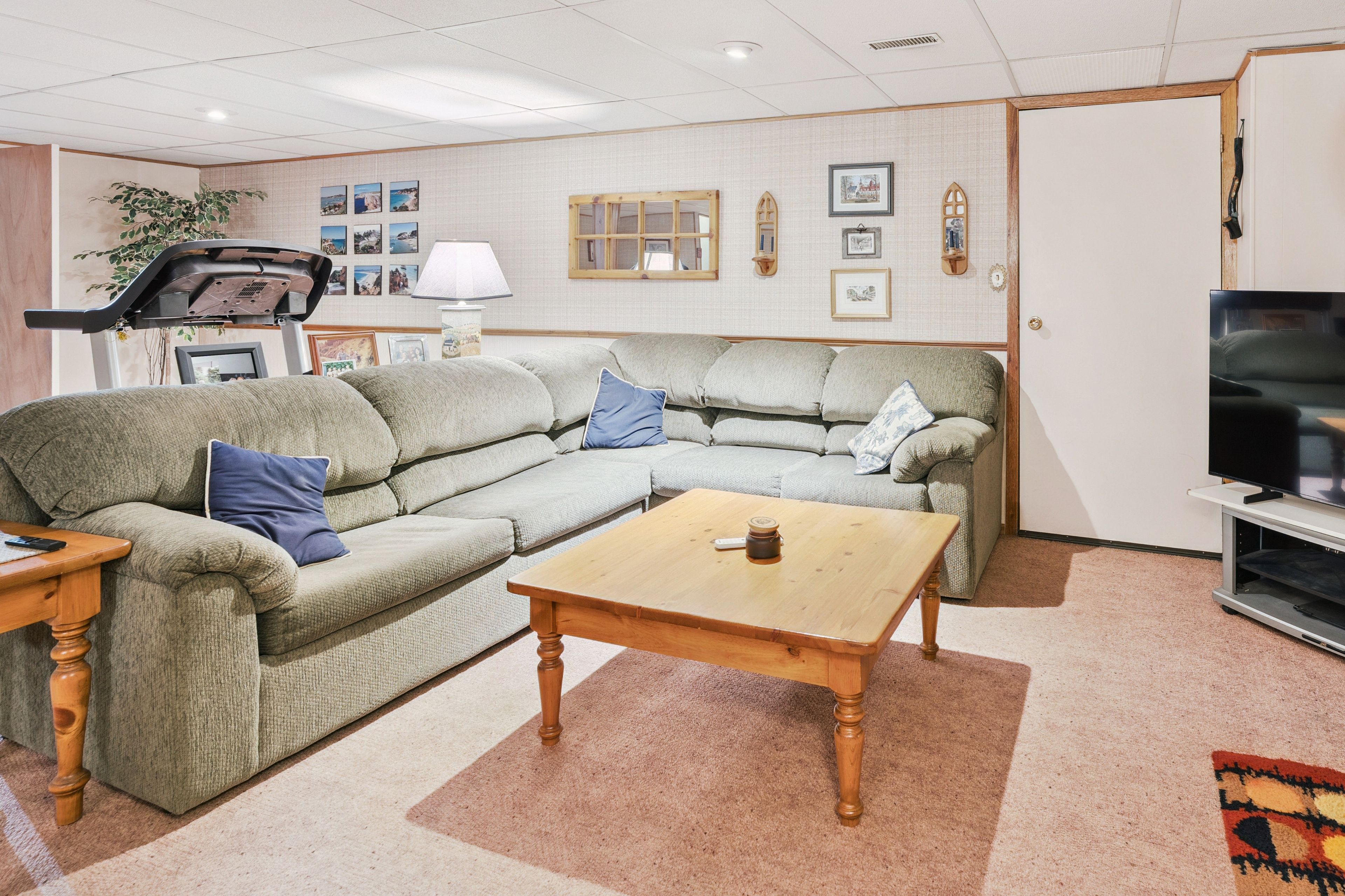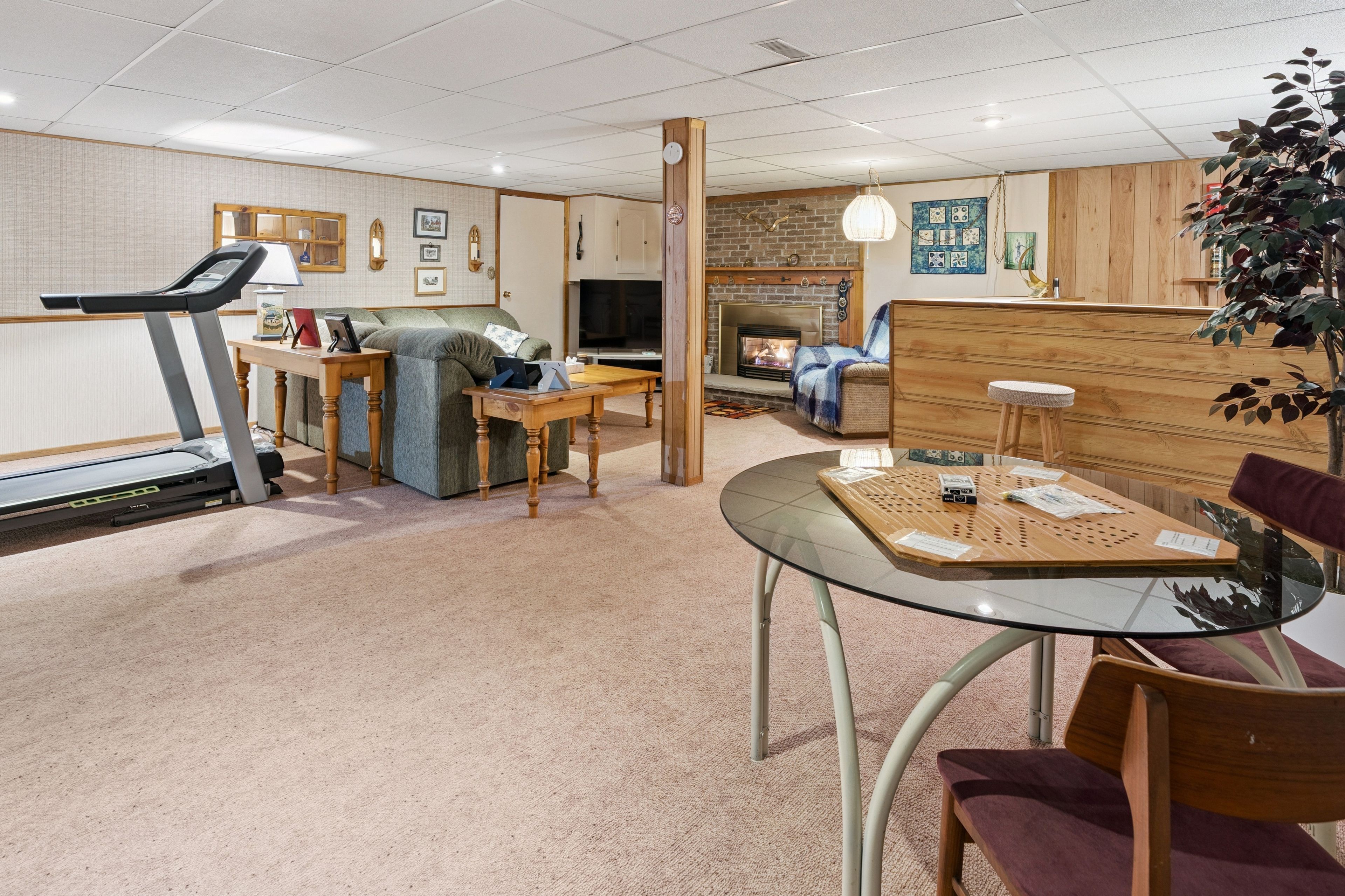 • Finished basement includes family room, dry bar, and potential extra bedroom.