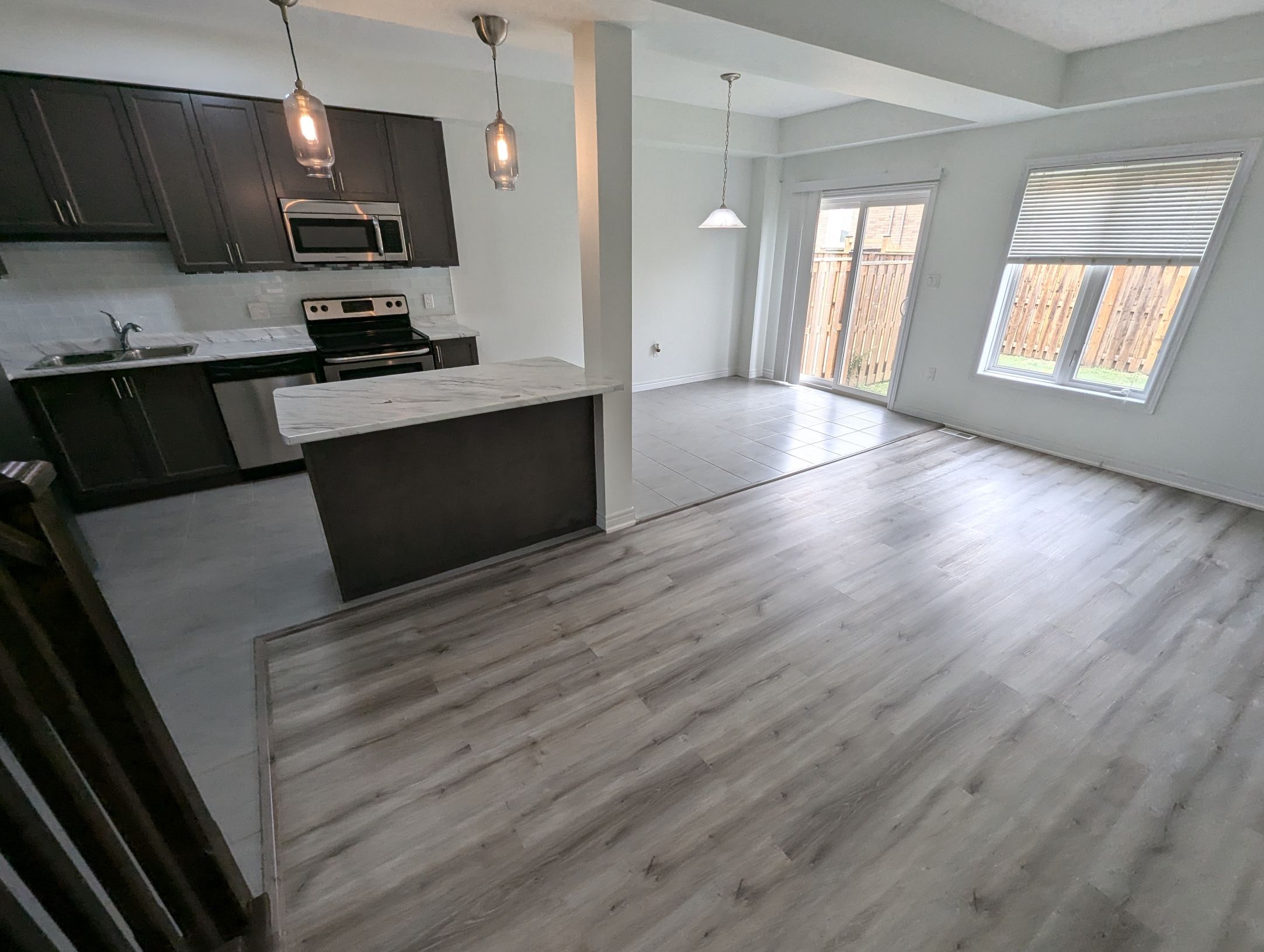 Stunning end unit townhome offering just under 1500 sq. Ft with 3 bedrooms, 2. 5 bathrooms, and 2 car parking. Enjoy a modern kitchen featuring upgraded cabinets, a large island, and stainless-steel appliances. The open concept main floor with lots of natural light, perfect for entertaining. Inside entry from the garage, backyard can be assessed from the side of the house. Located close to schools, shopping, restaurants, parks, and with easy access to highways. Preferred no pets and no smoking.