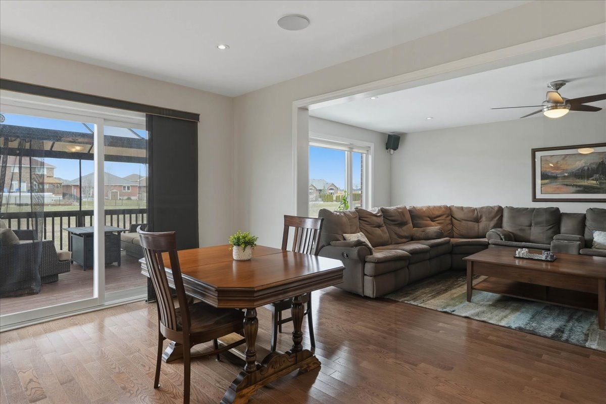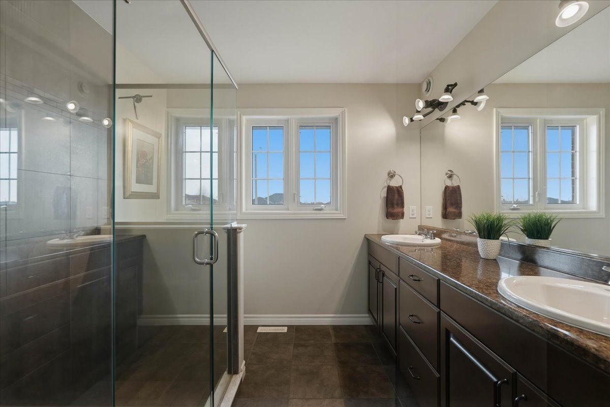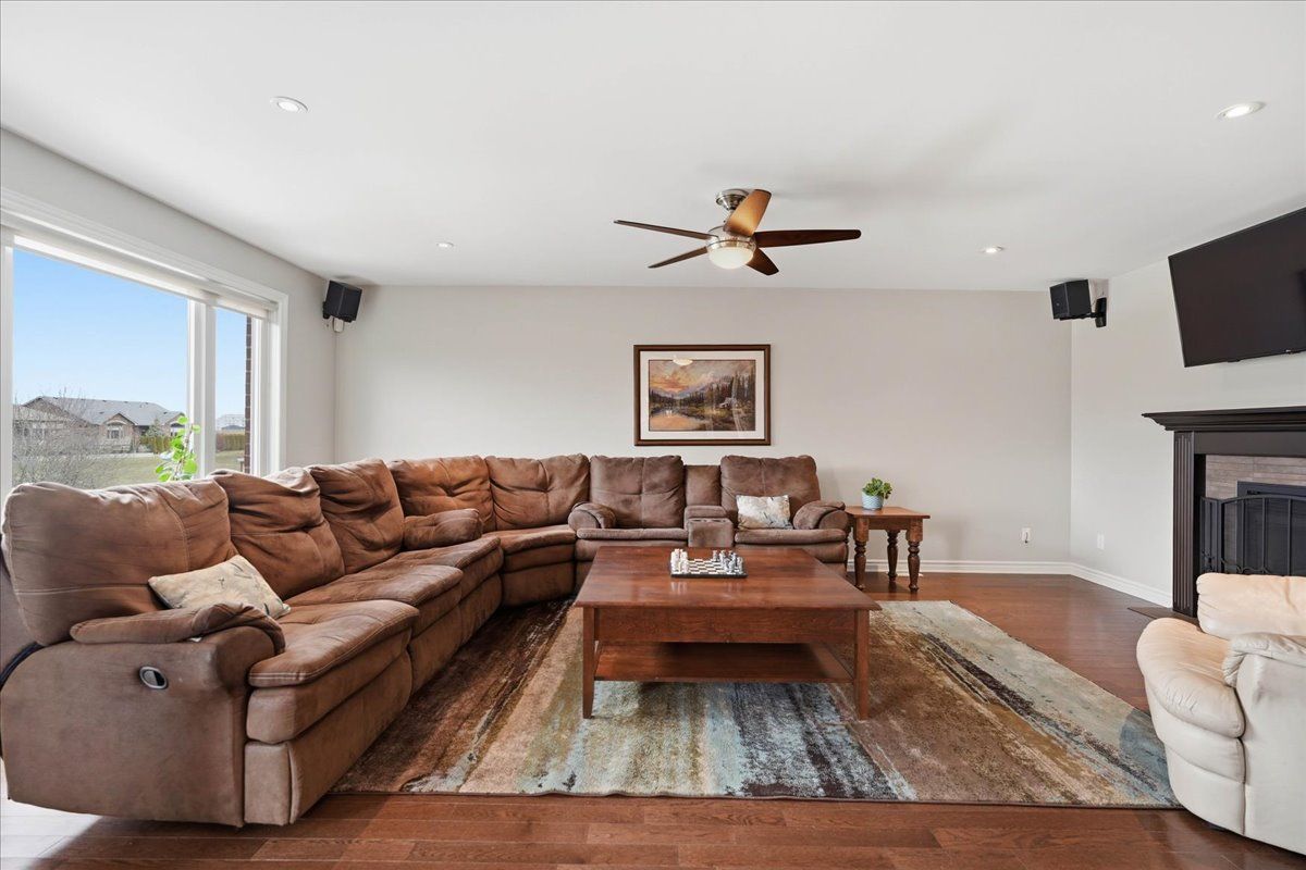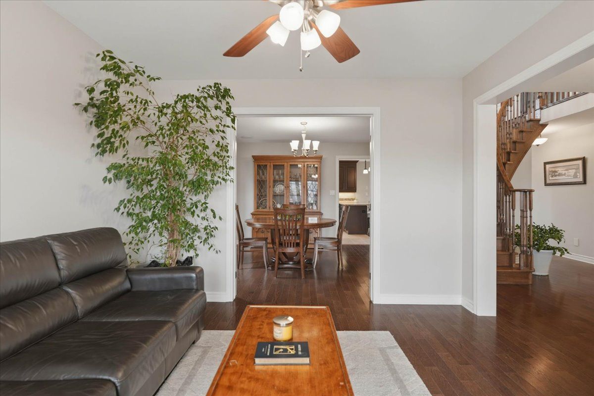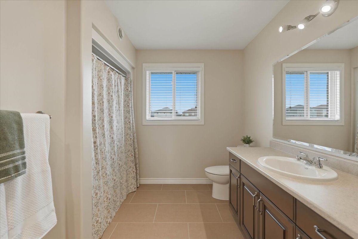 Welcome to this stunning two-storey, all-brick executive home backing onto tranquil green space in a highly sought-after, upscale, family-friendly subdivision. Just minutes from highway 401 and close to a wide range of amenities, this quality-built staikos home offers exceptional curb appeal with its charming covered front porch and beautiful exterior. Step into the spacious foyer, where you are greeted by a warm and inviting layout. The foyer flows seamlessly into the formal living and dining rooms, perfect for hosting gatherings, or leads directly into the well-appointed kitchen,featuring abundant cabinetry, a large peninsula, and a bright eating area. The open-concept family room, adjacent to the kitchen, provides a comfortable and airy space for everyday living. Patio doors from the eating area open onto a generous deck overlooking the private backyard, ideal for outdoor dining or relaxation. Large windows throughout the main level fill the home with natural light, highlighting the hardwood and ceramic flooring. A beautiful stair case leads to the second level, where you'll find the generous primary suite, complete with a walk-in closet and a stunning en-suite showcasing a glass and tile shower. Three additional spacious bedrooms and a well-appointed 4-piece main bathroom provide plenty of room for family or guests. The convenience of second-level laundry completes this floor. The fully finished lower level offers exceptional additional living space, including a large recreation room, two sizeable bedrooms, a full bathroom, and ample storage-ideal for extended family, teens, or guests. Additional features include a two-car garage with inside entry to the mudroom, perfect for busy family life. The subdivision itself offers wonderful lifestyle perks, including a large community park and scenic walking trails for residents to enjoy. This impressive home offers comfort, space, and style in a premier location-everything your family has been looking for!