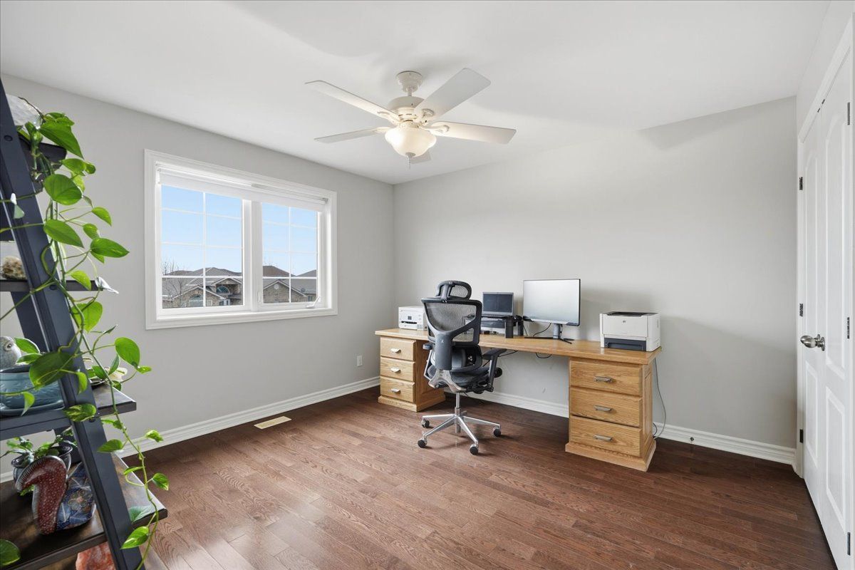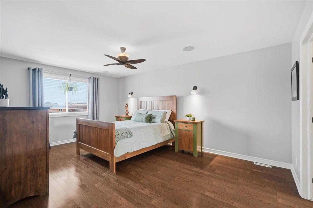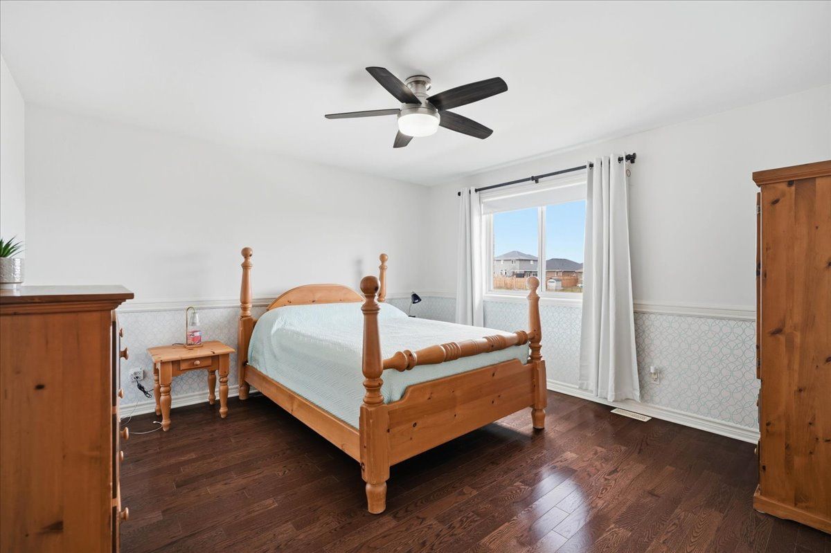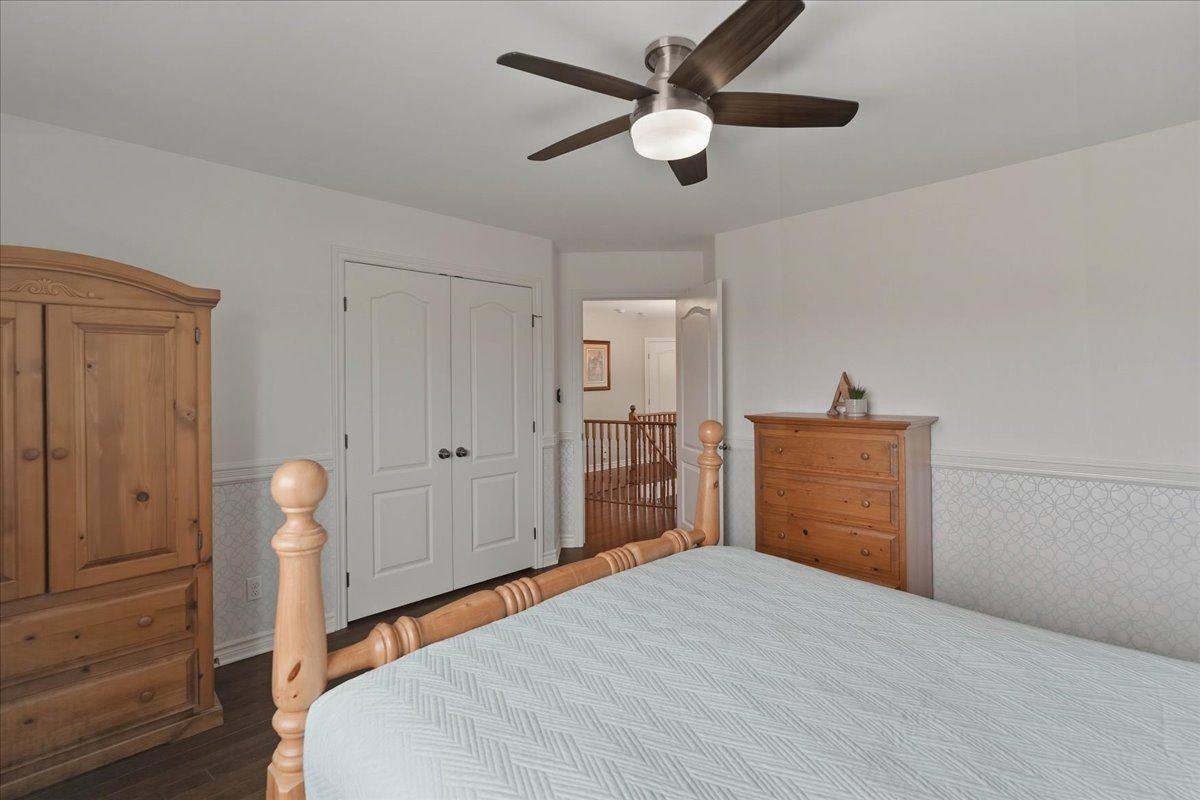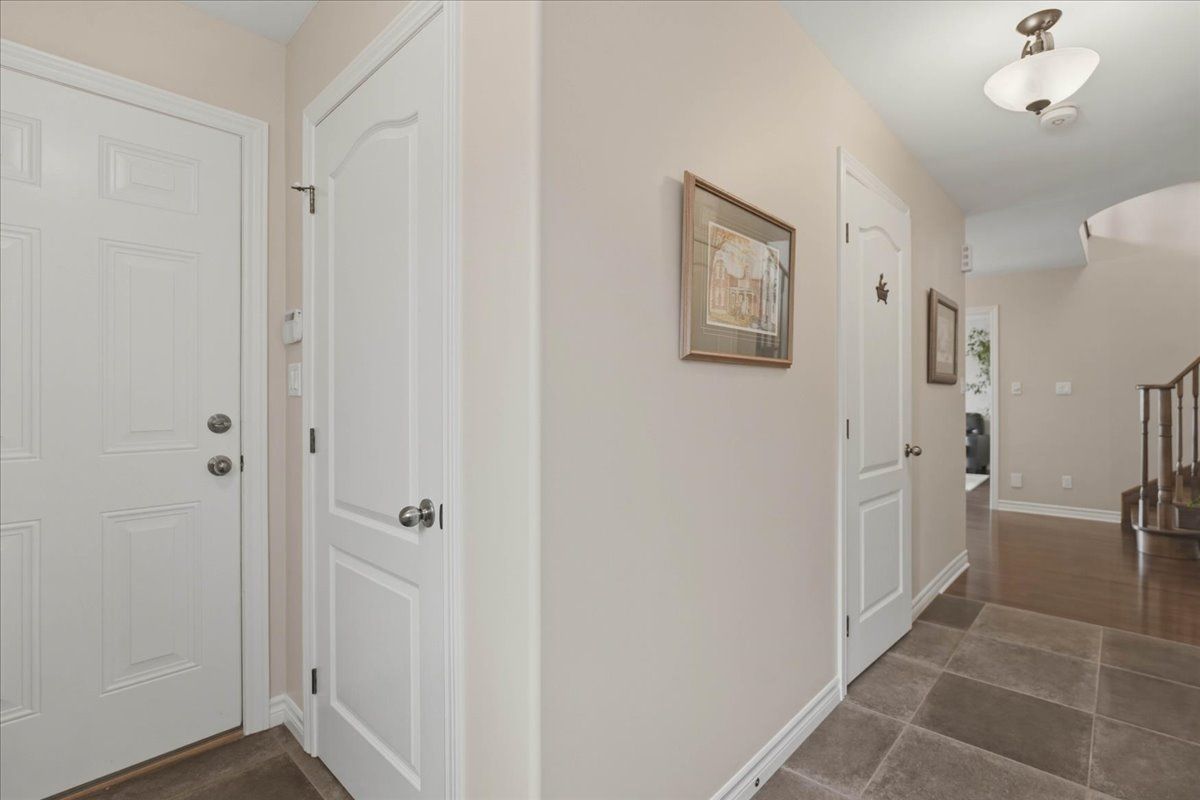 Welcome to this stunning two-storey, all-brick executive home backing onto tranquil green space in a highly sought-after, upscale, family-friendly subdivision. Just minutes from highway 401 and close to a wide range of amenities, this quality-built staikos home offers exceptional curb appeal with its charming covered front porch and beautiful exterior. Step into the spacious foyer, where you are greeted by a warm and inviting layout. The foyer flows seamlessly into the formal living and dining rooms, perfect for hosting gatherings, or leads directly into the well-appointed kitchen,featuring abundant cabinetry, a large peninsula, and a bright eating area. The open-concept family room, adjacent to the kitchen, provides a comfortable and airy space for everyday living. Patio doors from the eating area open onto a generous deck overlooking the private backyard, ideal for outdoor dining or relaxation. Large windows throughout the main level fill the home with natural light, highlighting the hardwood and ceramic flooring. A beautiful stair case leads to the second level, where you'll find the generous primary suite, complete with a walk-in closet and a stunning en-suite showcasing a glass and tile shower. Three additional spacious bedrooms and a well-appointed 4-piece main bathroom provide plenty of room for family or guests. The convenience of second-level laundry completes this floor. The fully finished lower level offers exceptional additional living space, including a large recreation room, two sizeable bedrooms, a full bathroom, and ample storage-ideal for extended family, teens, or guests. Additional features include a two-car garage with inside entry to the mudroom, perfect for busy family life. The subdivision itself offers wonderful lifestyle perks, including a large community park and scenic walking trails for residents to enjoy. This impressive home offers comfort, space, and style in a premier location-everything your family has been looking for!