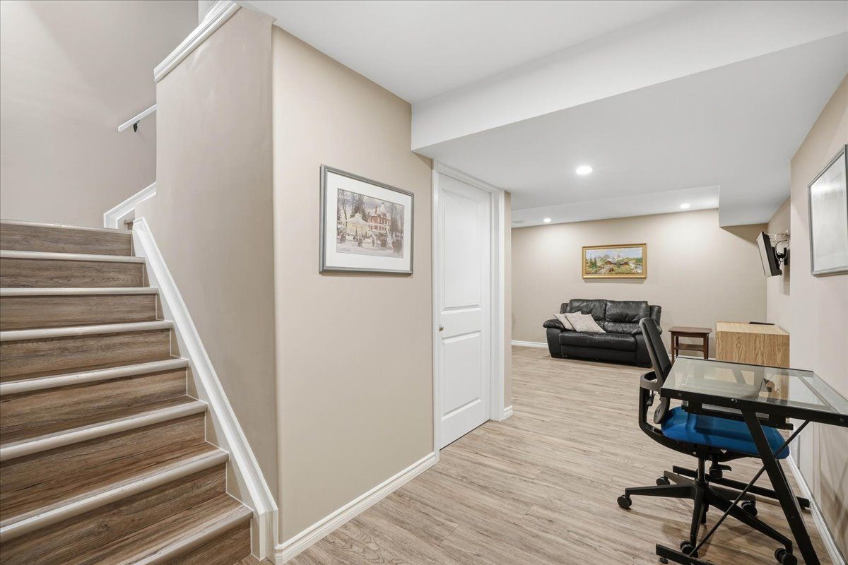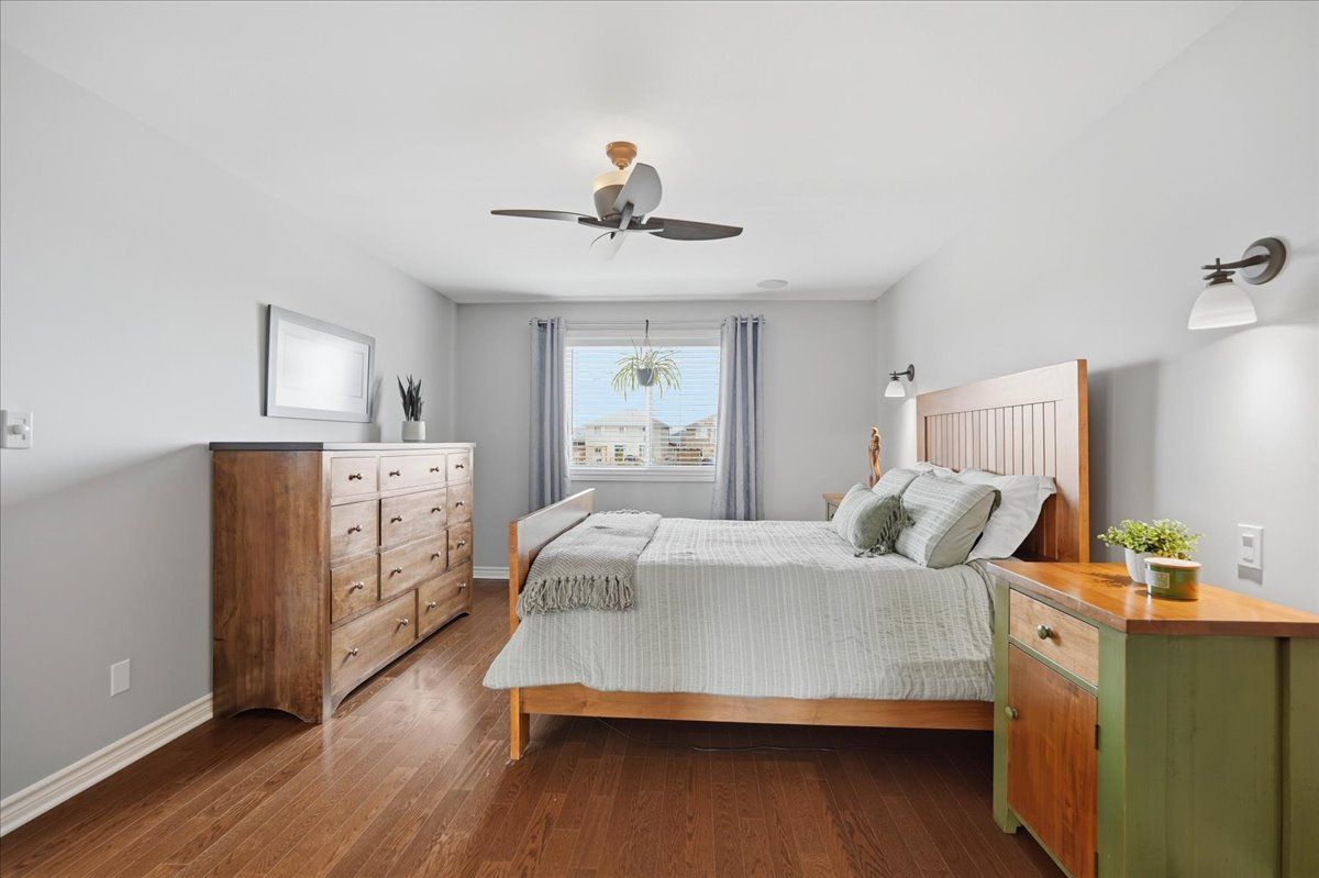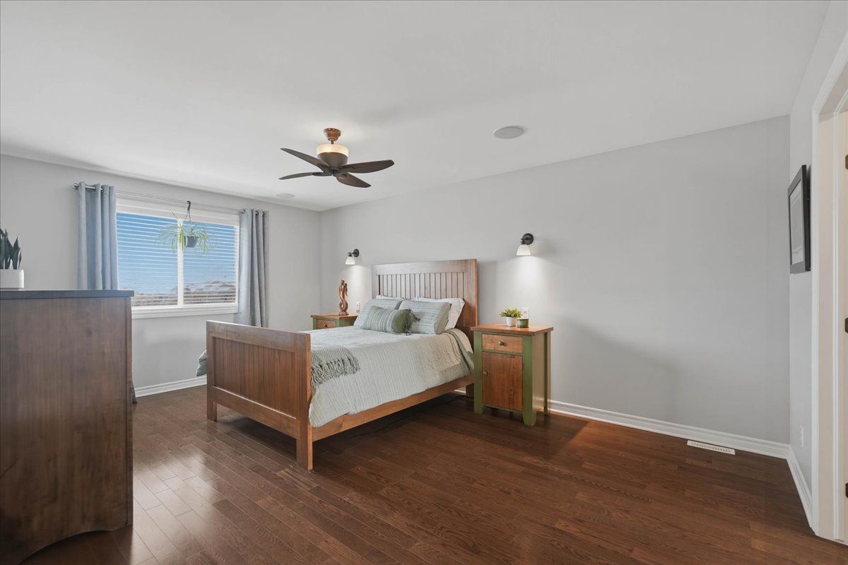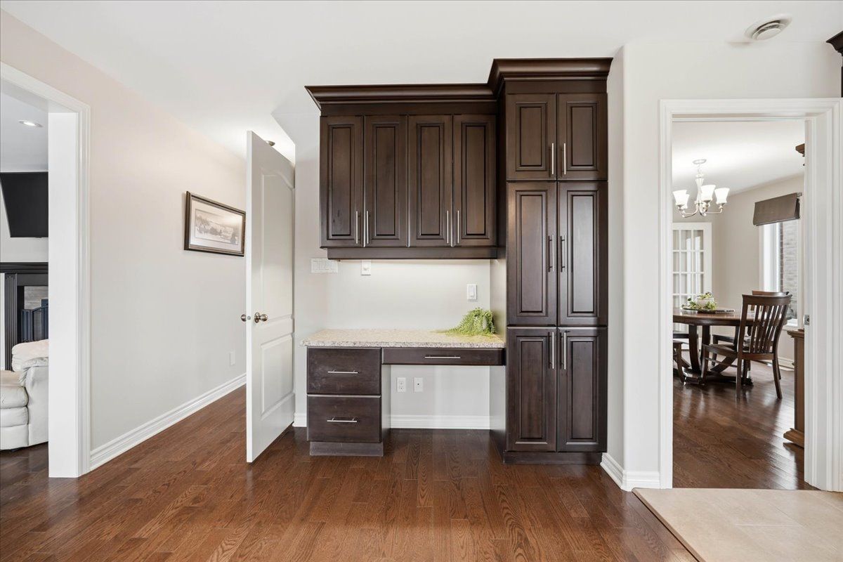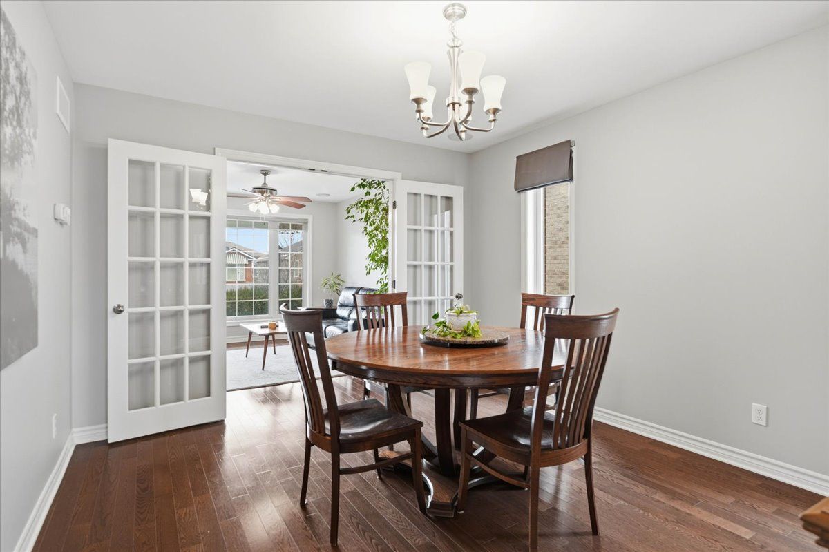 Welcome to this stunning two-storey, all-brick executive home backing onto tranquil green space in a highly sought-after, upscale, family-friendly subdivision. Just minutes from highway 401 and close to a wide range of amenities, this quality-built staikos home offers exceptional curb appeal with its charming covered front porch and beautiful exterior. Step into the spacious foyer, where you are greeted by a warm and inviting layout. The foyer flows seamlessly into the formal living and dining rooms, perfect for hosting gatherings, or leads directly into the well-appointed kitchen,featuring abundant cabinetry, a large peninsula, and a bright eating area. The open-concept family room, adjacent to the kitchen, provides a comfortable and airy space for everyday living. Patio doors from the eating area open onto a generous deck overlooking the private backyard, ideal for outdoor dining or relaxation. Large windows throughout the main level fill the home with natural light, highlighting the hardwood and ceramic flooring. A beautiful stair case leads to the second level, where you'll find the generous primary suite, complete with a walk-in closet and a stunning en-suite showcasing a glass and tile shower. Three additional spacious bedrooms and a well-appointed 4-piece main bathroom provide plenty of room for family or guests. The convenience of second-level laundry completes this floor. The fully finished lower level offers exceptional additional living space, including a large recreation room, two sizeable bedrooms, a full bathroom, and ample storage-ideal for extended family, teens, or guests. Additional features include a two-car garage with inside entry to the mudroom, perfect for busy family life. The subdivision itself offers wonderful lifestyle perks, including a large community park and scenic walking trails for residents to enjoy. This impressive home offers comfort, space, and style in a premier location-everything your family has been looking for!