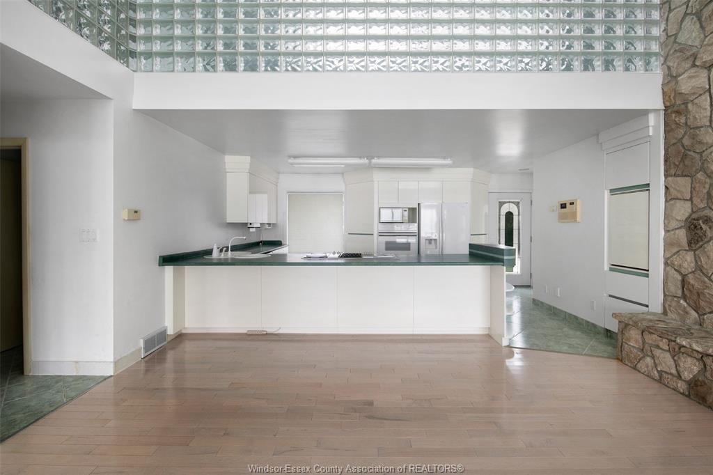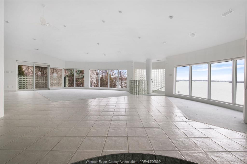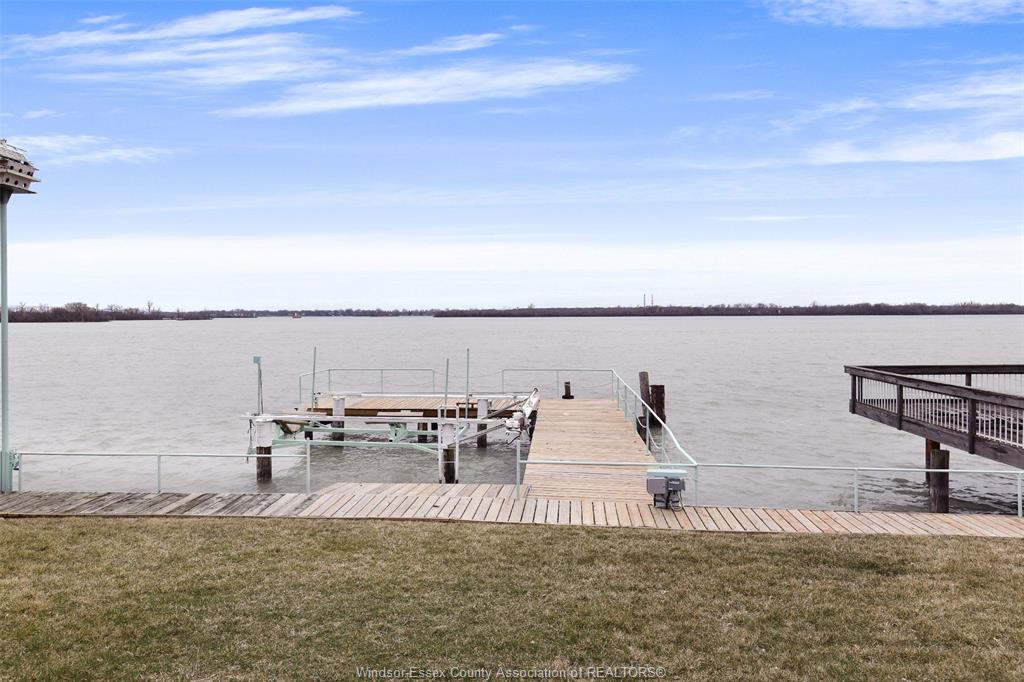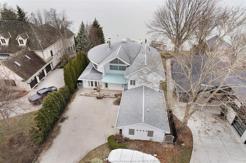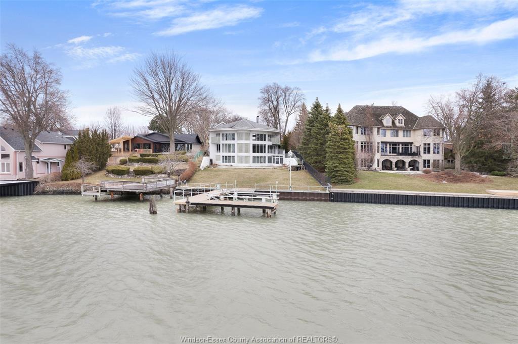 Gorgeous and solid 3 story waterfront home with curved features, winner of the “construction excellence award” in 2000. Located in an exclusive and beautiful amherstburg neighbourhood. Bright and airy open concept interior provides picturesque views sure to impress with floor to ceiling waterview windows, high ceilings and crisp white marble flooring. 4 spacious bedrooms, 5 full baths including 3 ensuites, each floor has its own kitchen, living area and private entrance. Concrete patio to a private rear yard w/amazing views of the ships and boats create the perfect setting for backyard get-togethers. 2. 5 car garage, extra long driveway and impeccable landscaping. Steel break wall, boat dock w/electric lift for up to 24` craft. Words not enough to describe this amazing home where you could relax and enjoy your peaceful life. Vacation at your own home!