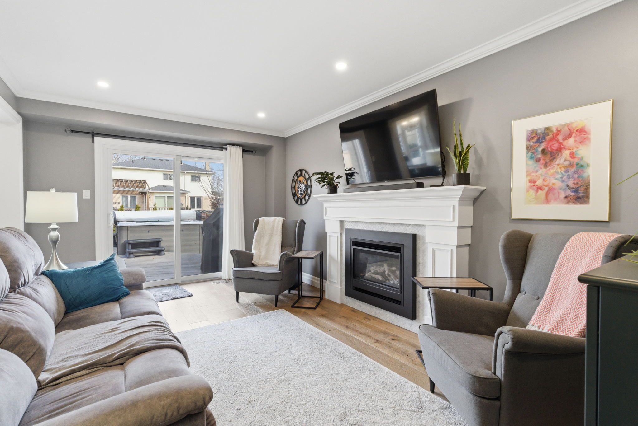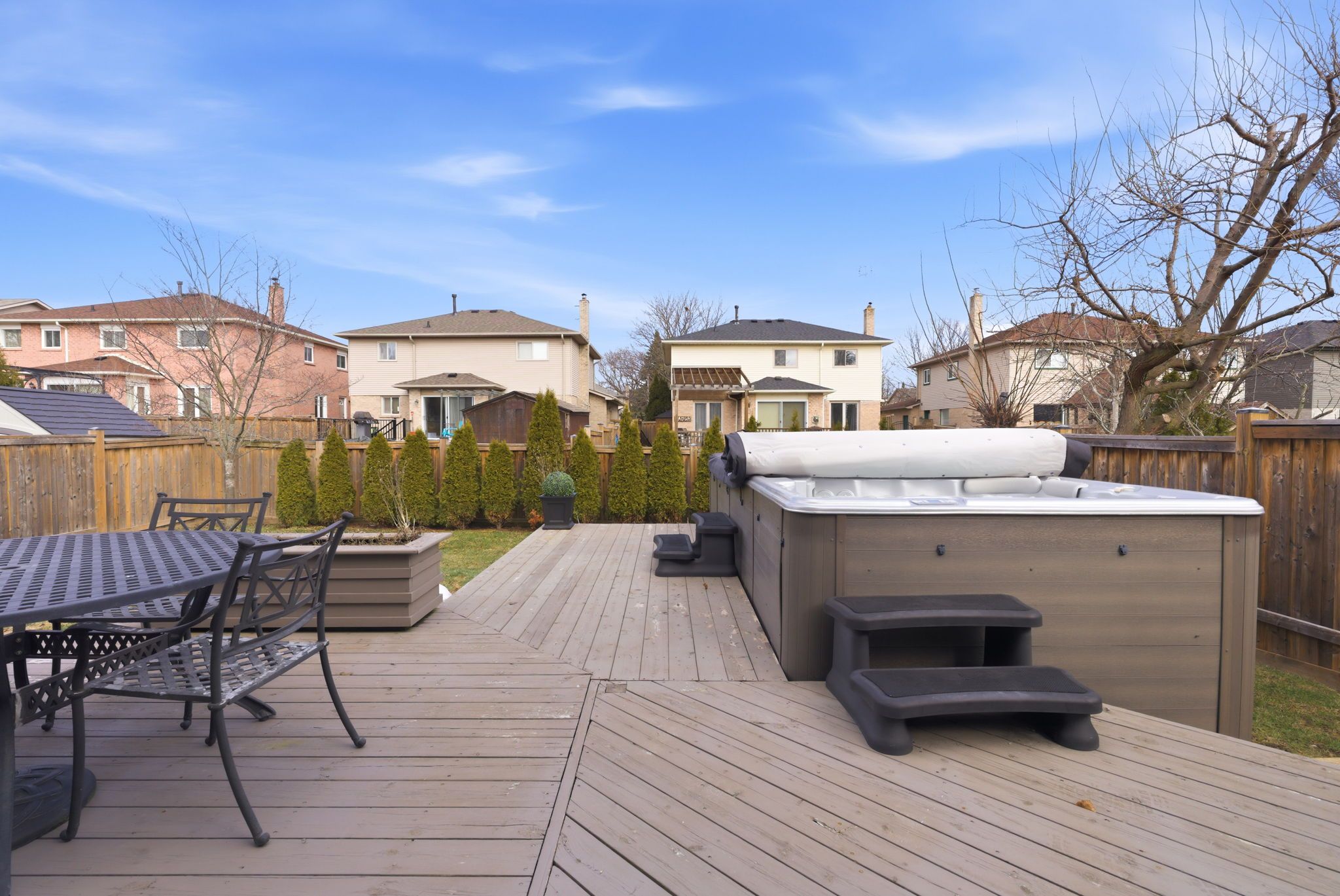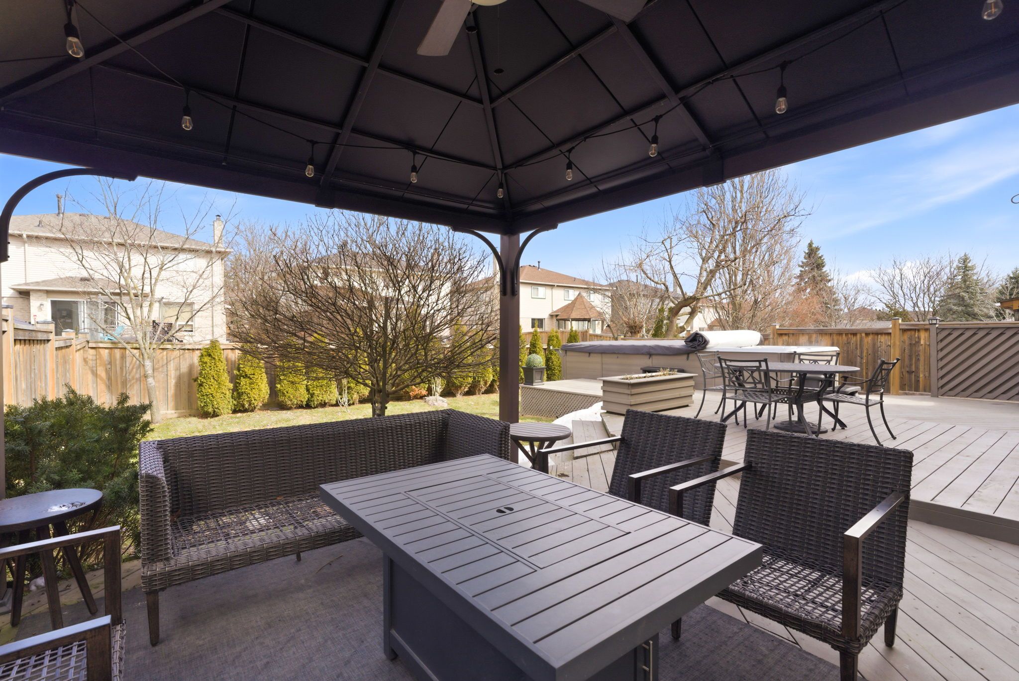 • Private outdoor oasis with a Jacuzzi swim spa and gazebo.