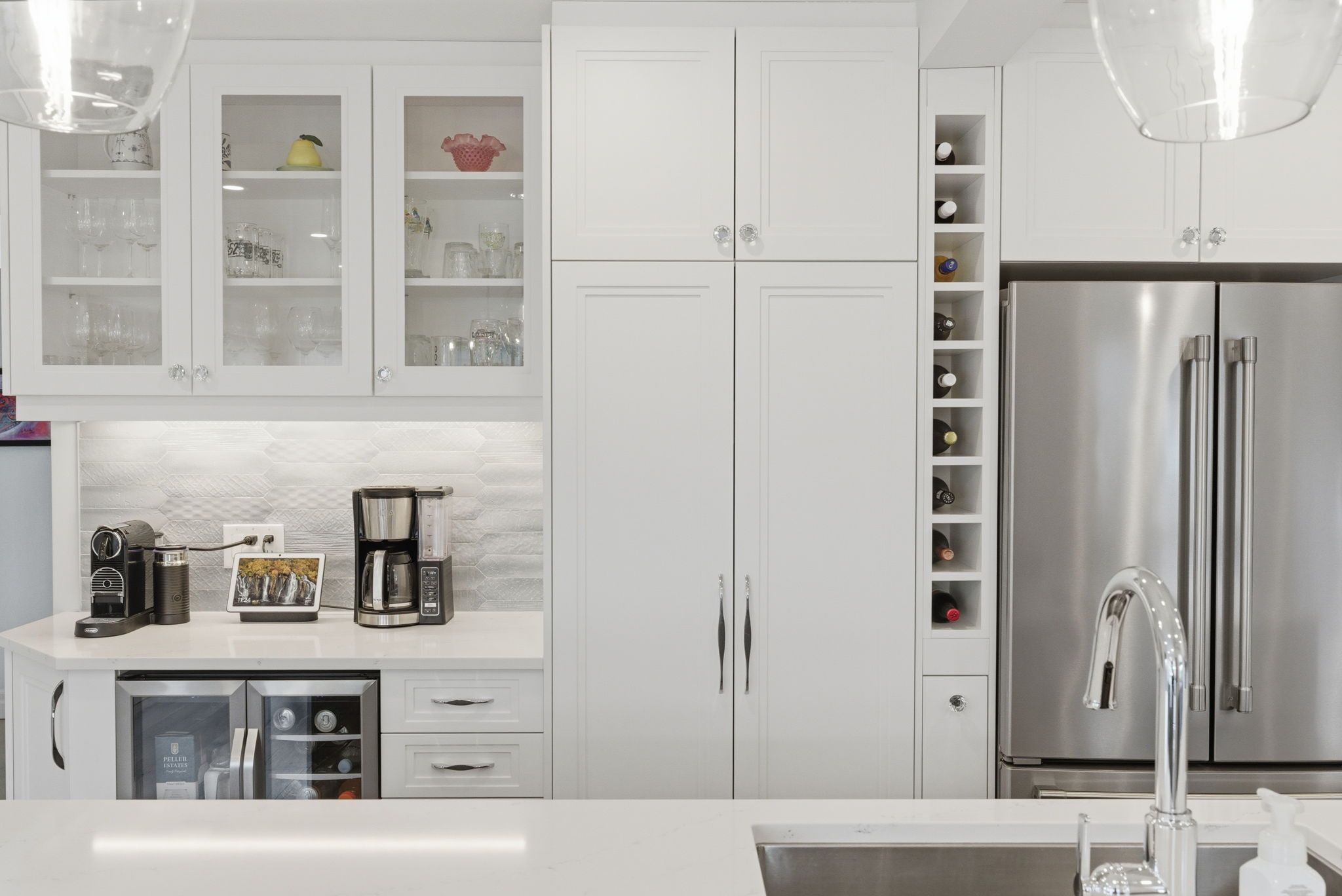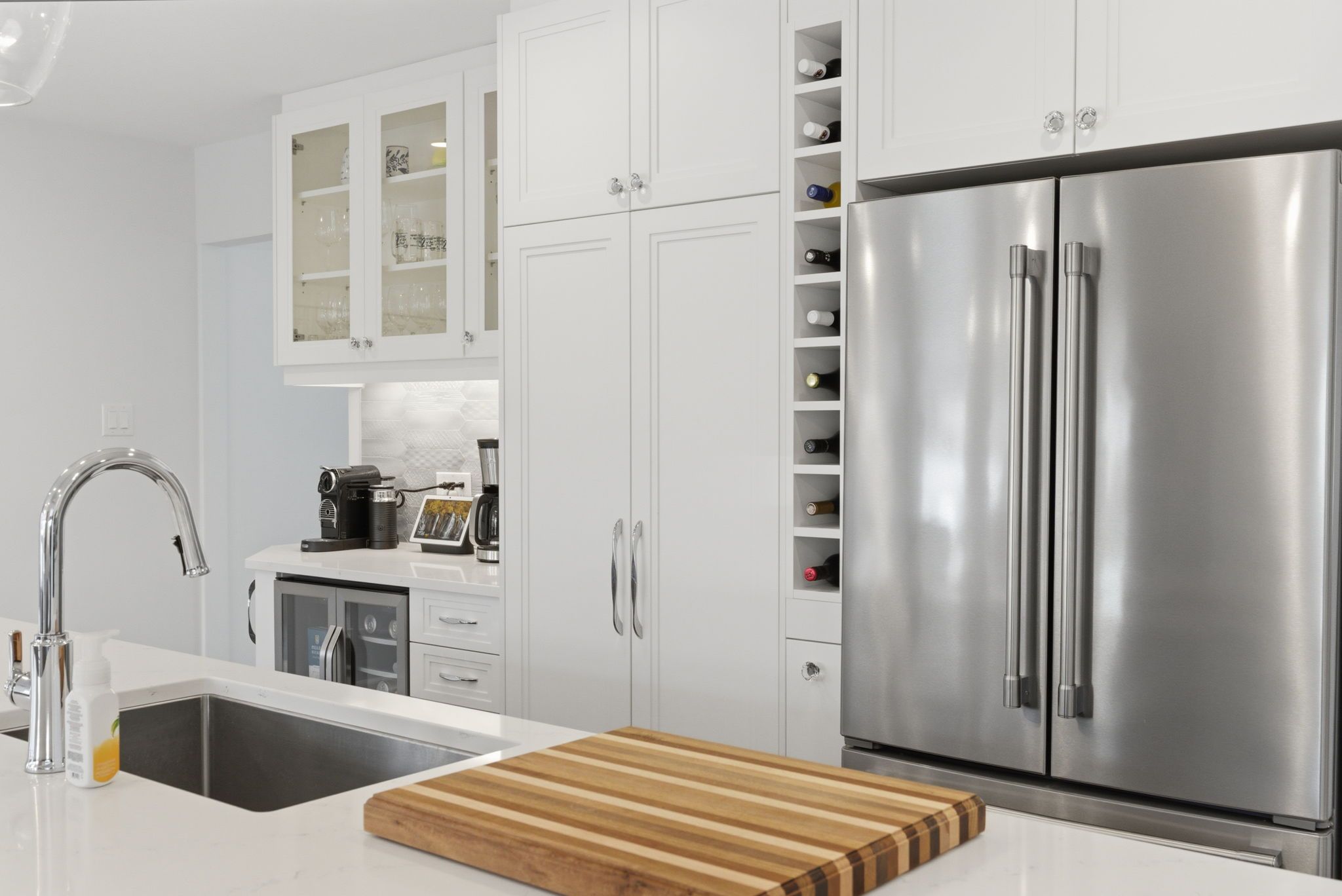 • Renovated chef's kitchen featuring high-end appliances and a wine fridge.