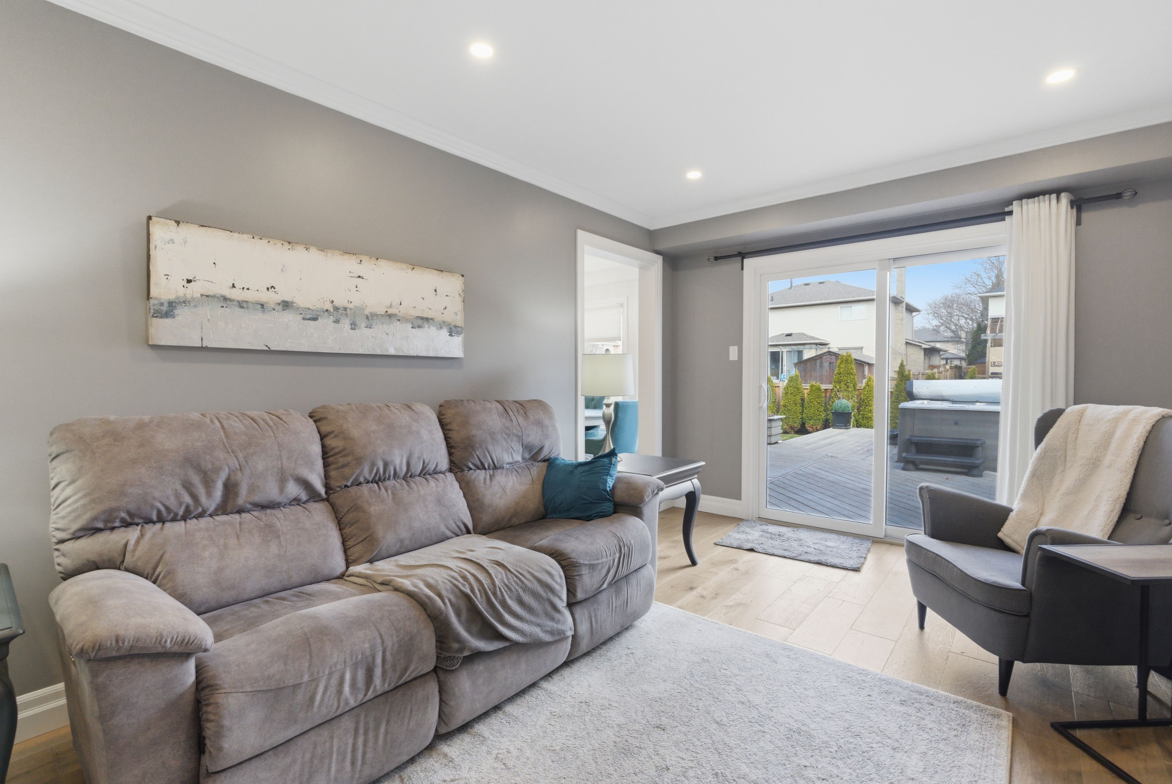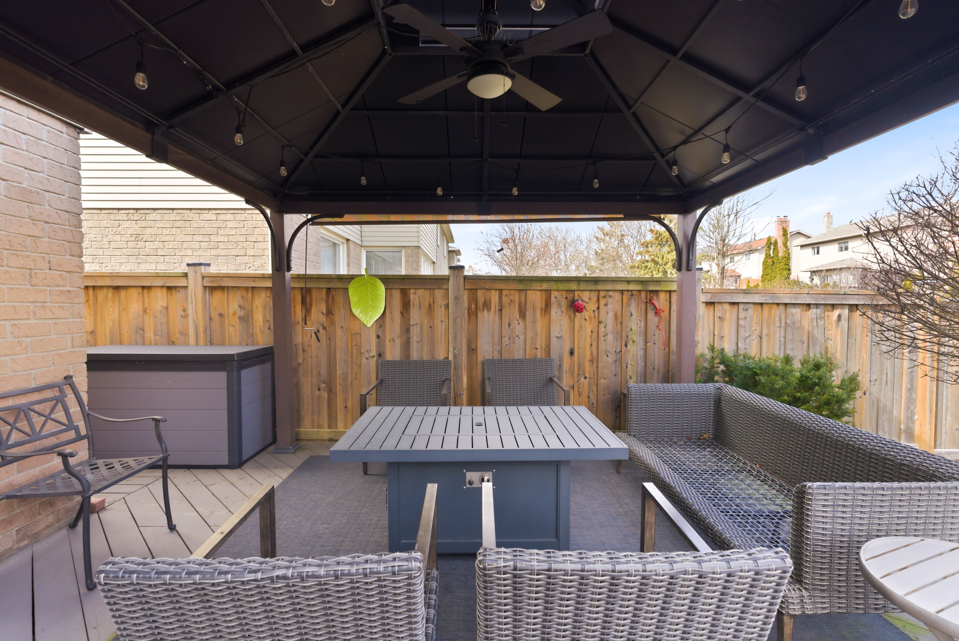 • Private outdoor oasis with a Jacuzzi swim spa and gazebo for relaxation.