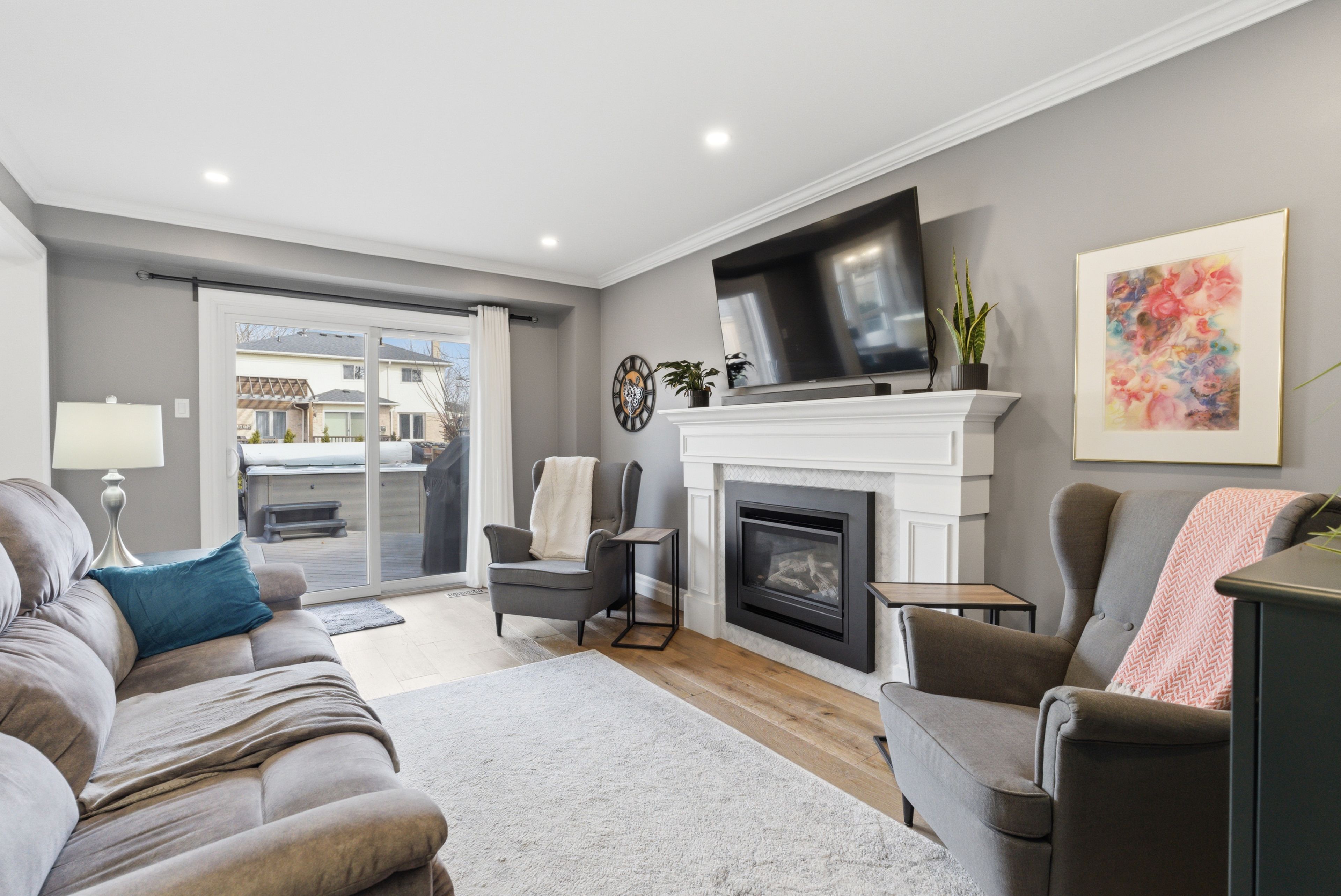 Welcome to this modern 4-bedroom, 4-bathroom detached home in the highly sought-after fallingbrook community of whitby, with over 3000 sq. Ft. Of living space. Boasting true pride of ownership, this residence has been extensively upgraded to offer a perfect blend of luxury and comfort. The main floor features full renovations, including new led pot lights and stunning engineered hardwood flooring backed by a 50-year warranty. At the heart of the home is a renovated chef's kitchen equipped with new cabinets, a wine fridge, and high-end kitchen aid pro appliances. The living and dining rooms offer formal entertaining spaces, while the family room features a new fireplace with a marble mantle and a walk-out to a beautiful deck. Upstairs, you will find four spacious bedrooms. The primary retreat is a true standout, featuring his and hers closets and a fully renovated ensuite bathroom complete with a glass walk-in shower, dual sinks, and a soaker tub. Step outside to your private outdoor oasis, which includes a 19-foot jacuzzi swim spa with deck access, a backyard gazebo, and fresh landscaping in both the front & backyards. This home is perfectly positioned near a variety of local amenities, including excellent schools, the public library, and premium shopping centres. Enjoy the convenience of nearby parks and recreation facilities, all within a welcoming and established neighbourhood. This home is truly turn-key. Book your showing today!