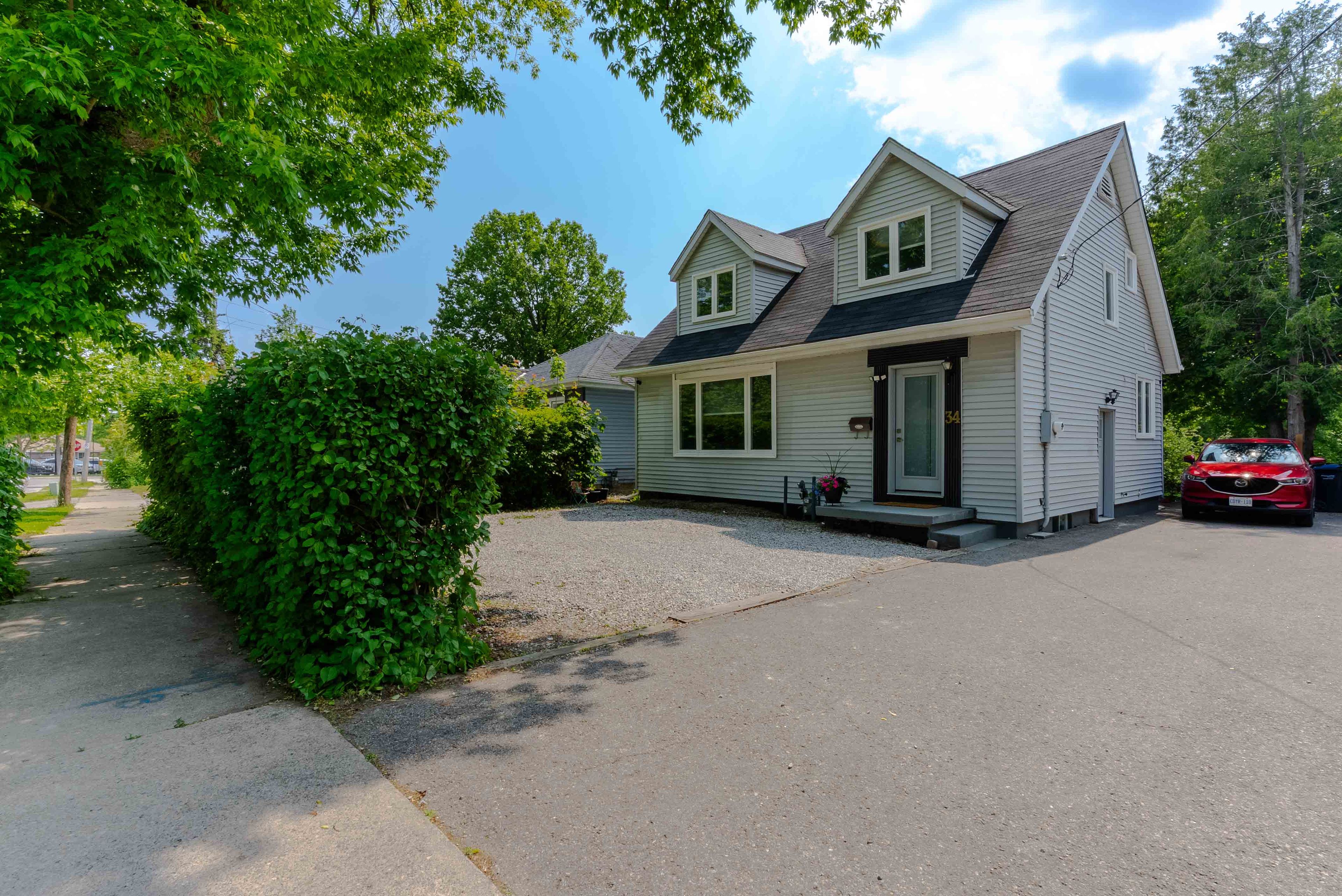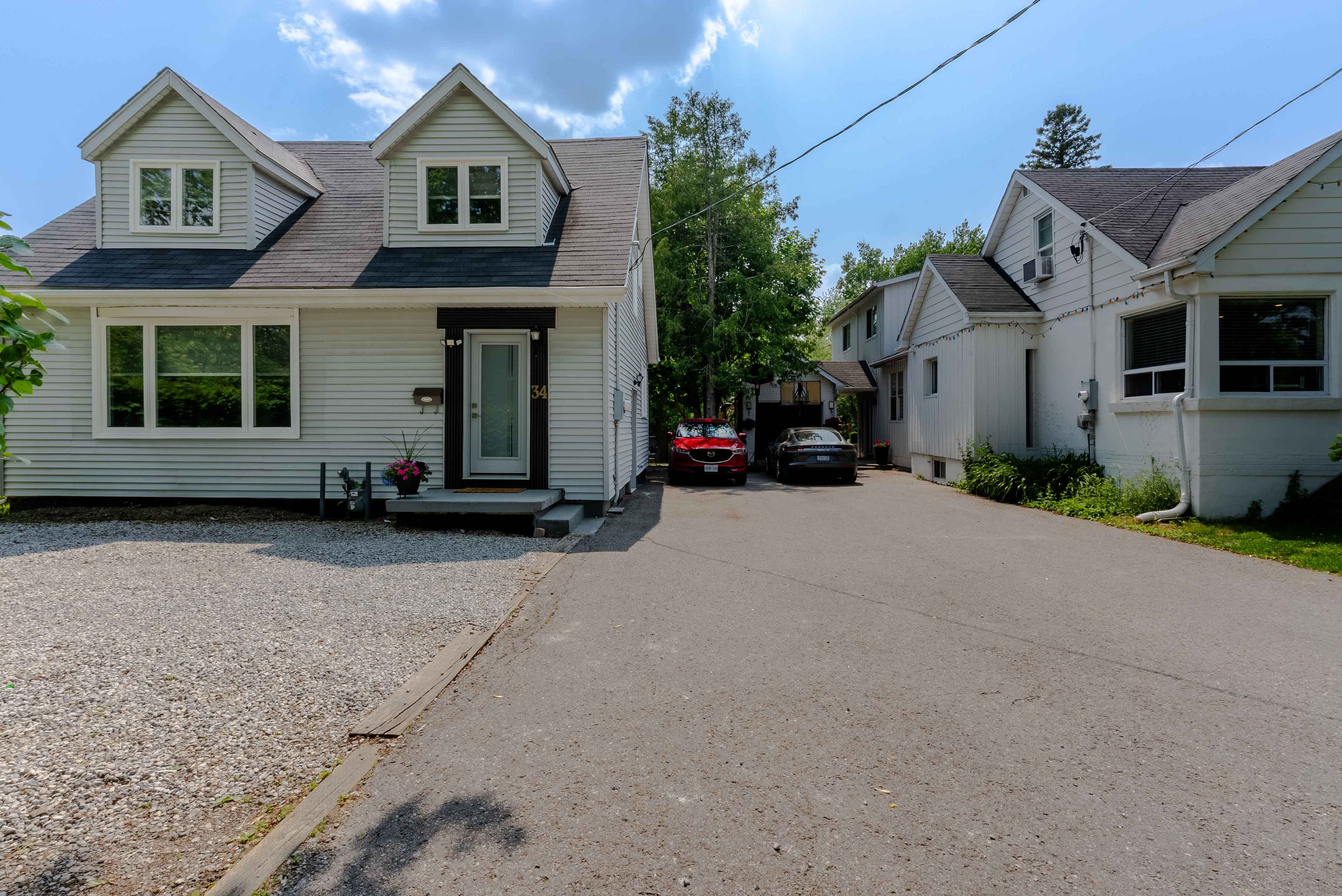 • Long driveway accommodating up to four cars for ample parking.