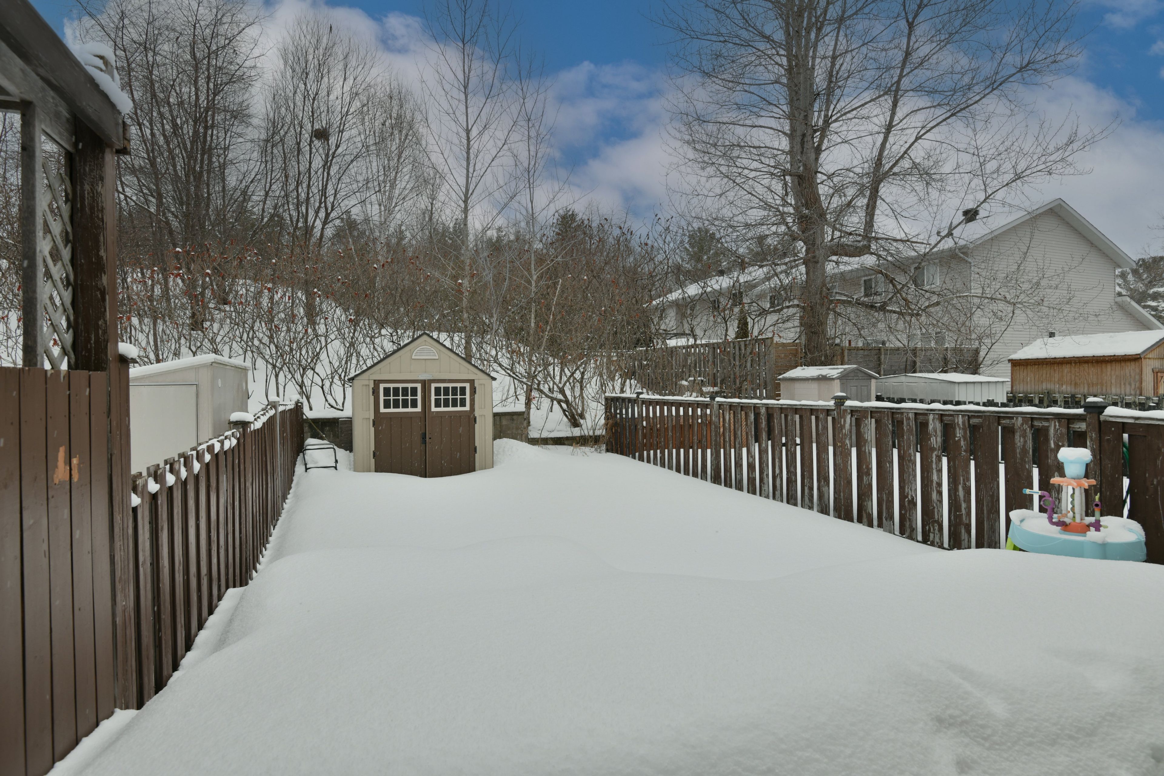 • Fully fenced backyard offers privacy and outdoor enjoyment.