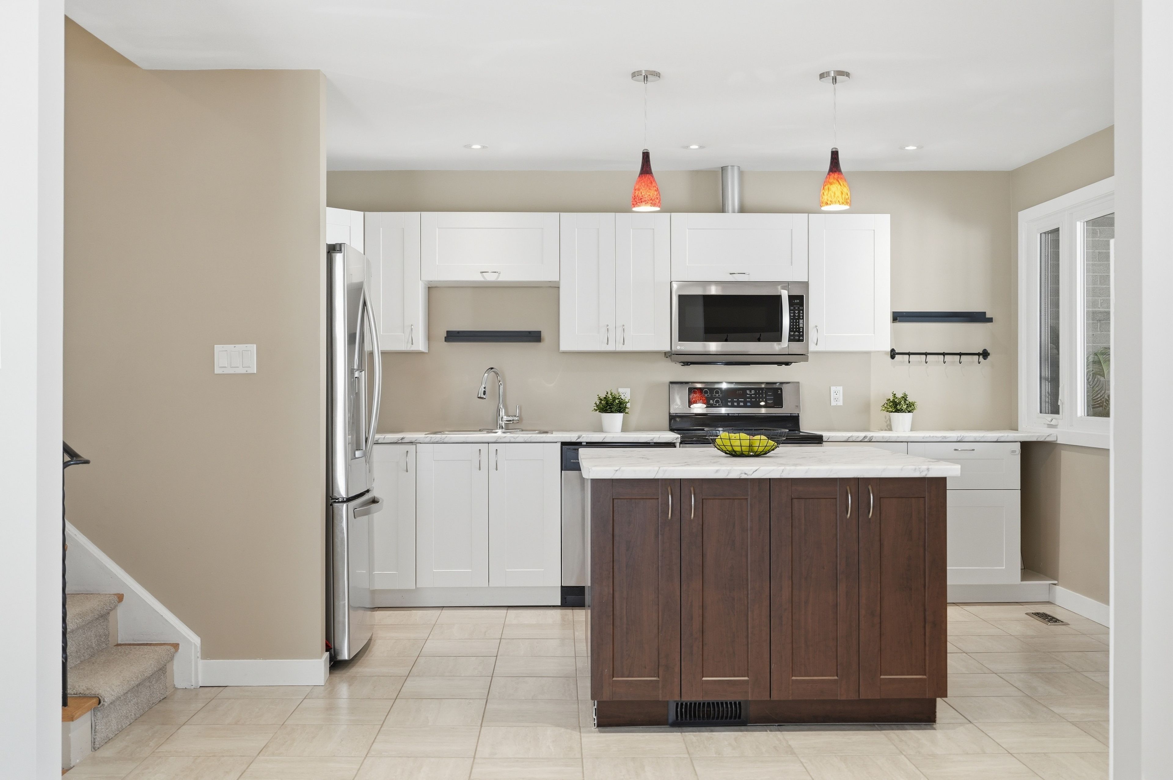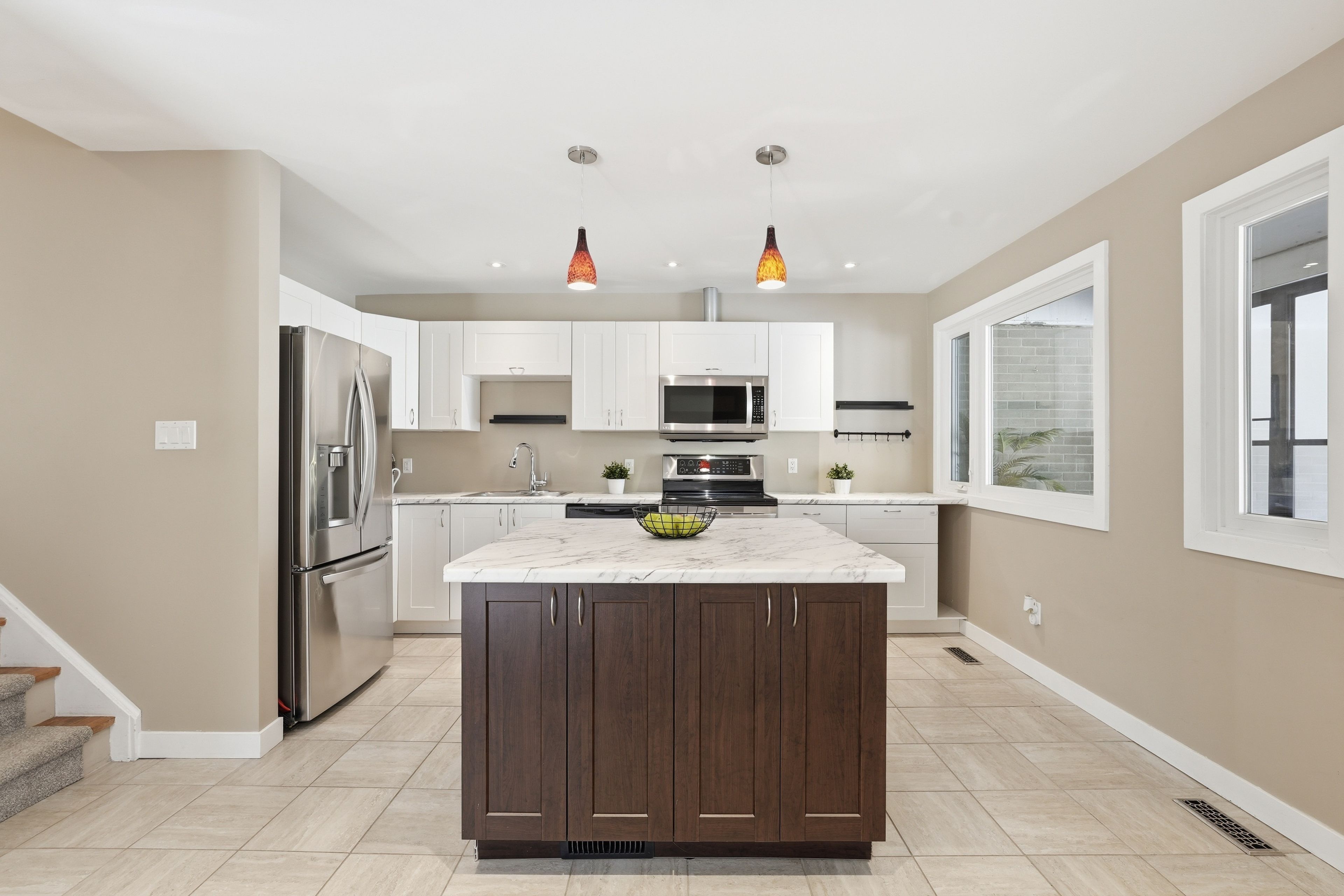 Welcome to 34 ontario street, orangeville - a beautifully maintained semi-detached backsplit designed for flexible, family-friendly living in one of the community's most charming neighbourhoods. This thoughtfully laid-out 3+1 bedroom, 2 bathroom home offers multiple distinct living zones across levels, ideal for growing families, multigenerational living, or anyone seeking dedicated spaces to live, work, and unwind. The sun-filled main floor features a bright living room and a modern kitchen with stainless steel appliances and a large island, flowing into a cozy dining area with walk-out to the spacious, fully fenced yard, perfect for everyday living and entertaining alike. One of the home's standout features is the private upper-level primary retreat, set apart on its own level with a full bath, creating a peaceful sanctuary away from the rest of the home. The lower level offers two additional bedrooms and another full bathroom, providing comfortable accommodations for children, guests, or extended family. The versatile basement adds even more flexibility, easily adapting to your lifestyle, whether you envision a media room, playroom, home office, gym, or additional bedroom. With multiple living areas and separation of space, this home effortlessly evolves with your needs over time. Ideally located close to hockley valley, schools, parks, shopping, and all the amenities orangeville has to offer, this warm and welcoming home is a true gem for buyers seeking both comfort and versatility.