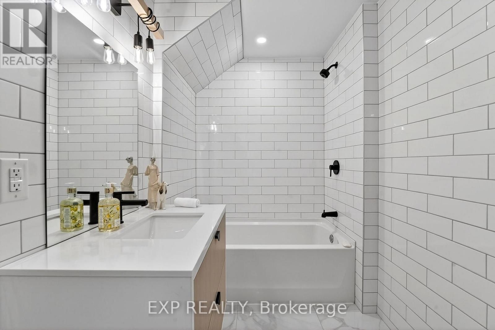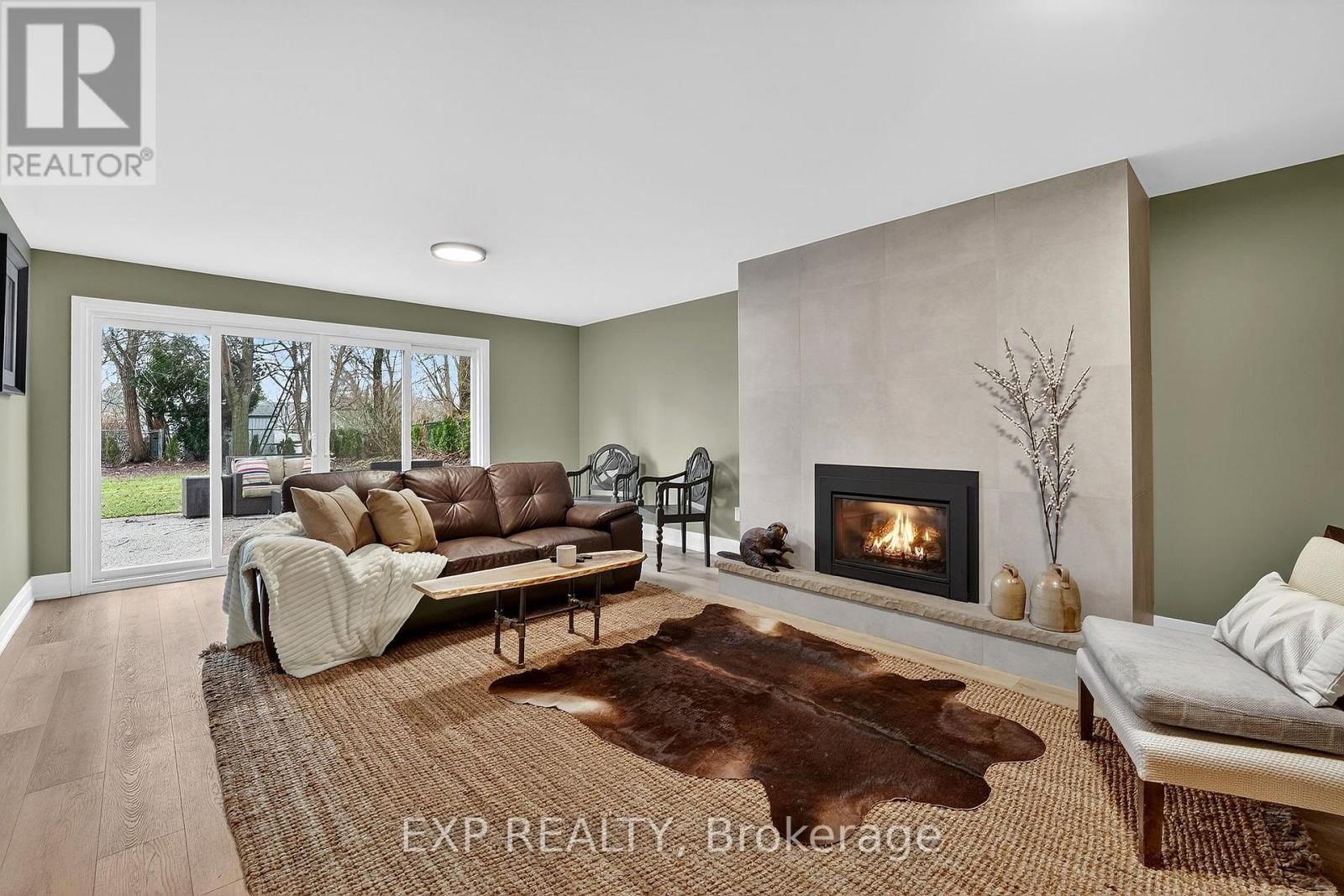 This bright and light home needs to be seen to be truly appreciated ! ~2500 sq ft of living space. It sits on a rare double lot- providing space, privacy, and exceptional outdoor potential. From the moment you arrive the timeless curb appeal, a wrap-around driveway, and a double car garage (with rear access) sets the tone. Inside, the main level features a bright, open-concept living space finished with quality craftsmanship throughout. The stunning kitchen is designed for both everyday living and entertaining, showcasing quartz countertops, abundant cabinetry, and premium appliances including a thor range. Step out from the kitchen onto the balcony and enjoy the peaceful views of your private, tree-lined backyard-perfect for morning coffee or evening unwinding. Both four-piece bathrooms feature heated floors, adding comfort and luxury to daily living. The fully finished on-grade lower level offers a separate entrance, a gas fireplace, and a walk-out to the backyard, making it ideal for extended family, or additional entertaining space. With countless upgrades, a turnkey interior, and a prime location, this home is an exceptional opportunity you won't want to miss. Renovated top to bottom prior to purchase in 2022. New in 2023: heat exchanger, new central air, security cameras, copper wiring, drop ceiling in the recreational room, professional painting, a 10x10 shed with 2x6 framing and board and batten on a thick concrete pad. Ontario drainage/ french drain installed in backyard for water drainage, new roof, and landscaping w/ 40 cedar trees. Perfect location for outdoor enthusiasts, families or retirees with multiple parks, local schools ( a k wigg public school, fonthill montessori preschool, glynn a green public school, e. L. Crossley secondary school, ) , restaurants and shops nearby. Three hospitals within a 15 minute drive. A move to 34 pancake lane is not only renovation free, it could be your next forever home. Come see it for yourself!