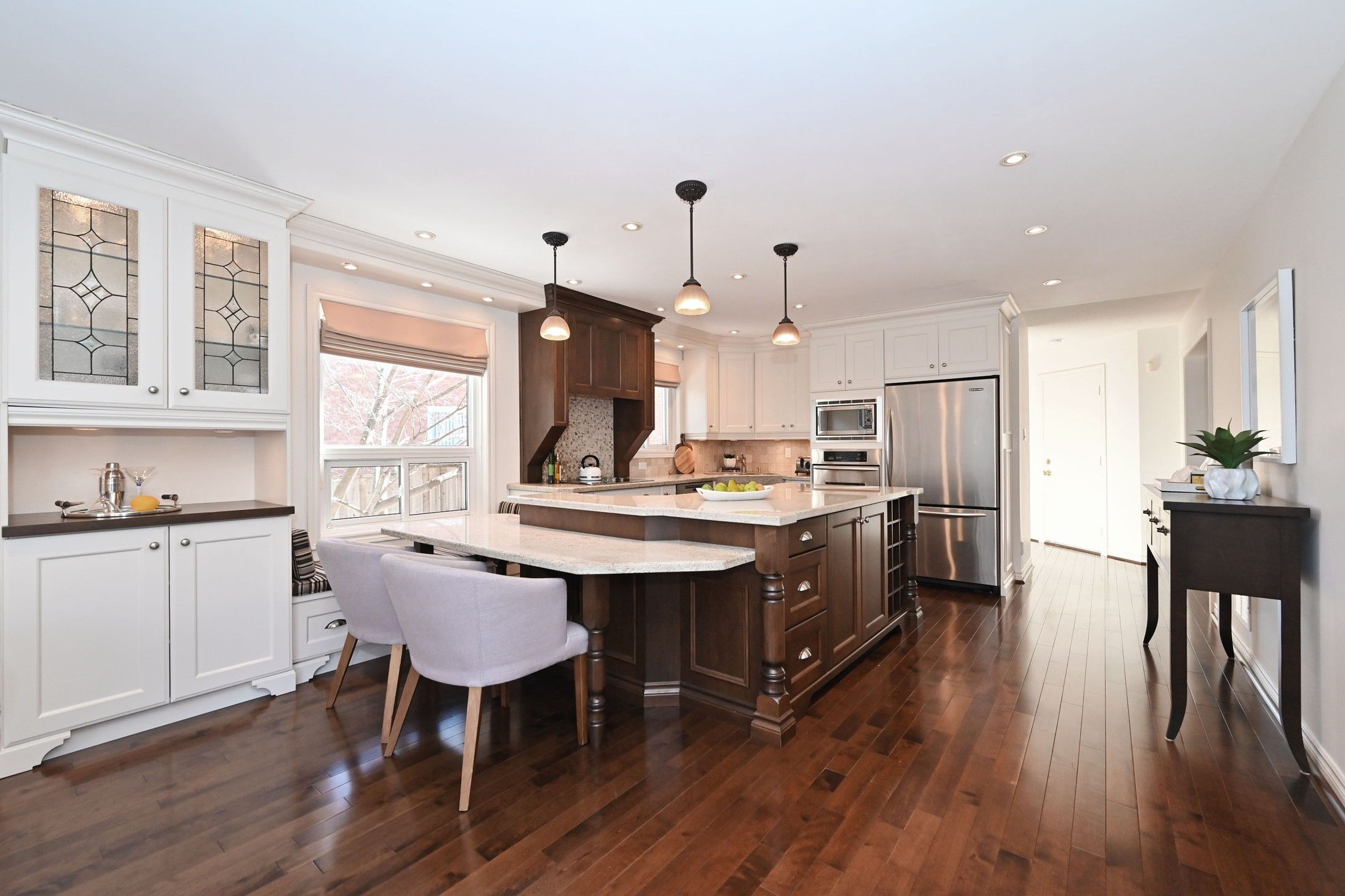 • Custom gourmet kitchen with a large island for hosting.