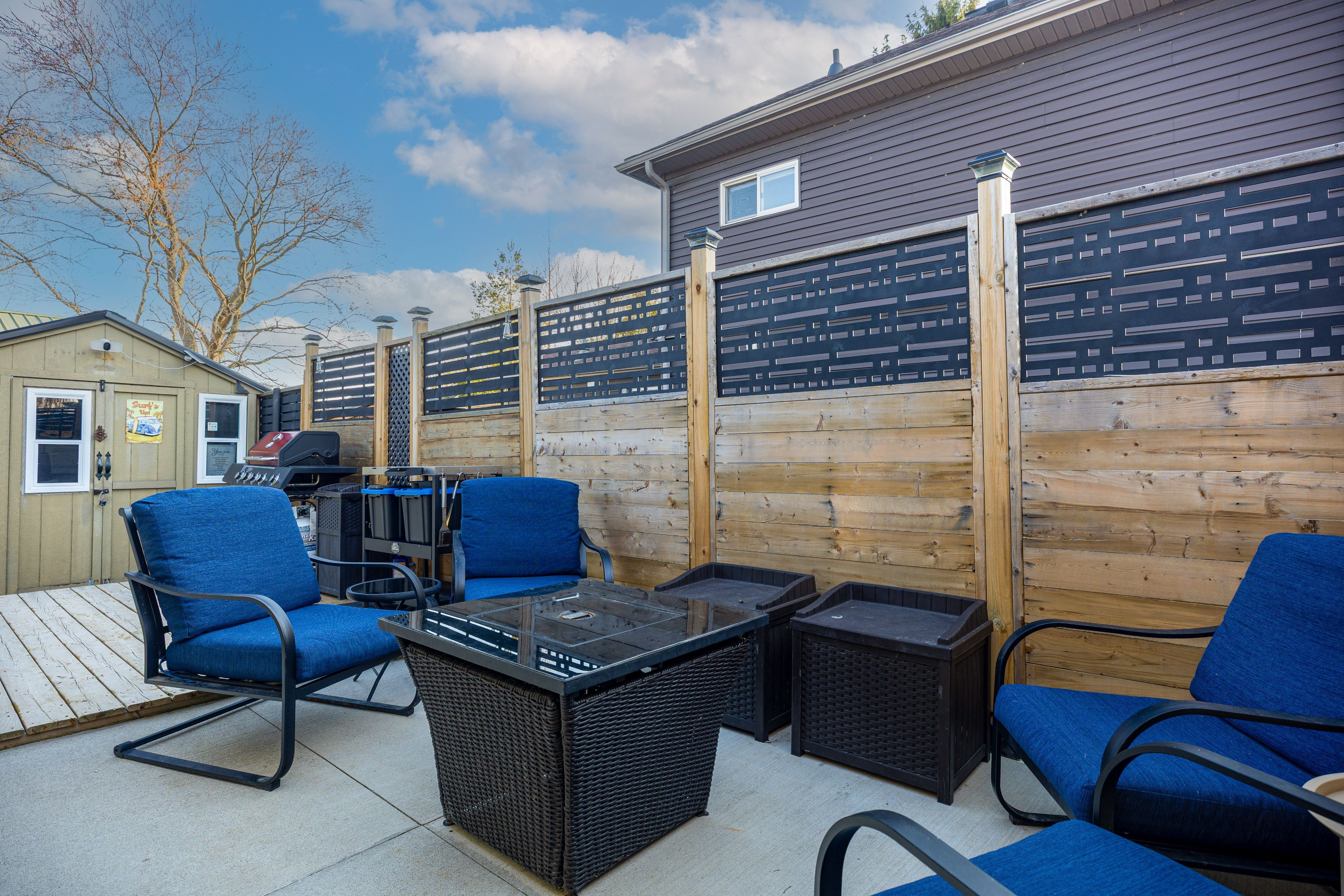 • Separate shed and bunkie offer flexibility for guests or home office.