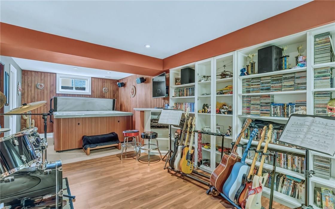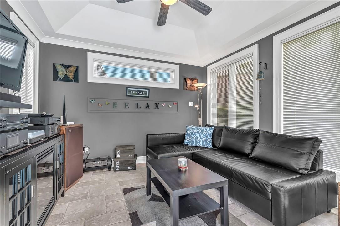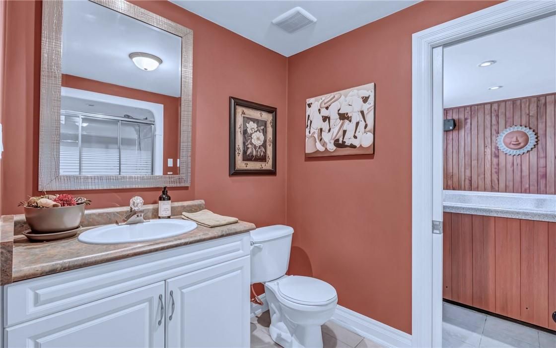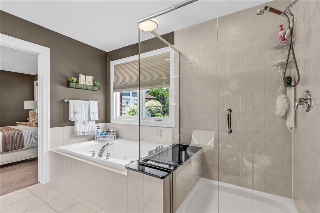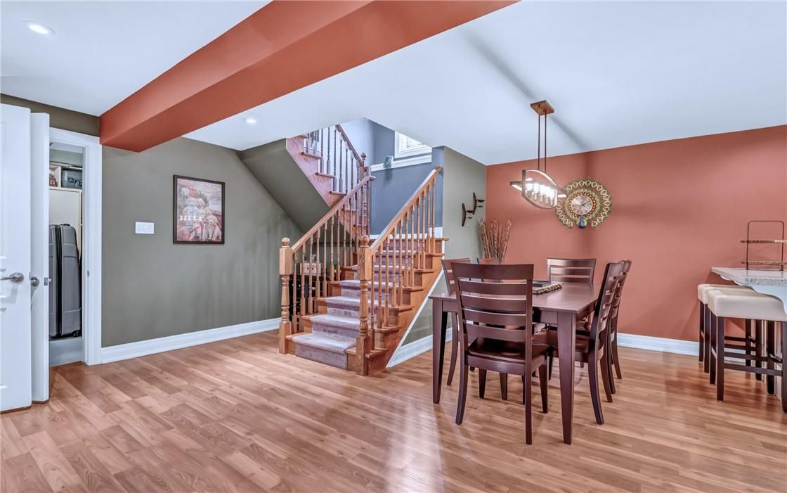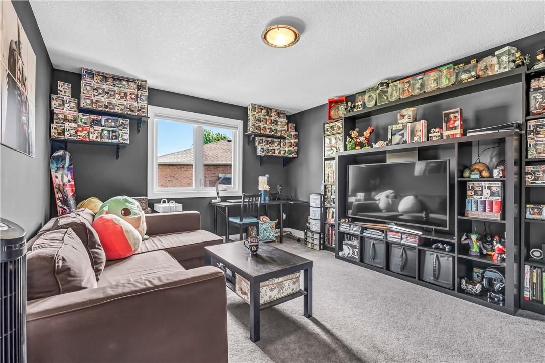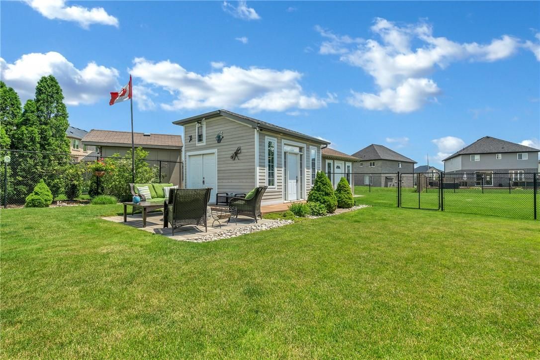 Custom-built home with over 5000 sqft of finished living space, meticulously maintained by original owners. It offers 2 primary bedrooms, as well as a full in law suite, ideal for a multi generational family. Situated on an oversized pie shaped lot, 10 min to upper james shopping. This stunning property boasts a wide stamped concrete drive w/ parking for 4 vehicles + oversized double car garage, 11 ft in height, w/ 9 foot high garage doors, perfect to accommodate a car lift. Main floor features a dream kitchen with custom cabinetry, quartz countertops, extra large sink & eating area with oversized patio door leading to the backyard oasis. Main floor primary bed w/ walk in closet & 6pc ensuite. Bright & spacious 2 storey family rm w/ natural gas fireplace, separate living & dining room, bed/office, 2 pc bath & main floor laundry off of the garage. The upper level offers a family room, 3 bedrooms, including 2 that offer ensuites & walk in closets. Fully finished basement has a full kitchen with dining area, rec room, bed w/ ensuite privilege to 3pc bath, office, workshop, 2nd laundry rm, + hot tub & hobby room. Gorgeous backyard featuring inground saltwater pool with new heater, stamped concrete surround, trex decking on patio & in the covered outdoor kitchen area, outdoor speakers & oversized custom shed. 4 season sunroom is the perfect place to relax. Recent updates include pool heater 2025, roof shingles 2020, shed & sun rm shingles 2022, furnace & a/c 2023. This home must be seen! Luxury certified.