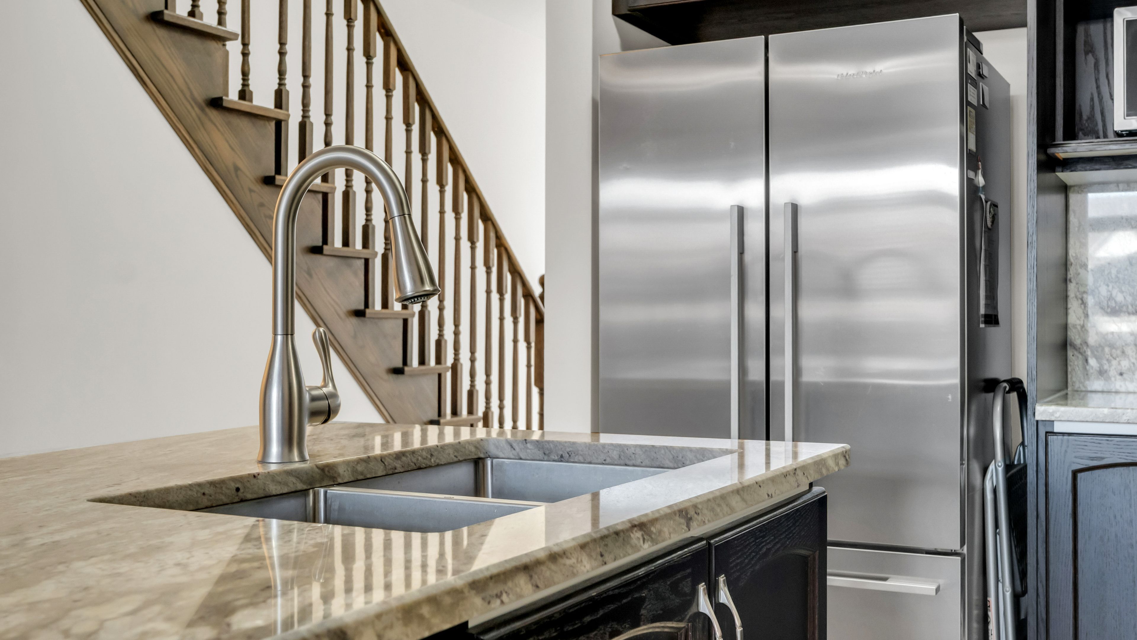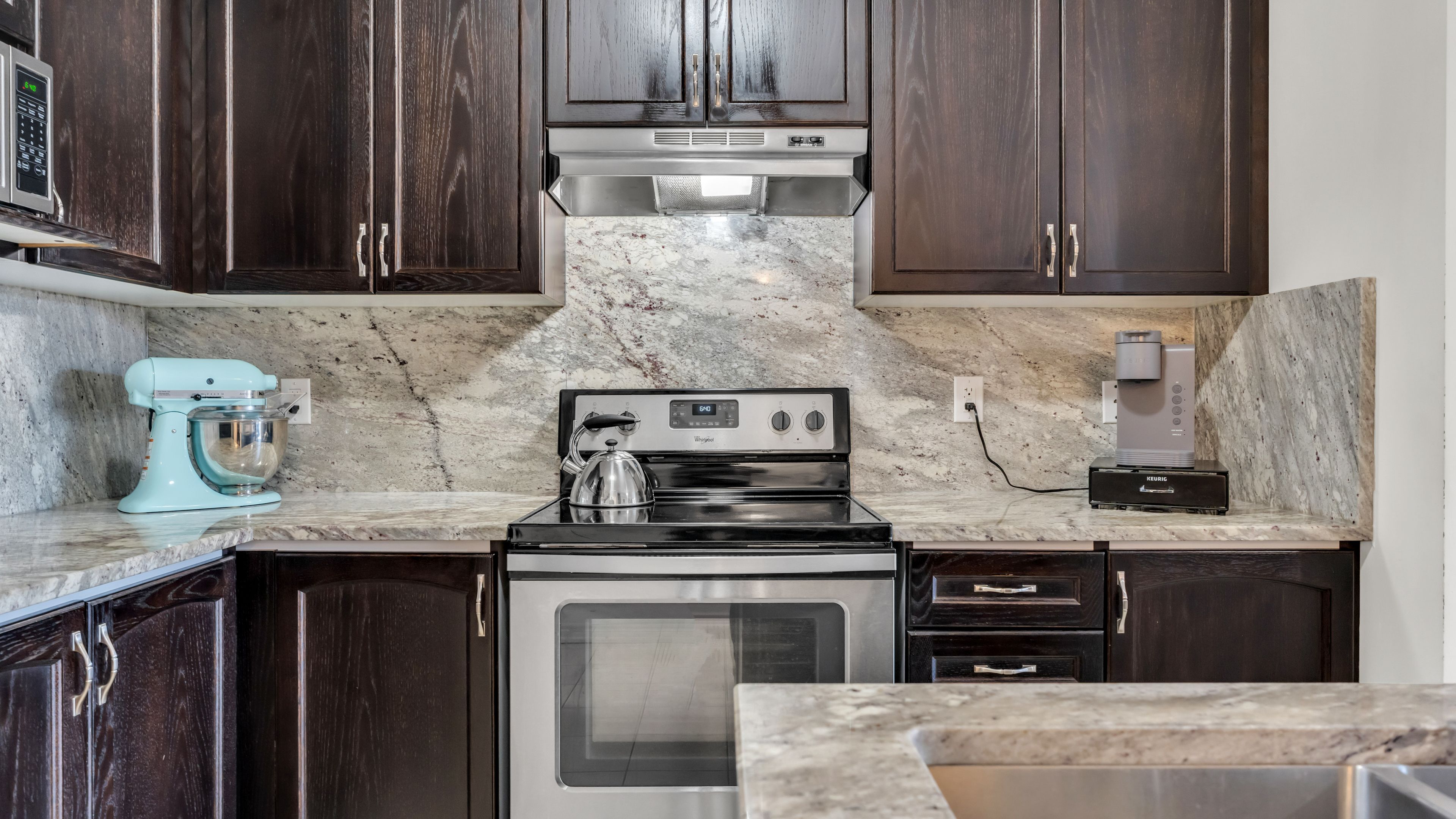 • Upgraded kitchen with granite countertops and stainless steel appliances.