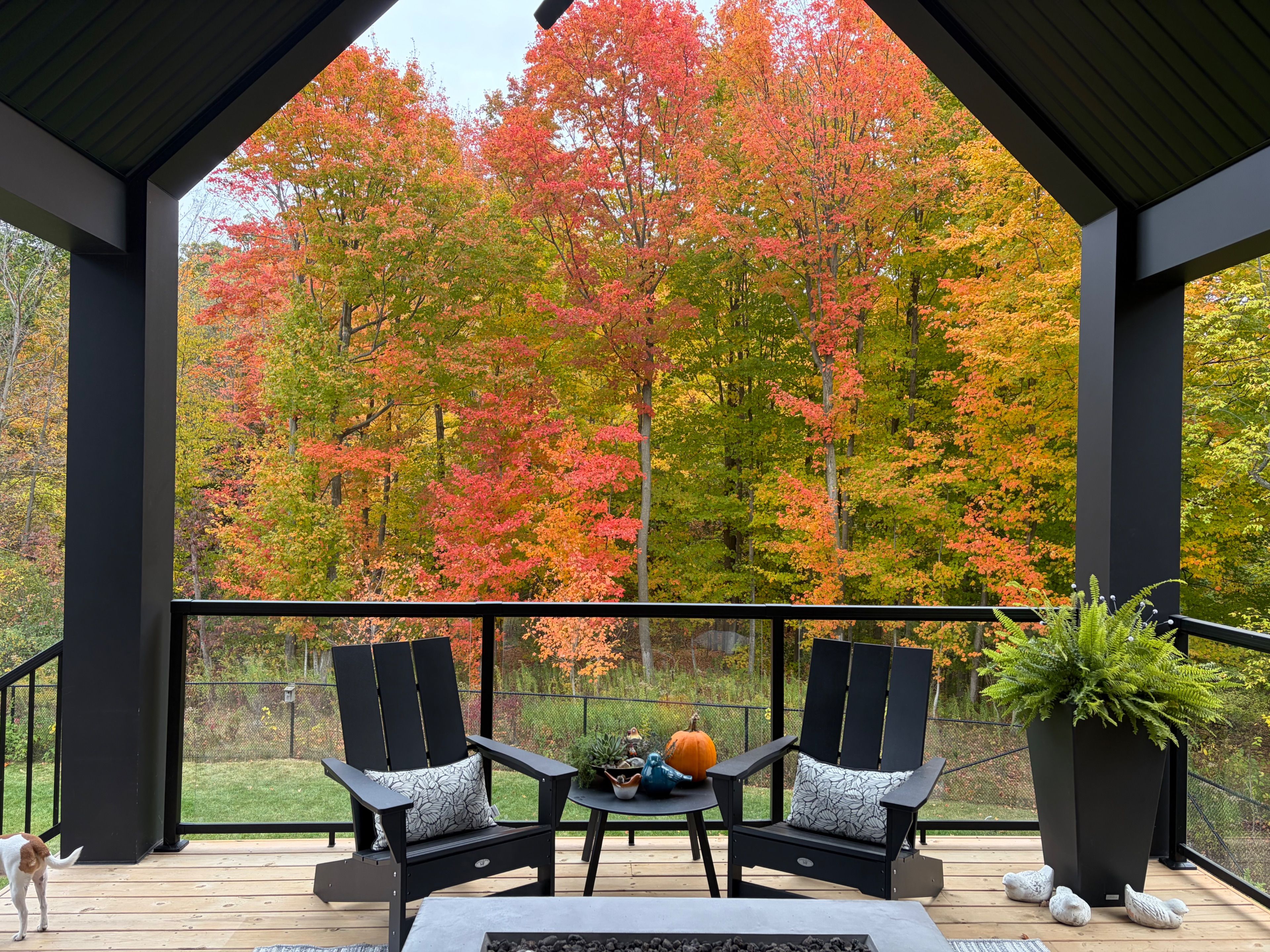 Executive bungalow on a spectacular 1/3-acre lot backing onto protected forest and pond system in prestigious boler heights. Positioned at the top of a quiet cul-de-sac, this residence offers rare privacy and immersive four-season views that feel more muskoka than city living. The open-concept primary living spaces are anchored by a dramatic vaulted window wall that frames the treed landscape like living art. Designed with intentional sightlines across the wooded setting, the great room, dining area and kitchen flow together in a seamless fusion, bathed in natural light and a kaleidoscope of seasonal colour. Views travel effortlessly from one space to the next, allowing the forest to become part of the interior experience. A contemporary fireplace and striking wood slat illusion feature wall along the staircase add architectural texture and warmth. The chef-inspired kitchen is both refined & inviting, featuring a full-height tile backsplash feature wall, statement island, stainless appliances a walk-in pantry. Designed for effortless entertaining, it opens directly to the late partly covered deck with glass railings -an elevated outdoor living room suspended in the trees. Rich walnut detailing throughout the main level continues into the lower level, creating cohesive design continuity. The main floor primary suite offers private deck access, a spa-inspired ensuite and walk-in closet. A second bedroom, full bath, private office and generous mudroom/laundry enhance comfort and convenience, while the oversized garage includes ev charger. The walkout lower level is finished with in-floor radiant heat and features an expansive entertaining area with wet bar, 3 additional bedrooms and a covered patio with hot tub. Large windows draw natural light throughout. A full bath with exterior access supports future pool plans and refined backyard gatherings. An exceptional opportunity for retirees or discerning buyers seeking a luxury cottage-inspired lifestyle within the city.