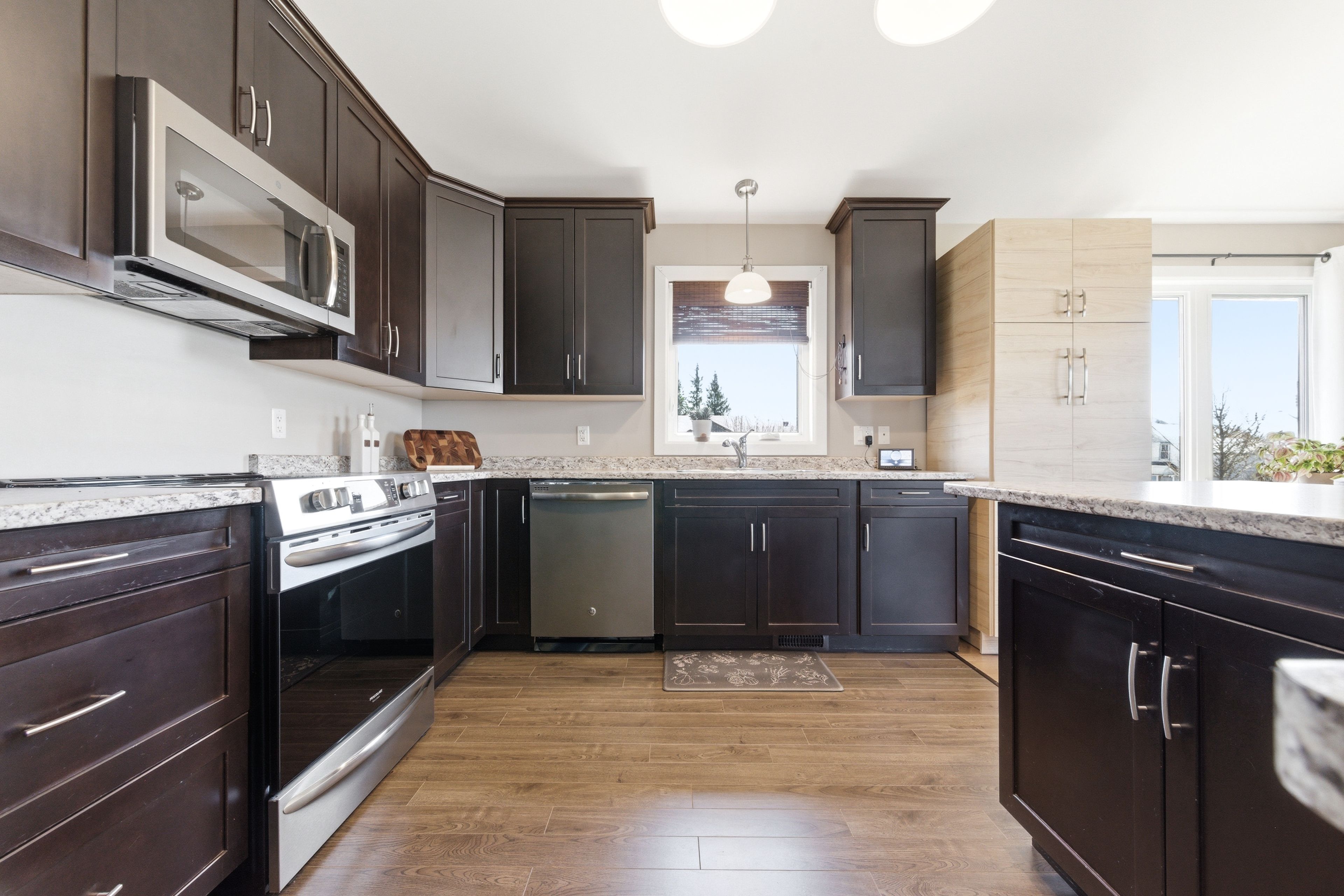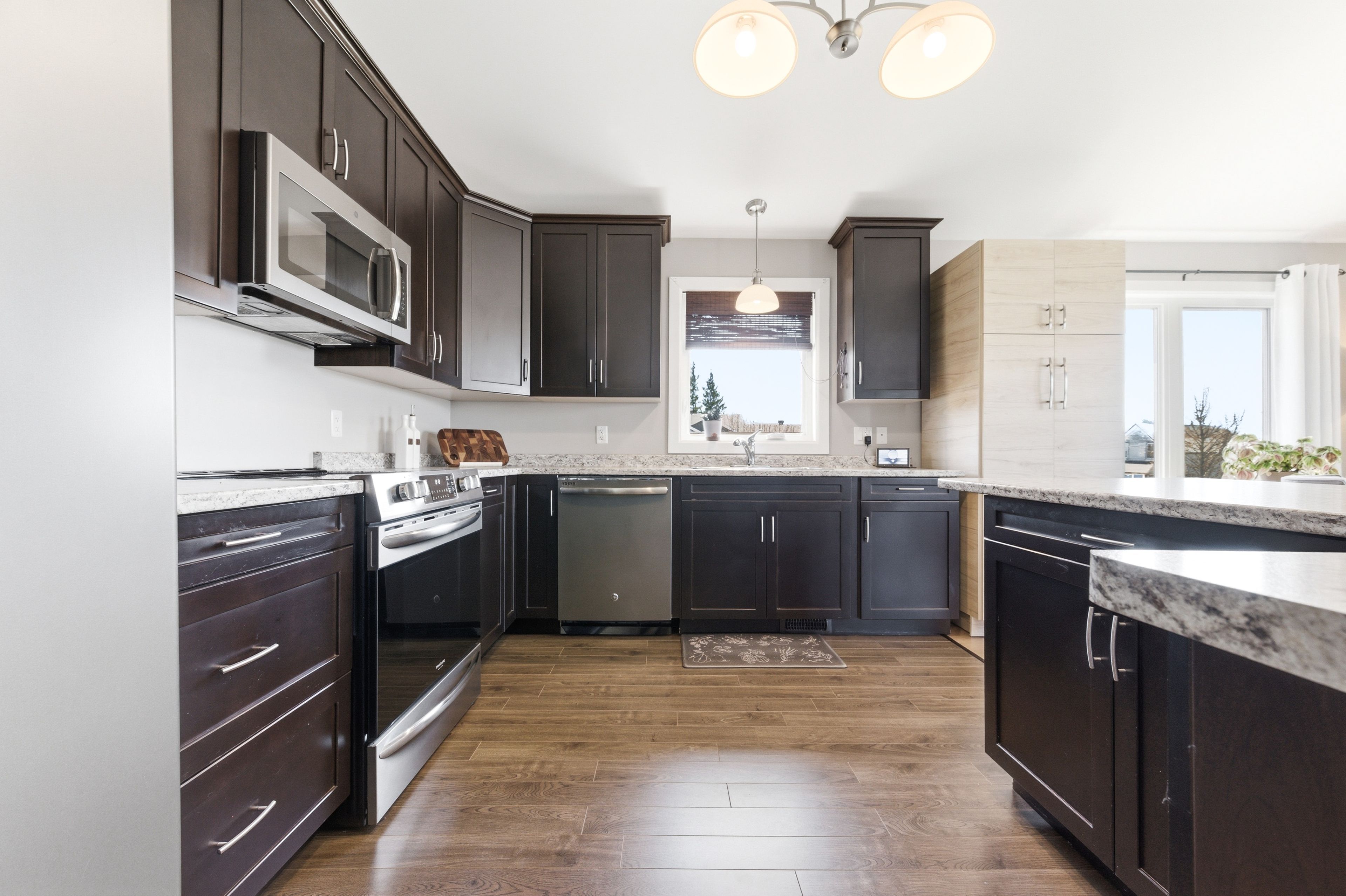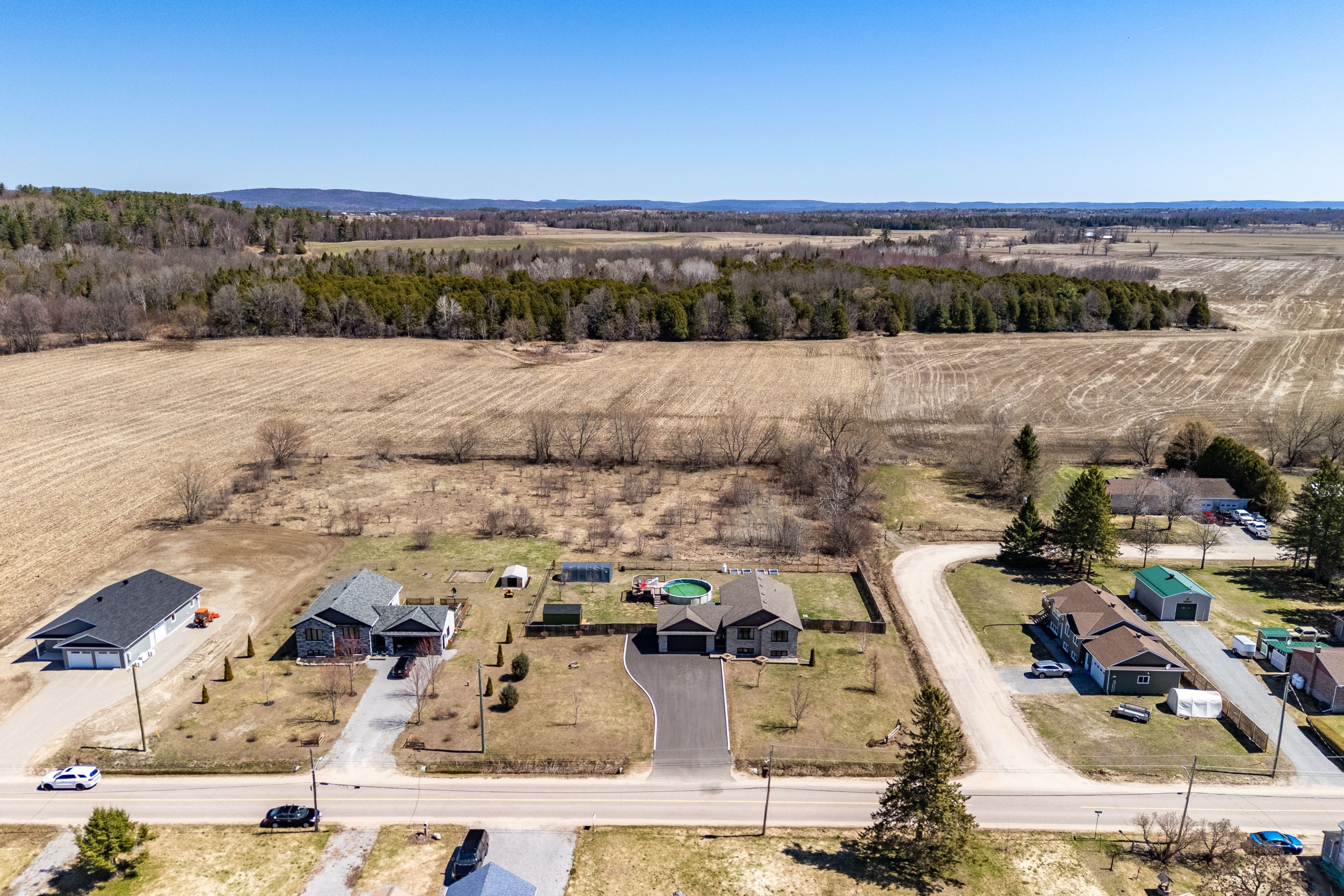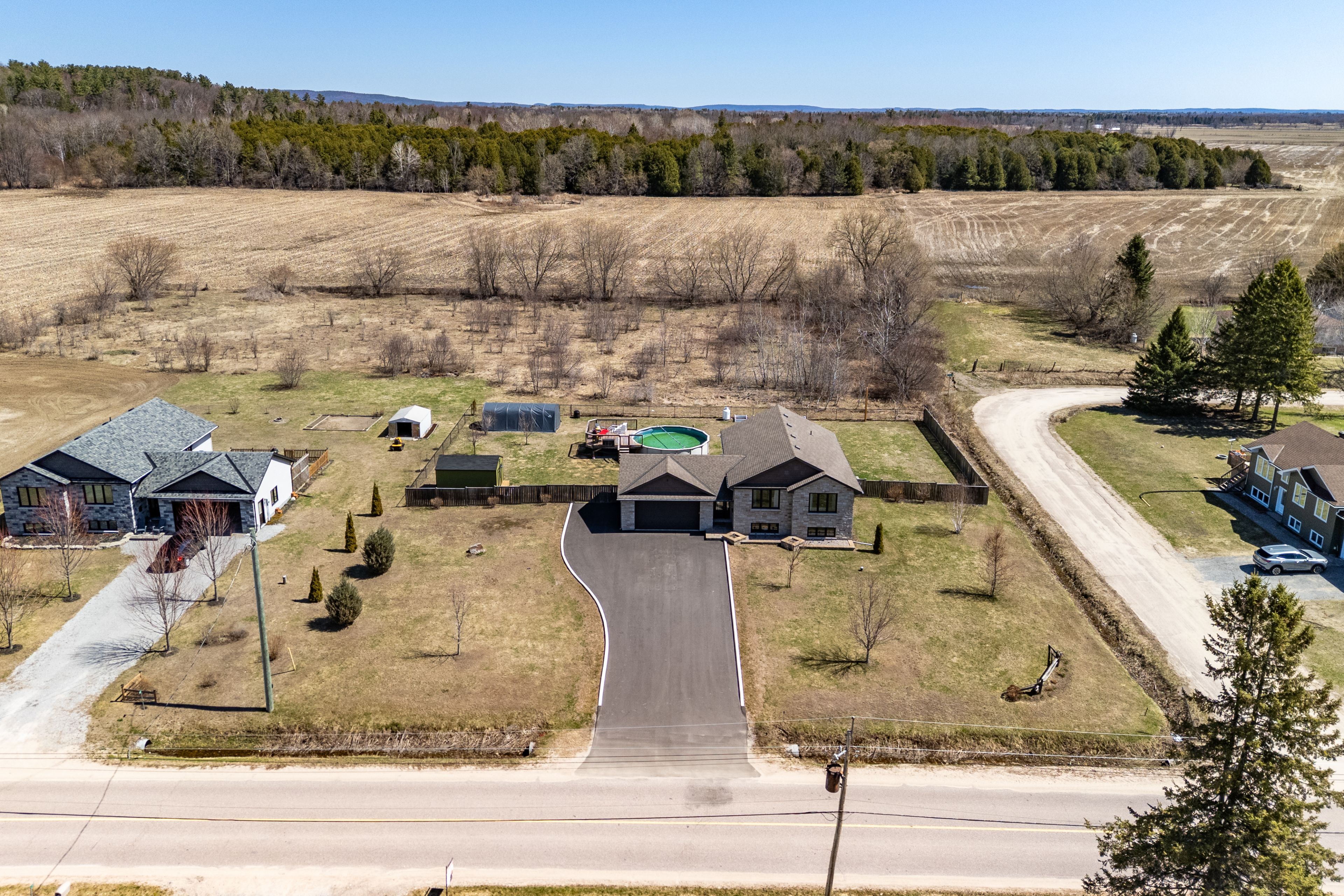 Beautifully maintained 4-bed, 2-bath home with an oversized 2-car garage. Bright open-concept main level with vaulted ceilings and large windows. Three spacious bedrooms on the main floor plus a luxurious 5-piece bath with double sinks and soaker tub. Expansive lower level with extra-high ceilings, large rec room, and cozy propane fireplace-perfect for entertaining. Fourth bedroom, full bath, laundry, and storage complete the space. Enjoy a private, fully fenced backyard oasis with hot tub, above-ground heated pool, deck, and lush views perfect for your entertaining needs. Close to shopping, schools, parks, and the ottawa river boat launch. A must-see home.