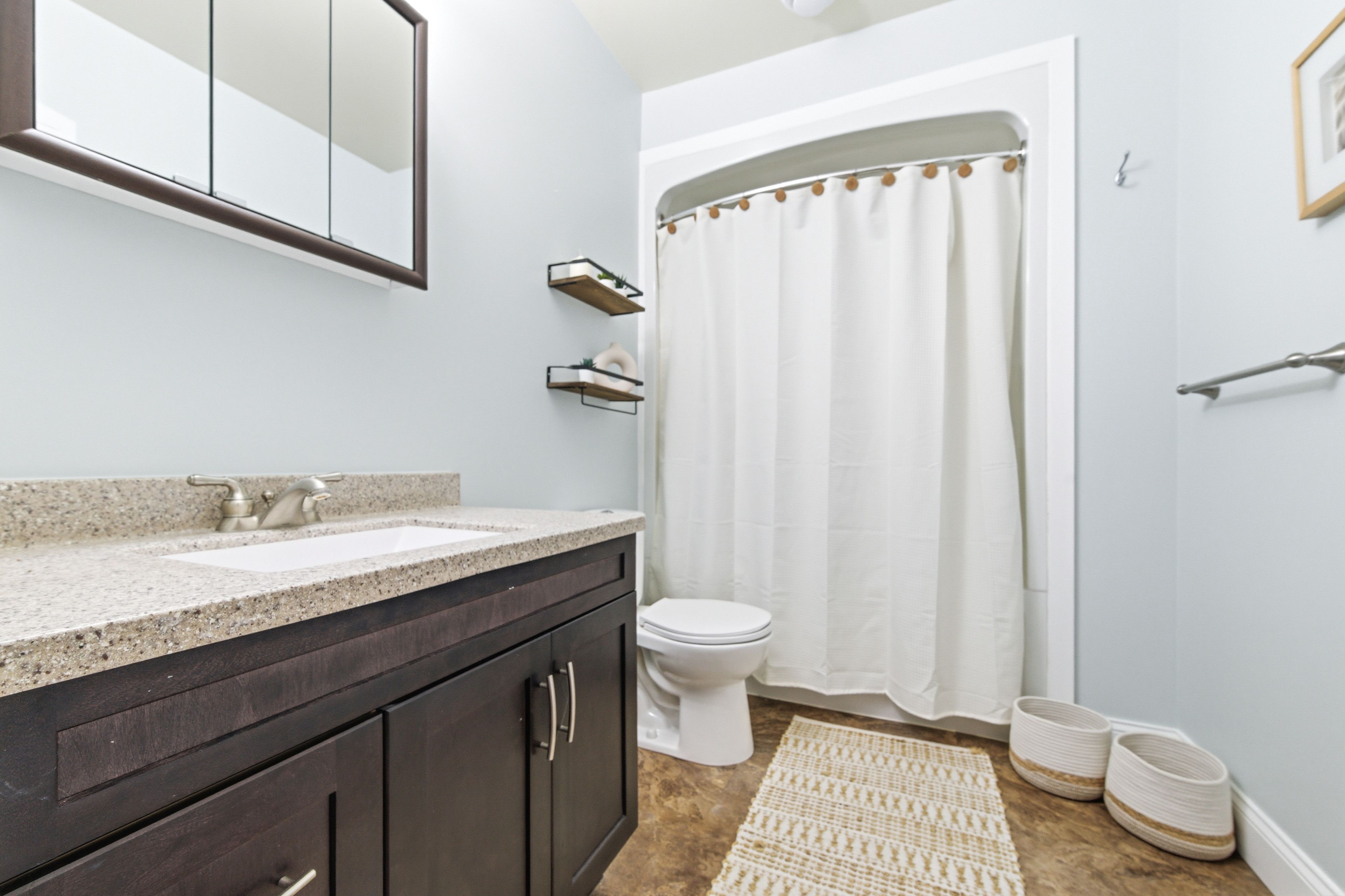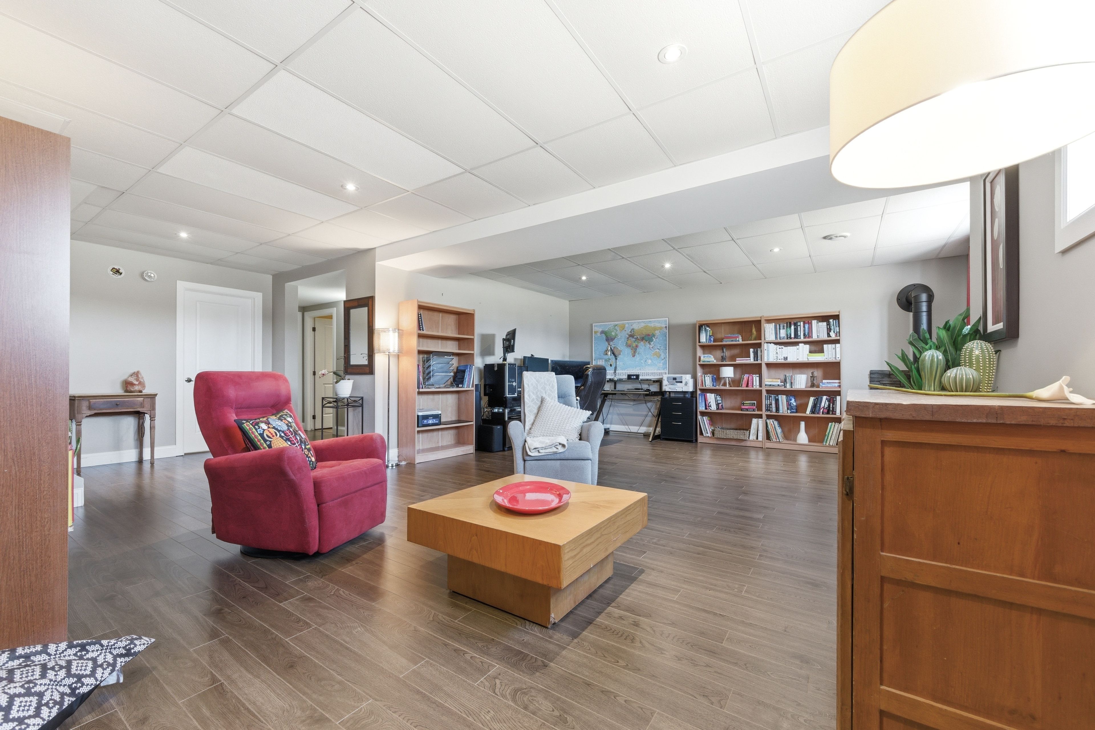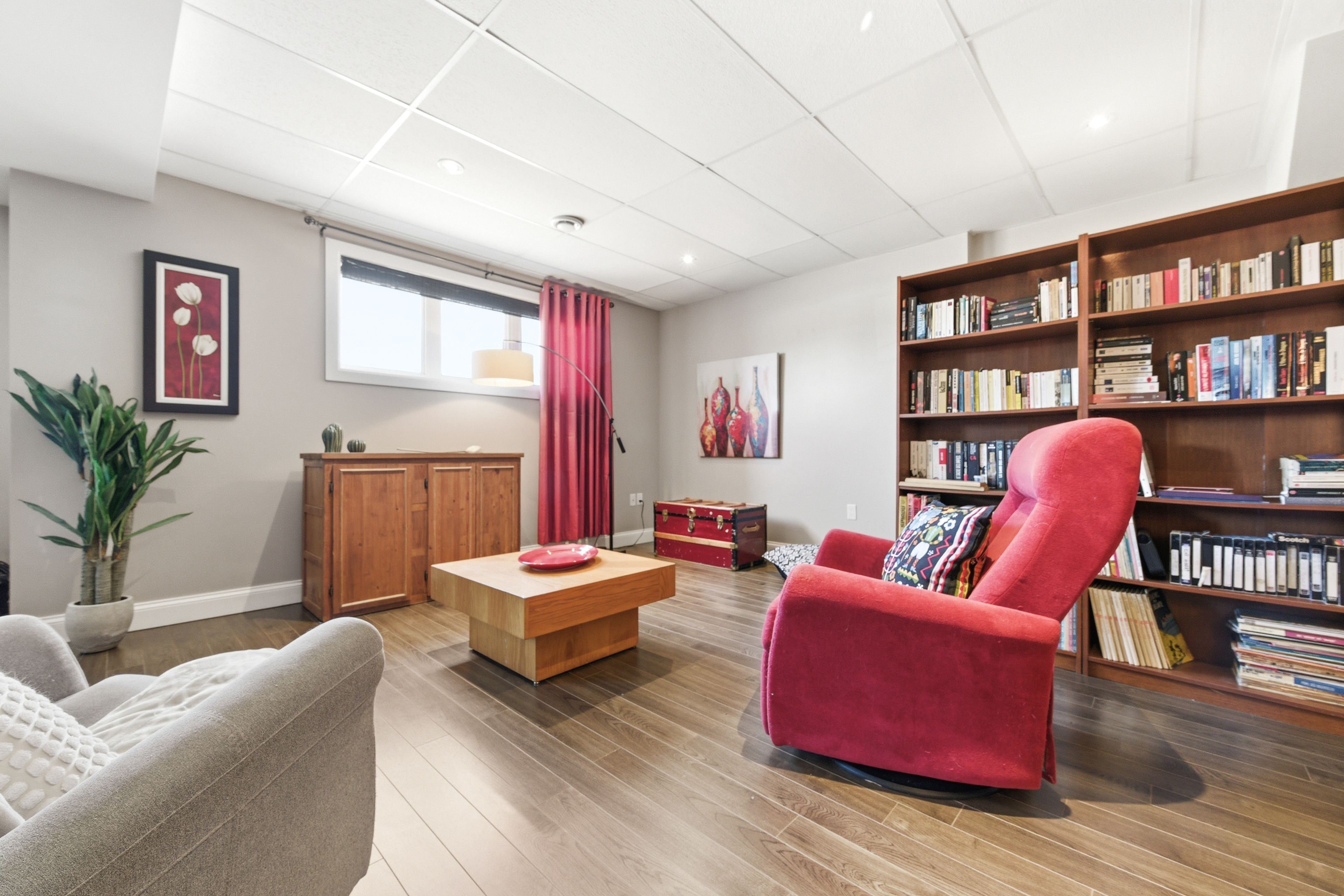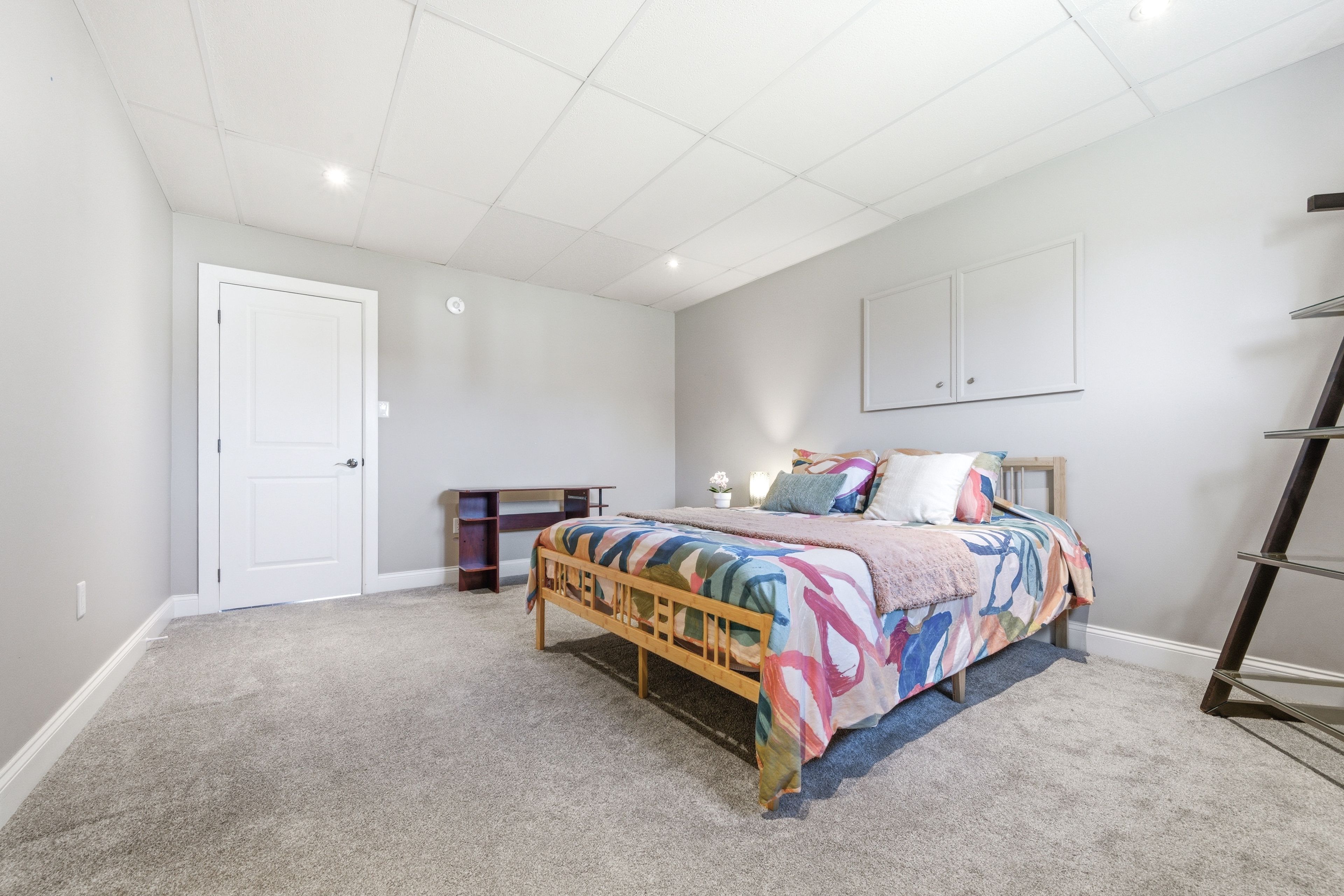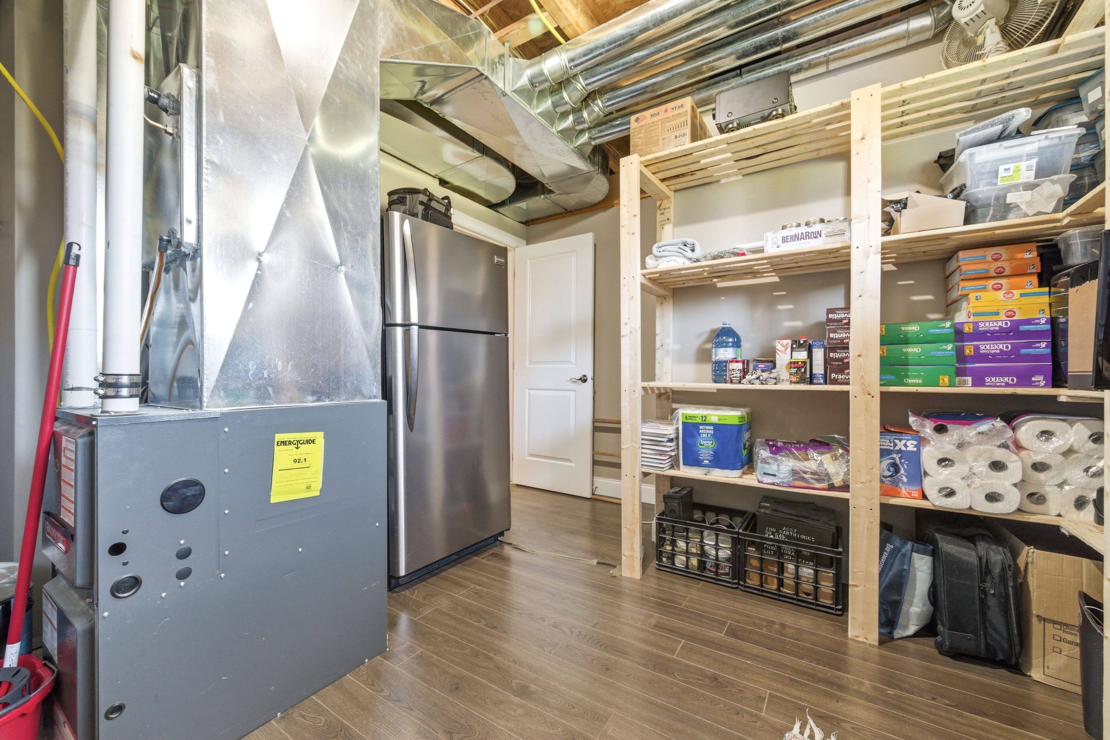 • Spacious lower level includes a rec room and cozy propane fireplace.