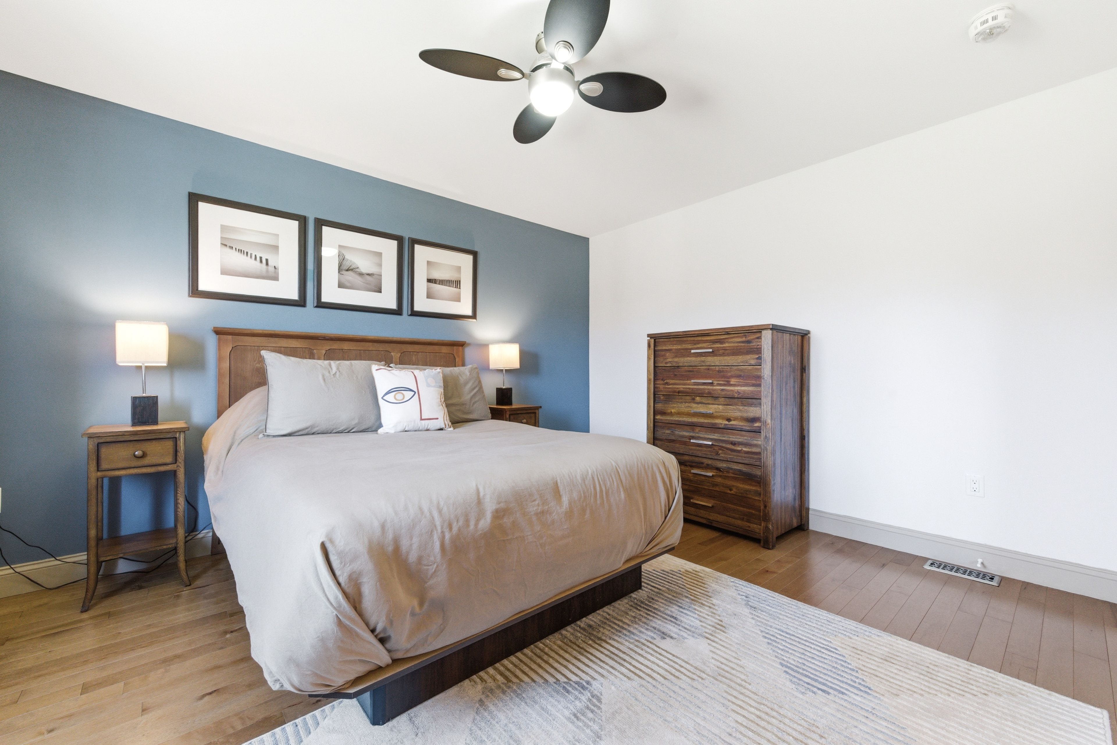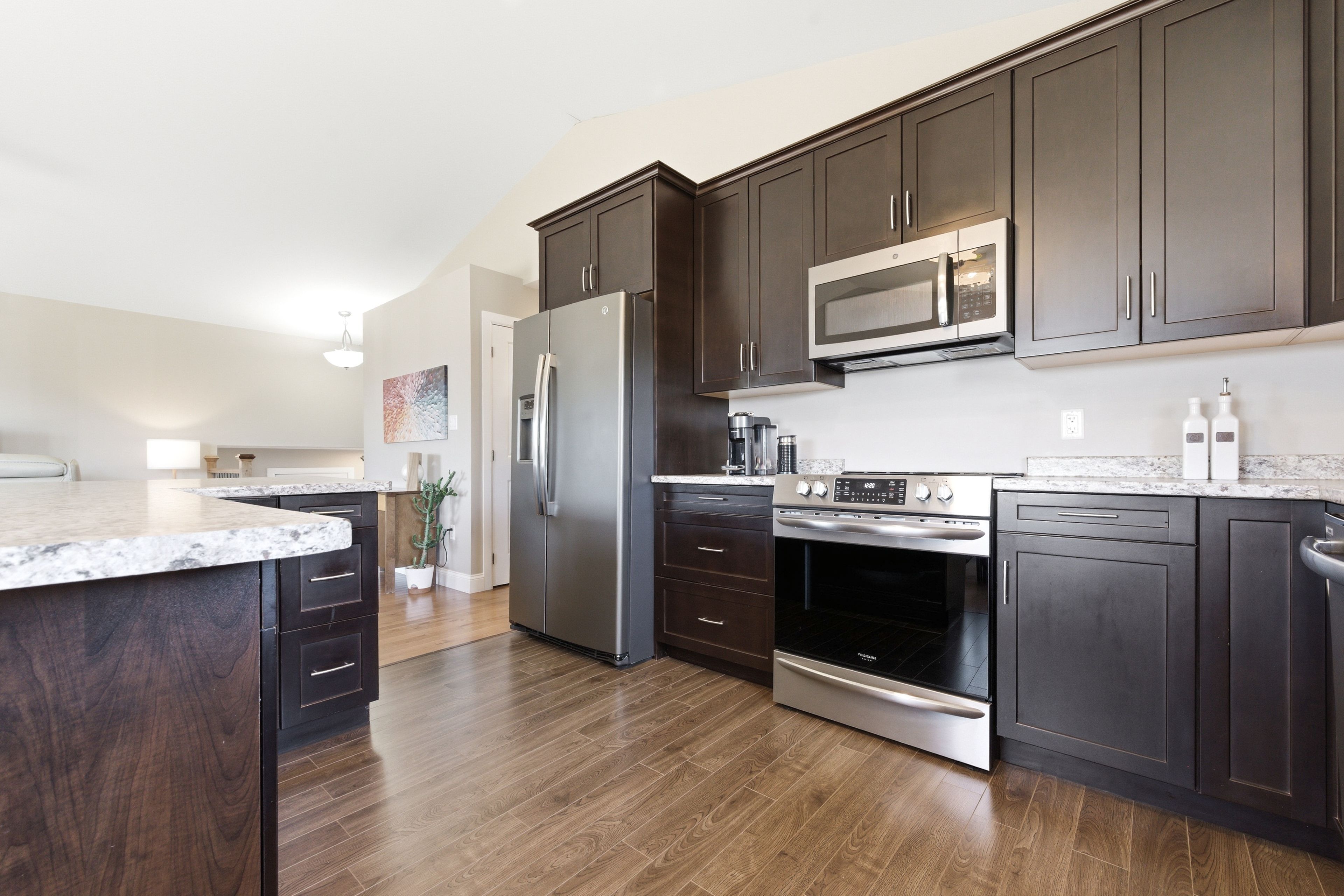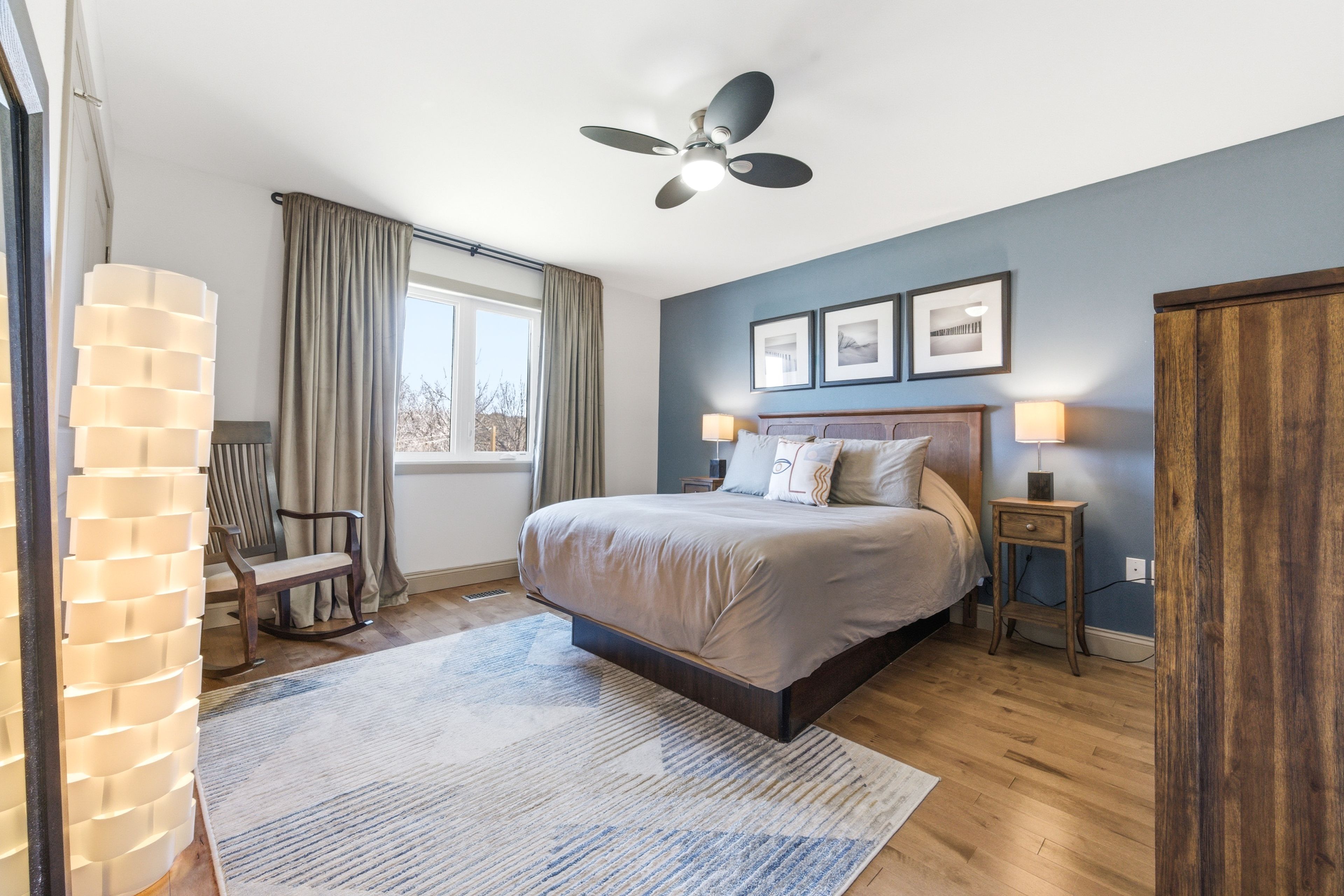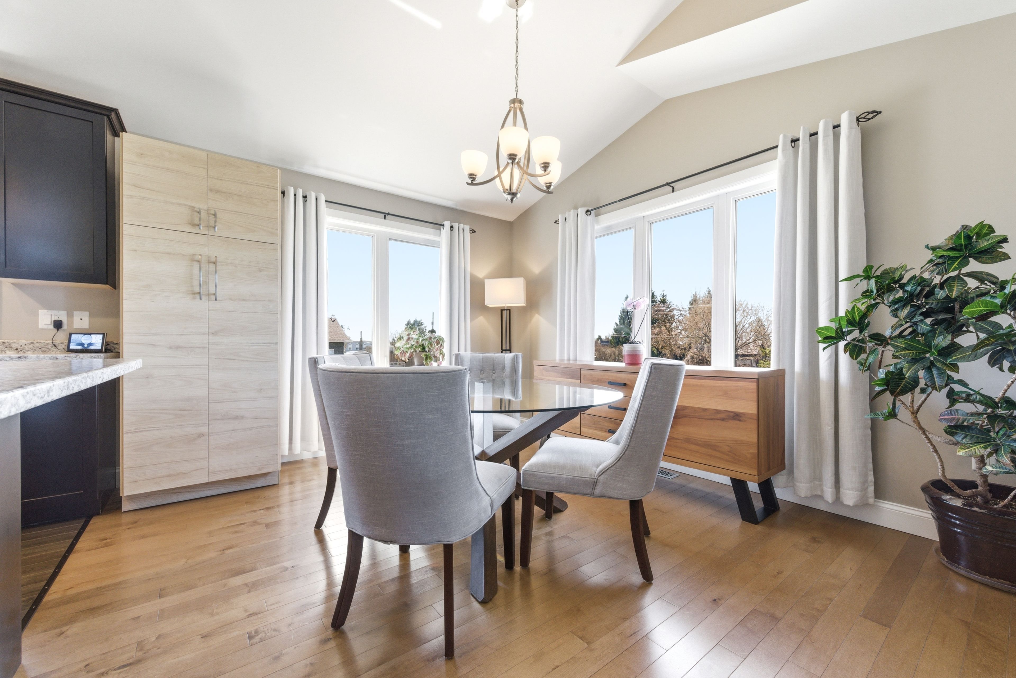 • Bright open-concept main level features vaulted ceilings and large windows.