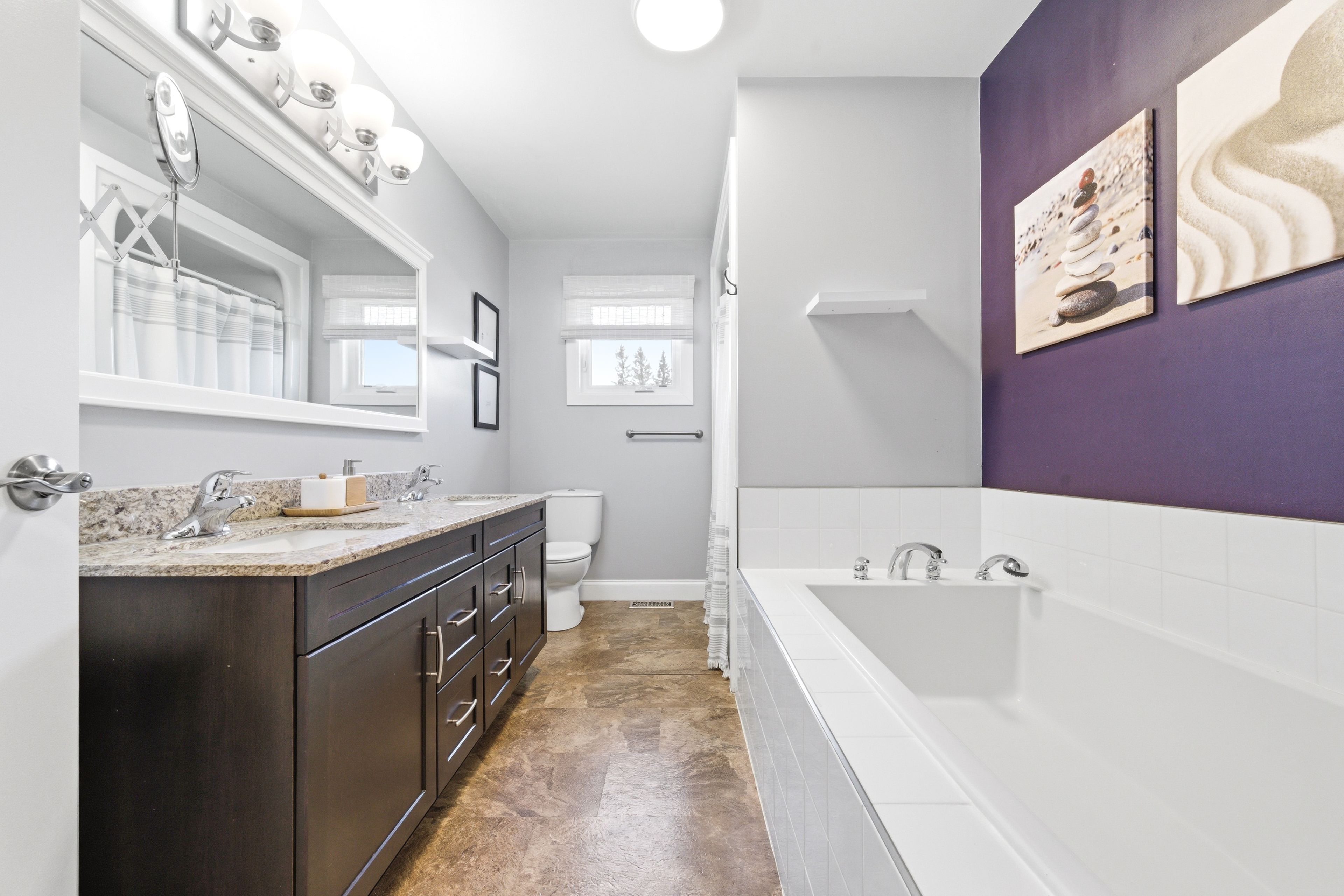 • Private fenced backyard with hot tub, pool, and deck for gatherings.