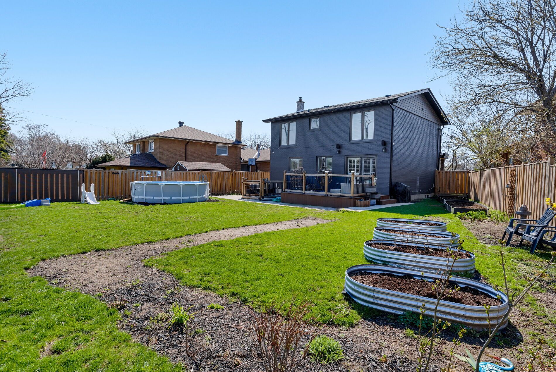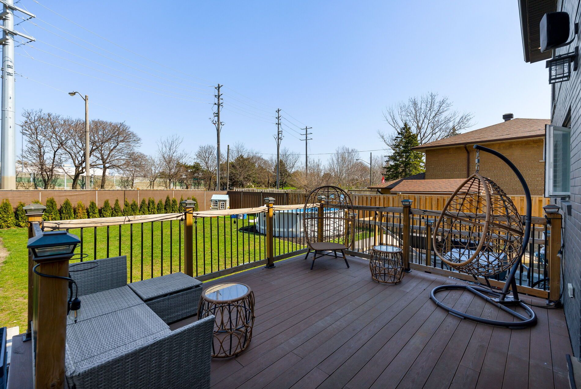 A true showstopper in highly sought-after alderwood, this beautifully renovated 4-bedroom, 4-bathroom home sits on an oversized 30 x 132 ft pie shaped north-facing lot at the end of a cul-du-sac and offers over approx. 2400 sq ft of thoughtfully designed luxury living. Renovated just five years ago with exceptional attention to detail, the home features high-end finishes throughout, including engineered hardwood floors, heated bathroom floors, california shutters, and a floating white oak staircase with sleek glass railings. The sun-filled open-concept main floor boasts expansive windows, a stylish living room fireplace, and a gourmet kitchen equipped with premium appliances, quartz countertops and backsplash, a pantry, and a walkout to a spacious deck-perfect for entertaining. Upstairs, four generously sized bedrooms include a stunning primary retreat with a spa-inspired ensuite. The finished basement, with a separate entrance, offers excellent income potential and flexibility with a second kitchen, laundry, a large recreation room, and a bedroom with a walk-in closet-ideal for a nanny suite or playroom. Additional highlights include a smart home system, steel front door, finished garage with side entrance and rough-in for an electric charger, and a beautifully landscaped, pool-sized backyard complete with a brand-new above-ground pool and garden, offering endless possibilities for customization. Located close to top schools, parks, trails, lake ontario, transit, shopping, and major highways, this move-in-ready home is perfect for modern family living.