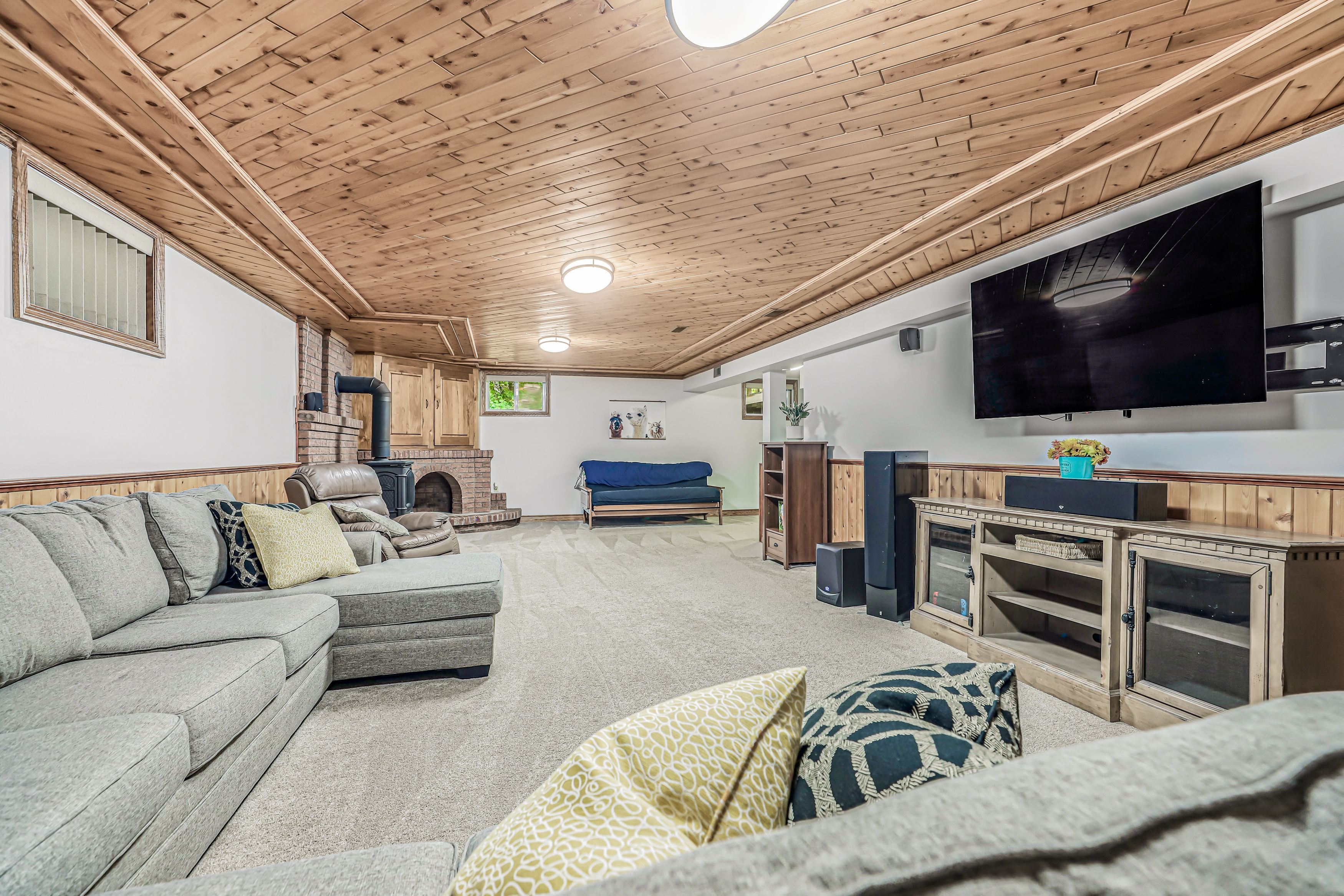 • Fully finished lower level with a cozy gas fireplace and extra rooms.