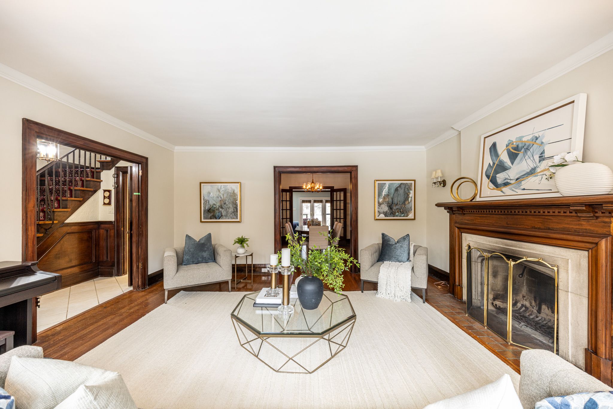 Exceptional 4-bedroom family home in the heart of chaplin estates, conveniently located near ucc and bss, offering approximately 3,009 sq ft above grade plus a finished walkout basement. This deceptively spacious residence has been thoughtfully expanded with a substantial 3-level addition, seamlessly blending the charm of its traditional façade with the scale and functionality of a much larger home. Elegant principal rooms include a formal living room with wood-burning fireplace and a gracious dining room ideal for entertaining. The kitchen, complete with breakfast area and quality appliances, opens to a generous family room with walkout to a private deck and beautifully landscaped garden-well suited for both everyday living and hosting. Character details such as plaster mouldings, hardwood flooring and quality millwork complement the home's overall sense of warmth and craftsmanship. The upper levels offer well-proportioned bedrooms and a flexible layout, including a third level that provides valuable additional space for a growing family, home office or guest retreat. The finished walkout lower level offers excellent recreational space with natural light and direct access to the backyard. Pride of ownership is evident throughout; the home has been meticulously maintained and is entirely move-in ready, while offering a clear opportunity for a buyer to modernize kitchen, bathrooms and finishes over time. Set on a rare 35' lot with a private driveway-an uncommon and highly desirable feature in this neighbourhood-this home is ideally positioned just steps to eglinton's shops, restaurants and everyday amenities, as well as the crosstown lrt for convenient transit access. A compelling opportunity to secure a well-maintained family home with exceptional space, location and long-term upside in one of midtown toronto's most sought-after communities.
