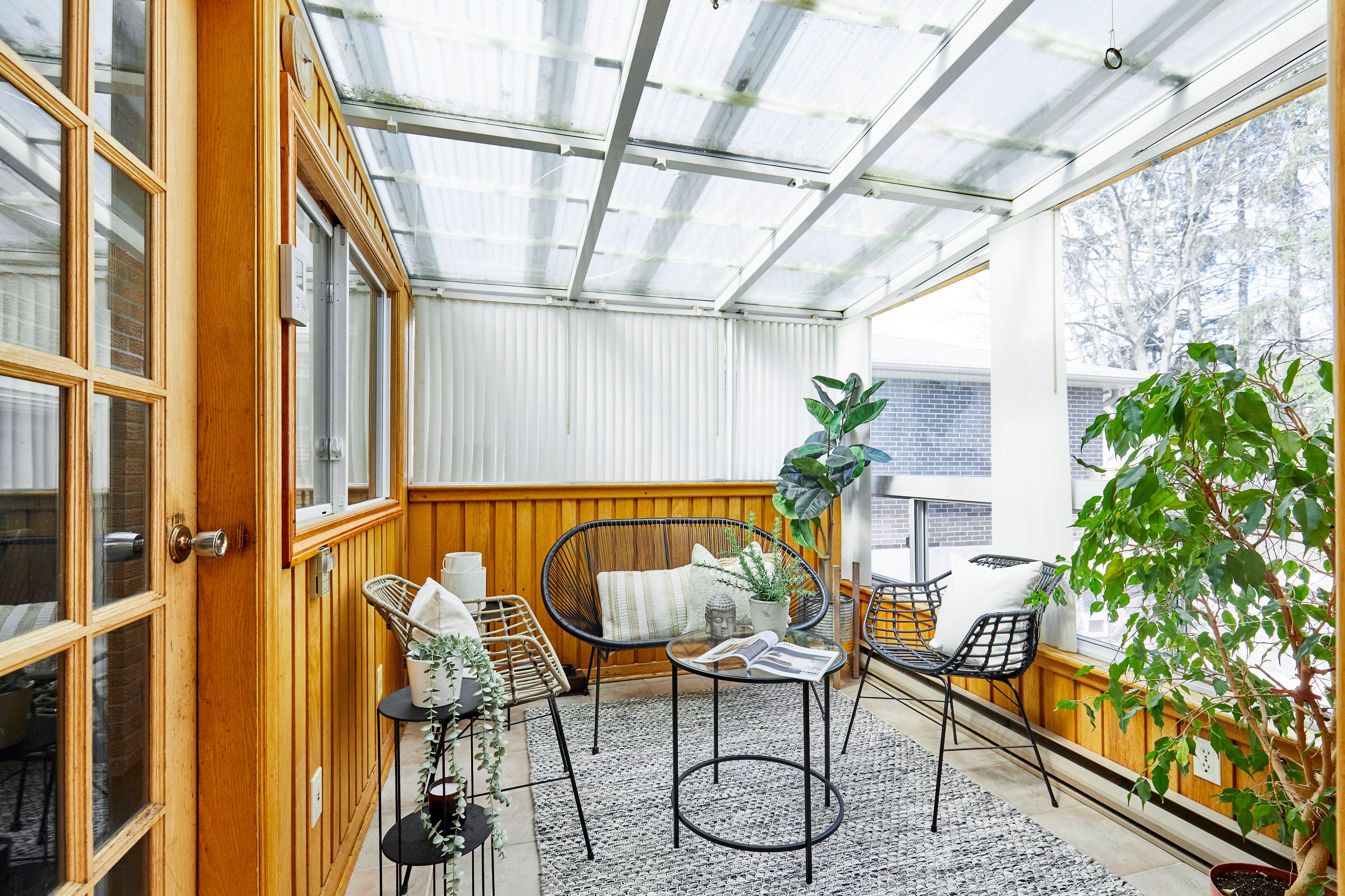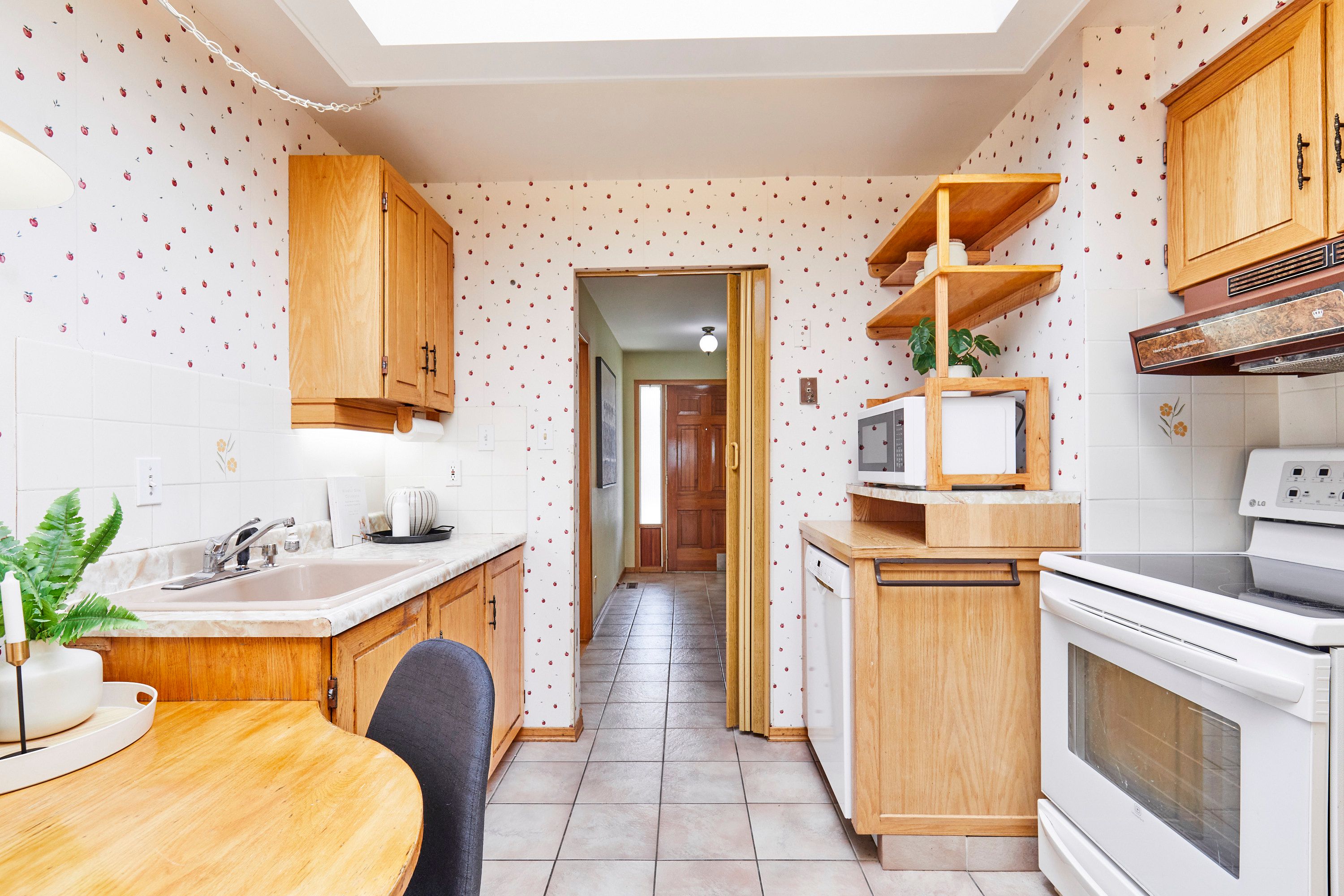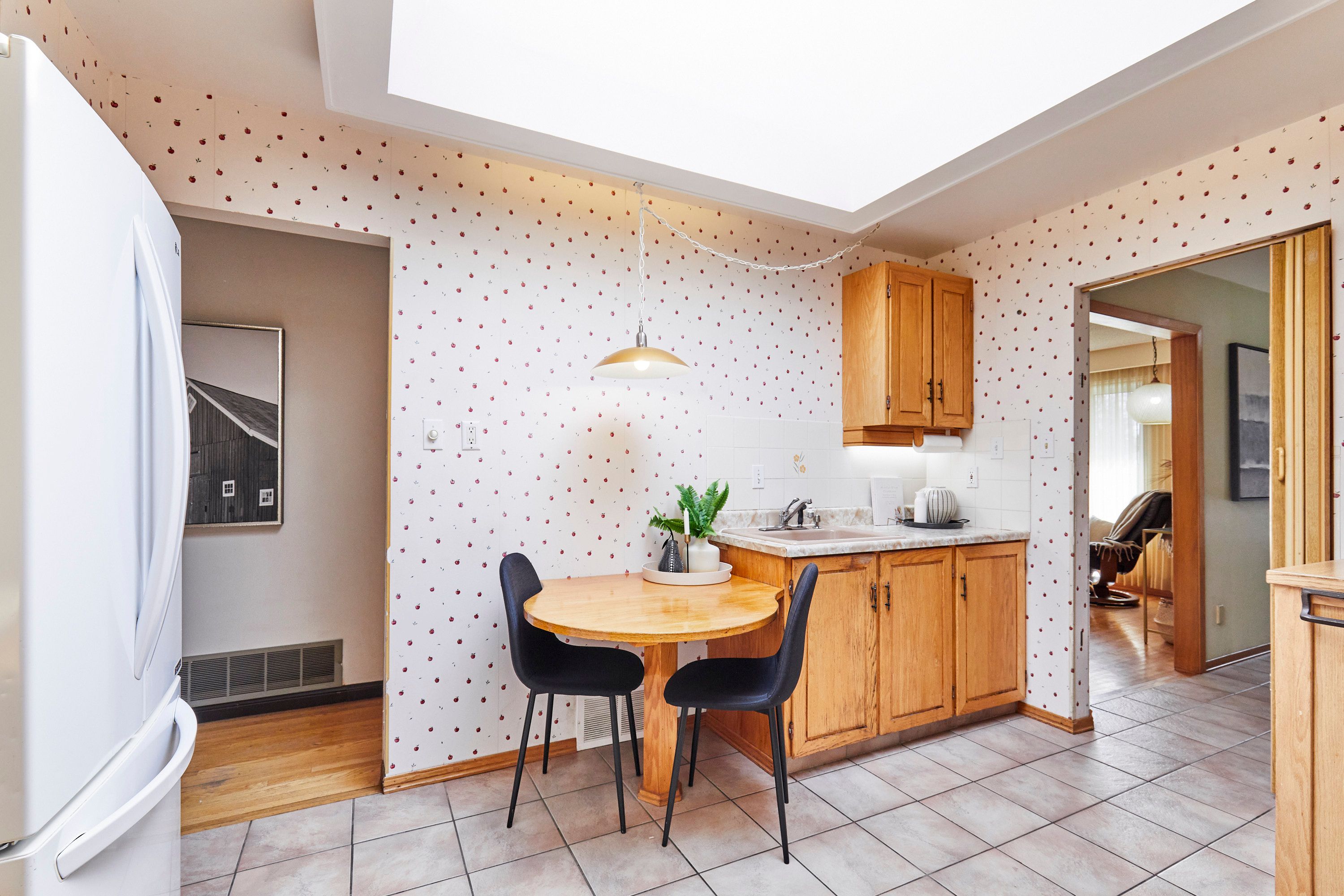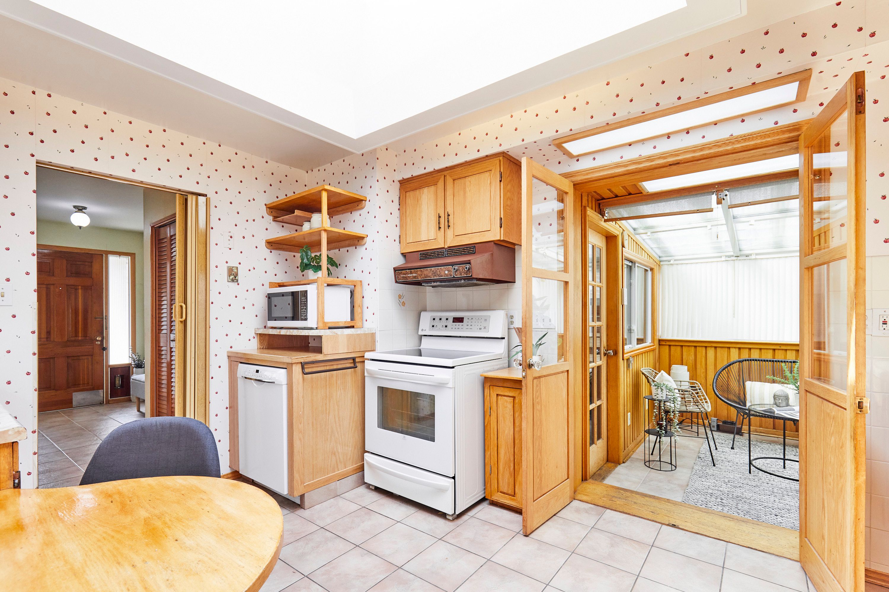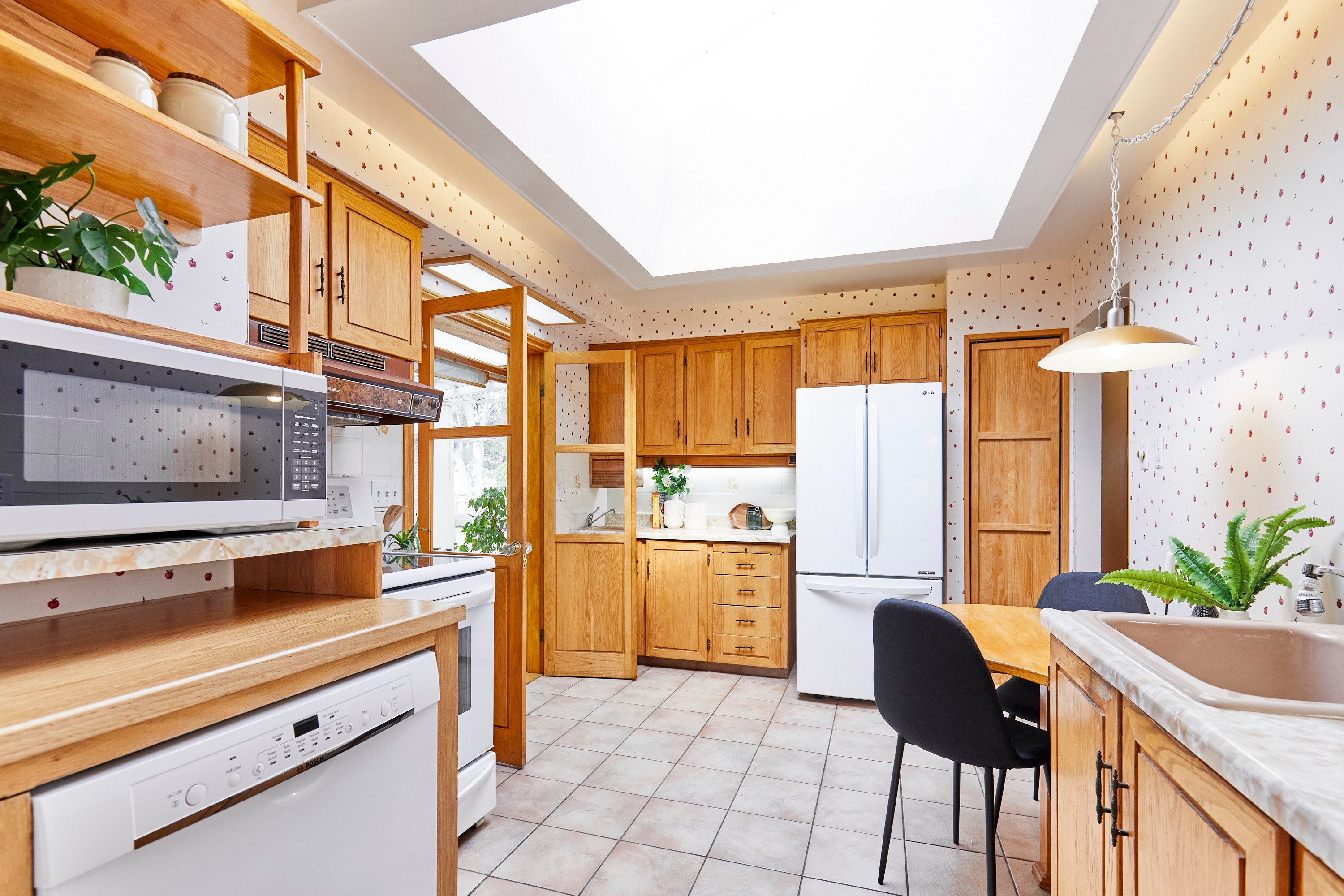 • Eat-in kitchen with skylight and a sunroom overlooking the backyard.