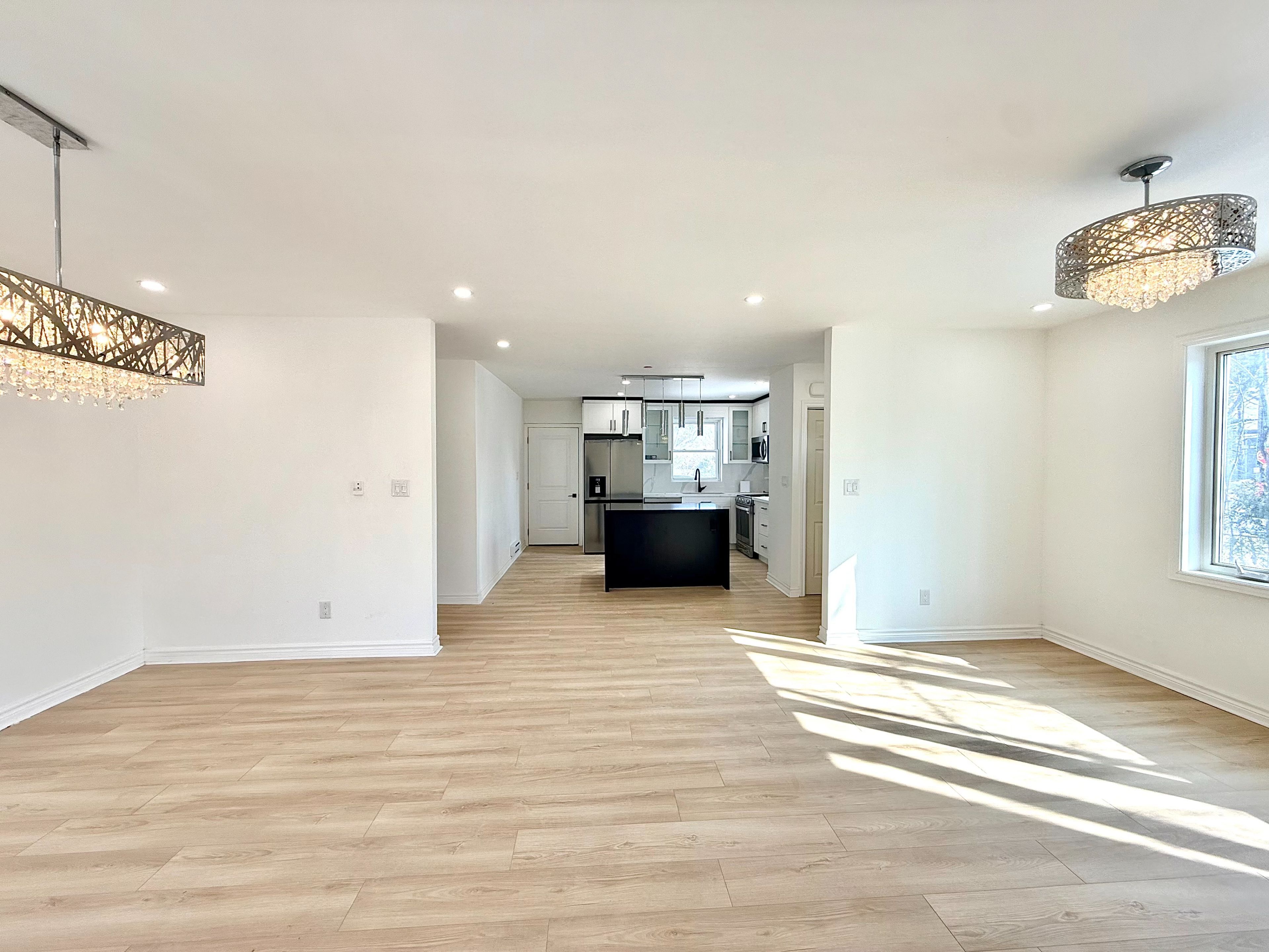 • Open concept living and dining area with new windows and flooring.