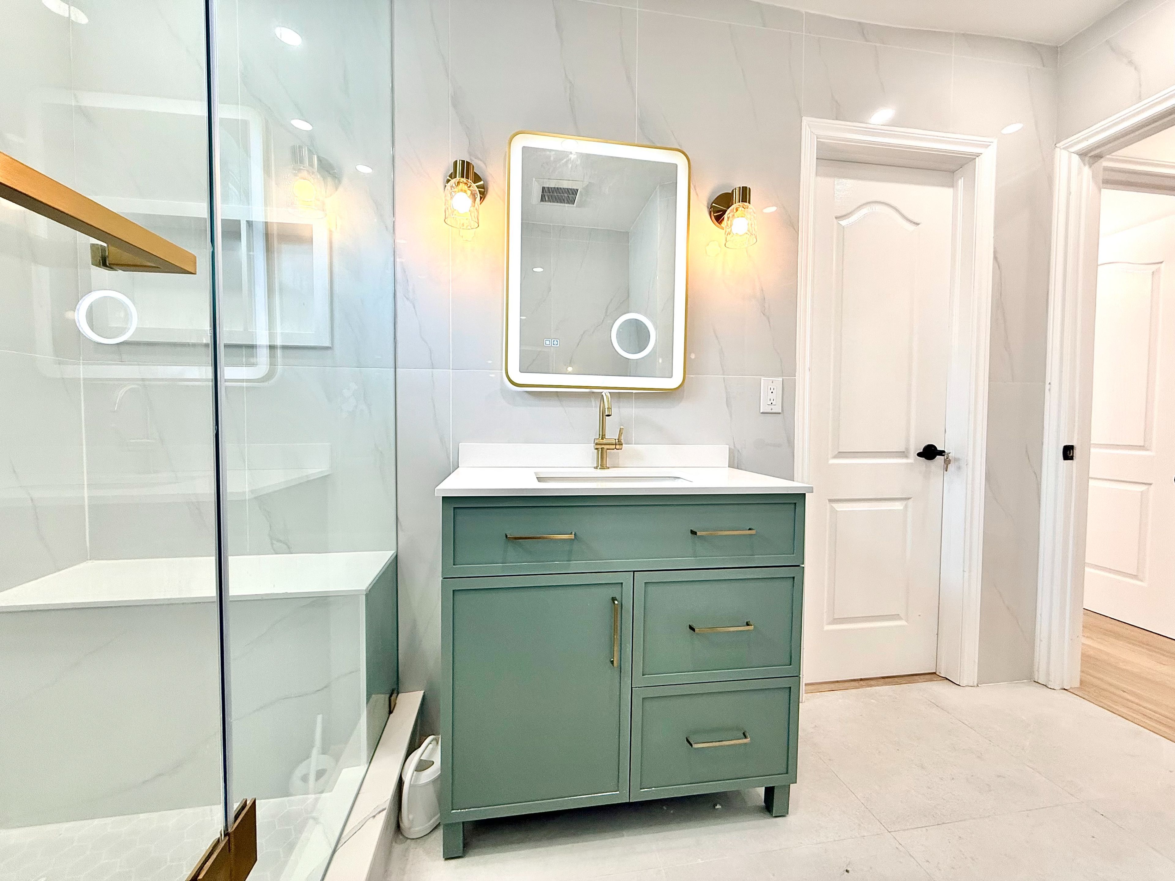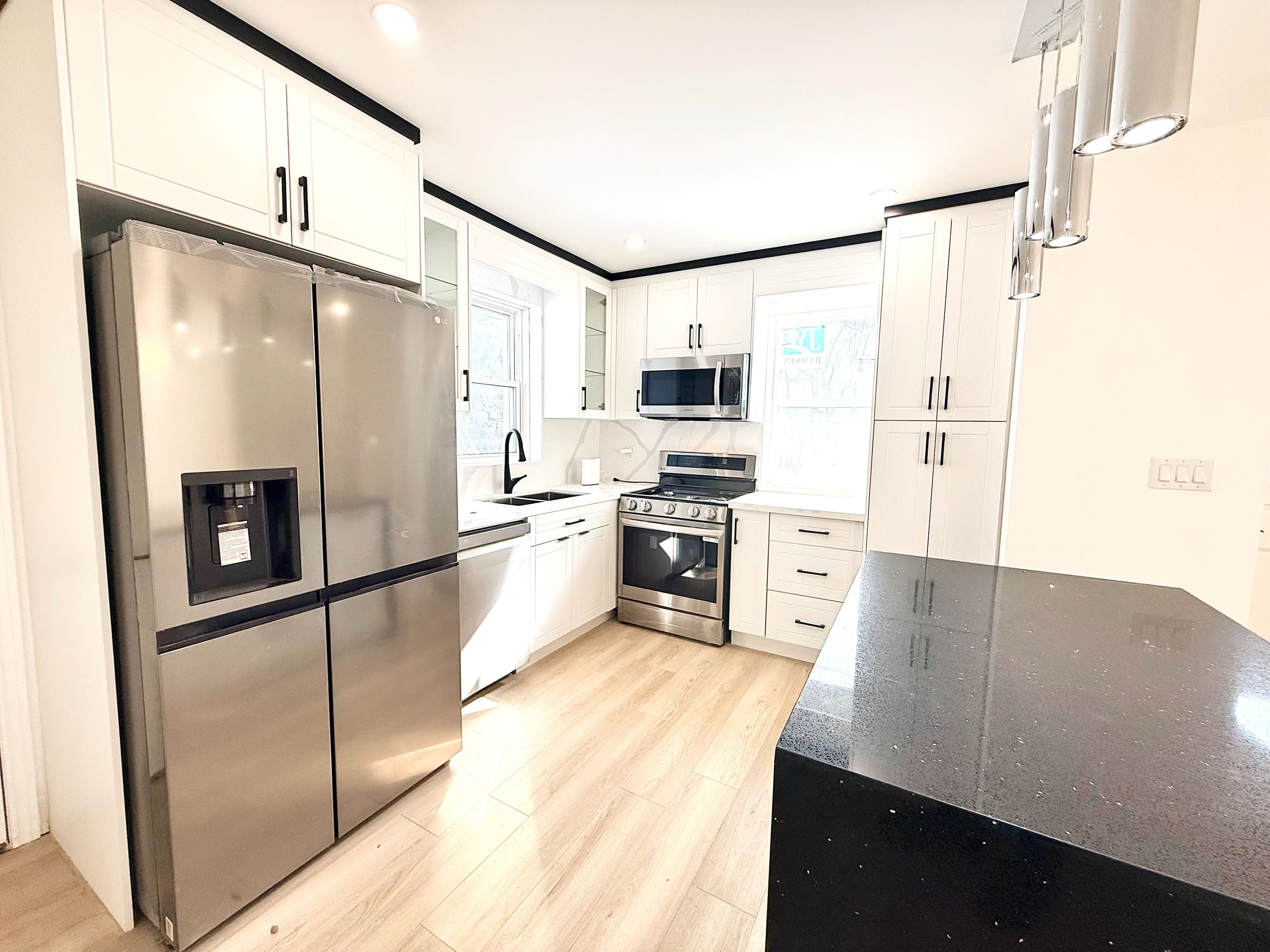 • Brand new kitchen with stainless steel appliances and quartz countertops.