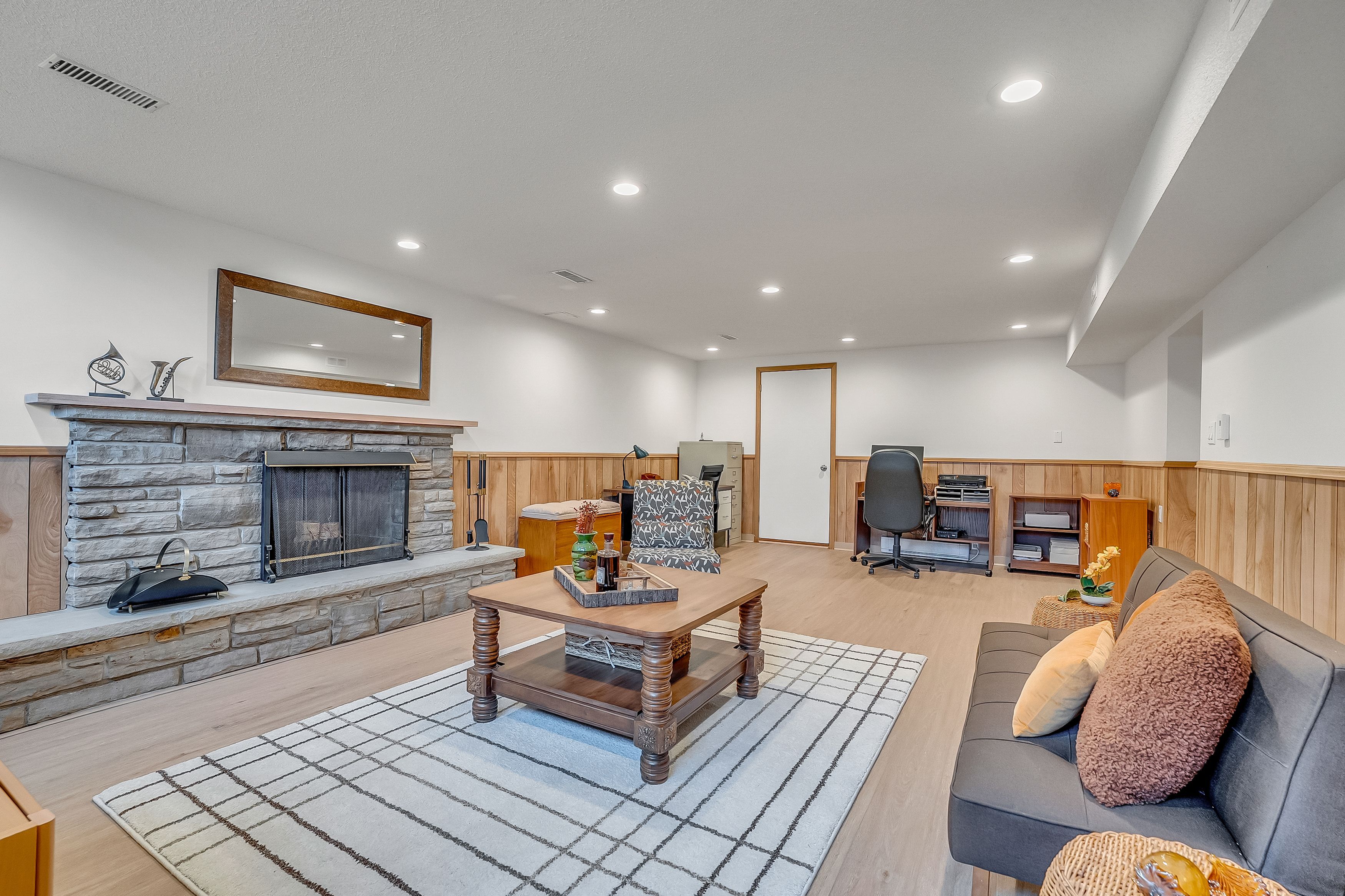 • Finished lower level with versatile recreation room and additional bedroom.