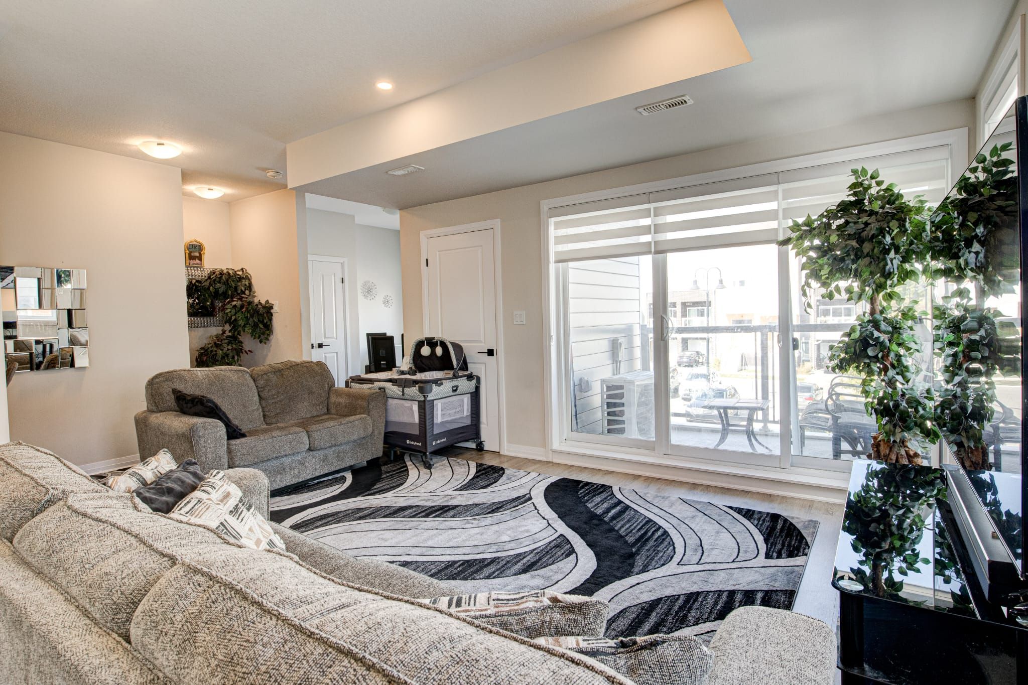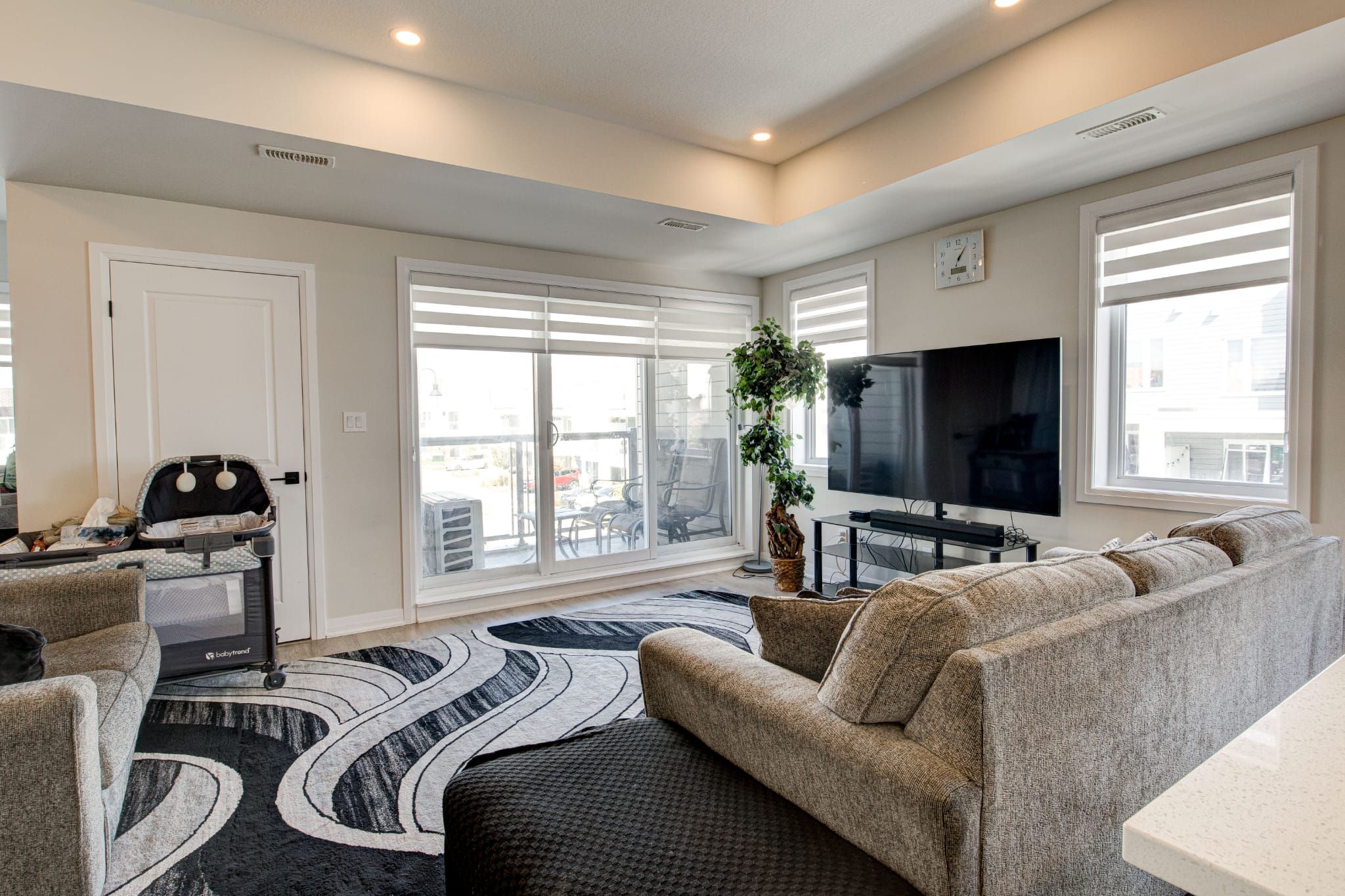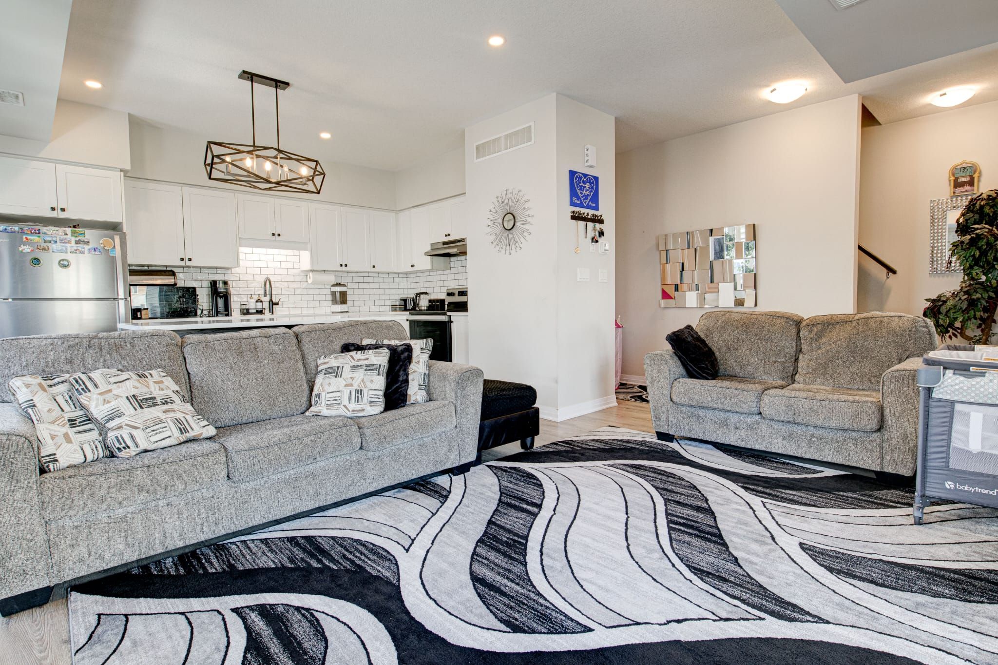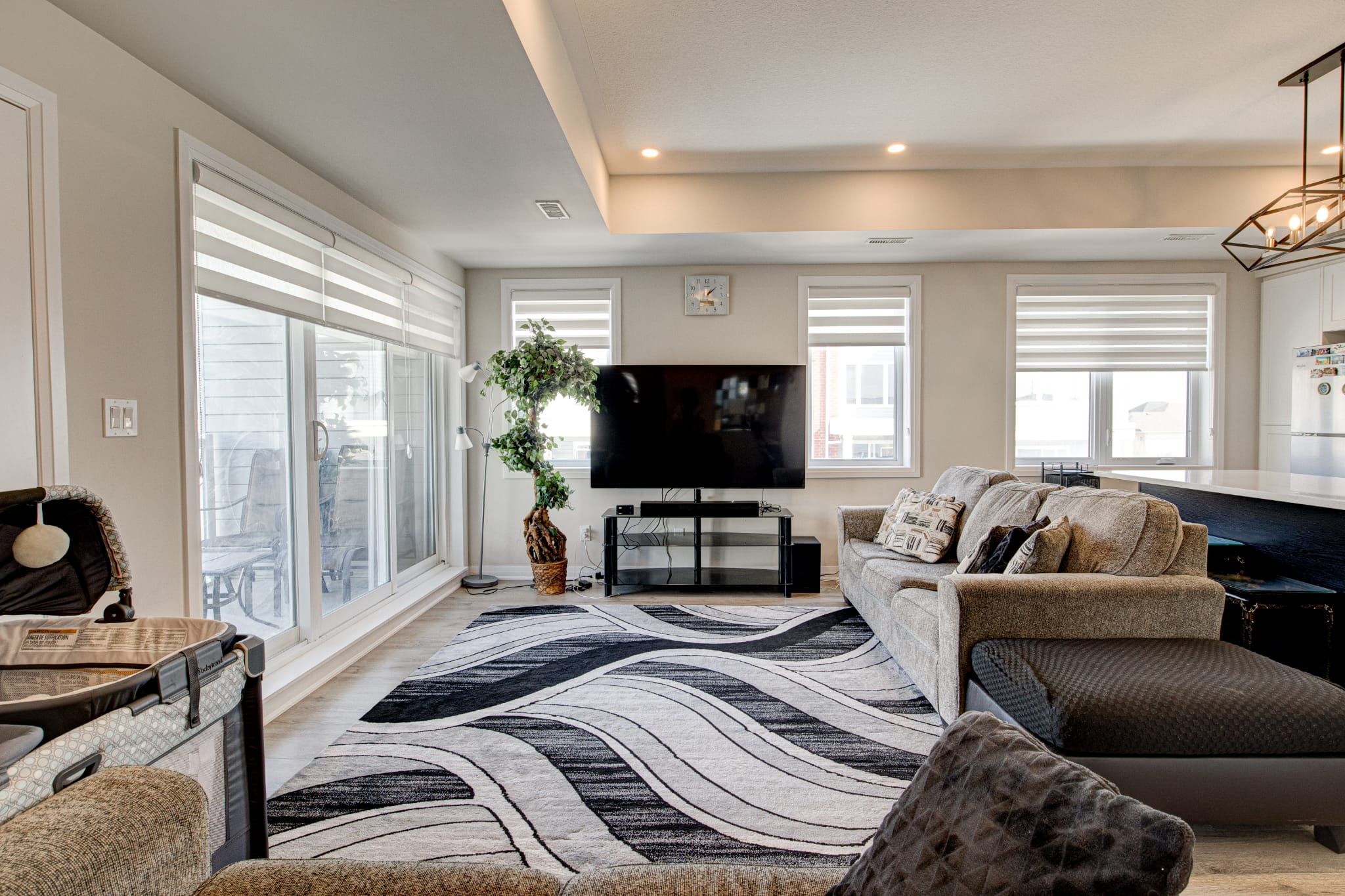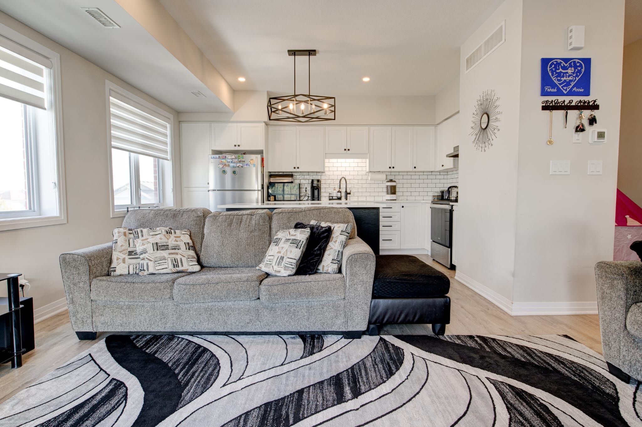 • Expansive open-concept layout with a sun-filled living and dining area.