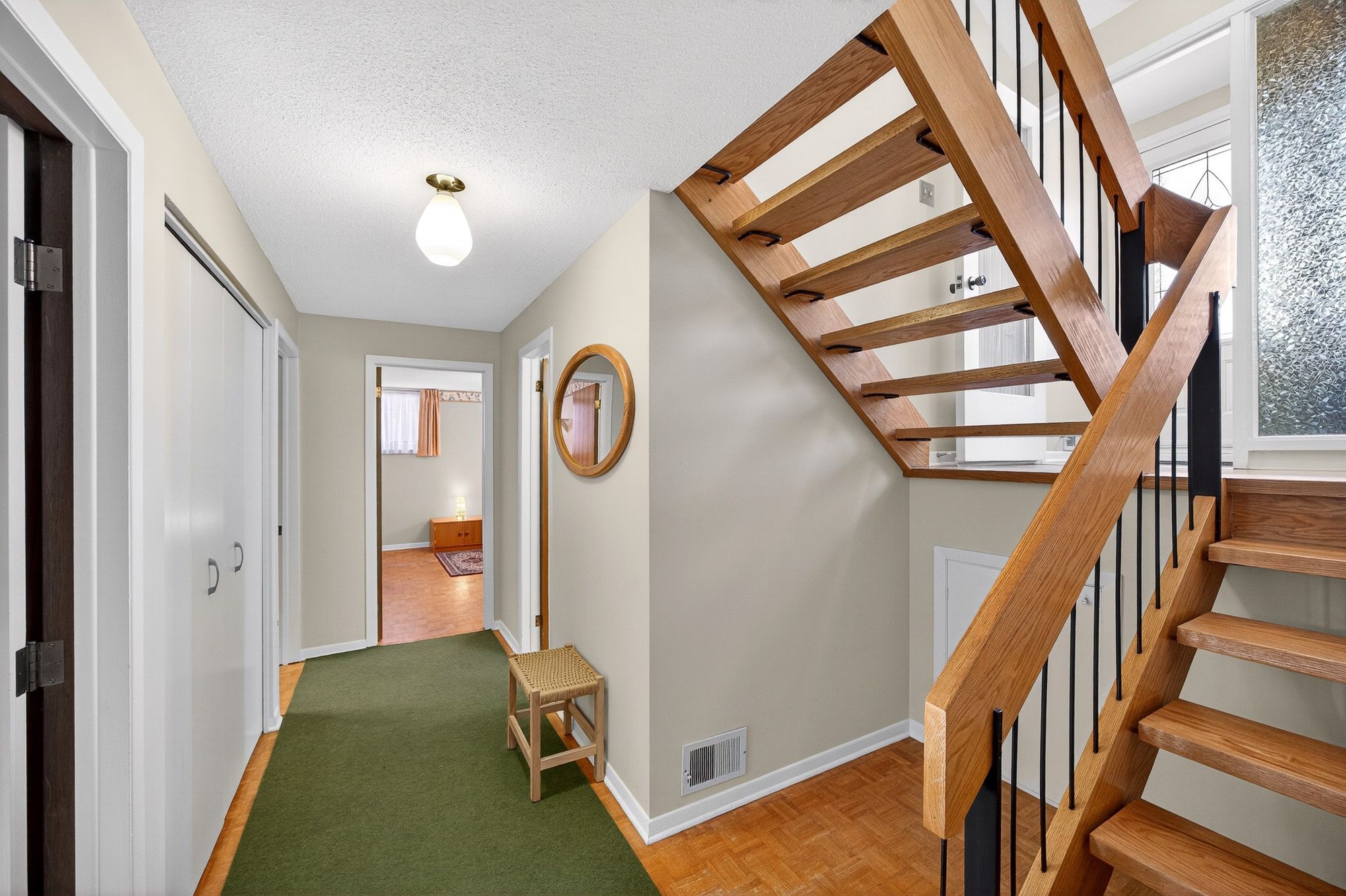 Open house! Sunday feb 8, 2 - 4! This high ranch bungalow is a beautifully maintained 4-bedroom, 3-bath home showcasing mid-century modern design on a quiet street in nepean, featuring a large private driveway, attached garage, & a spacious front entryway that separates the upper & lower levels. The upper level offers generous closet space throughout, including large closets in all three bedrooms, with the primary bedroom featuring an ensuite & the secondary bathroom offering a renovated walk-in shower completed in 2016. Bright and airy living, dining, and kitchen spaces are filled with natural light and feature a stunning wood fireplace set on a gorgeous brick accent wall, plus a balcony off the living room overlooking the neighbourhood. The lower level includes a second large recreation room, a spacious fourth bedroom with double closets, a spacious laundry room with a sink, a versatile workshop/ utility room, & a third bathroom with a new toilet installed in 2020. This level also has interior access to the attached garage (other measurement in room details) . Outside, the home offers a expansive private backyard and storage shed, and the home has many notable upgrades including eavestroughs (july 2021), front steps and driveway (august 2012), two west-facing windows (december 2018), attic insulation (august 2023), hardwood refinishing (2008), & a garage door opener (may 2015). With close proximity to countless parks, stores, restaurants, and the experimental farm, this is the perfect home for anyone looking to set up roots in a lovely community forward neighbourhood! Approx. Monthly costs: hydro $111, heating $98, water $70