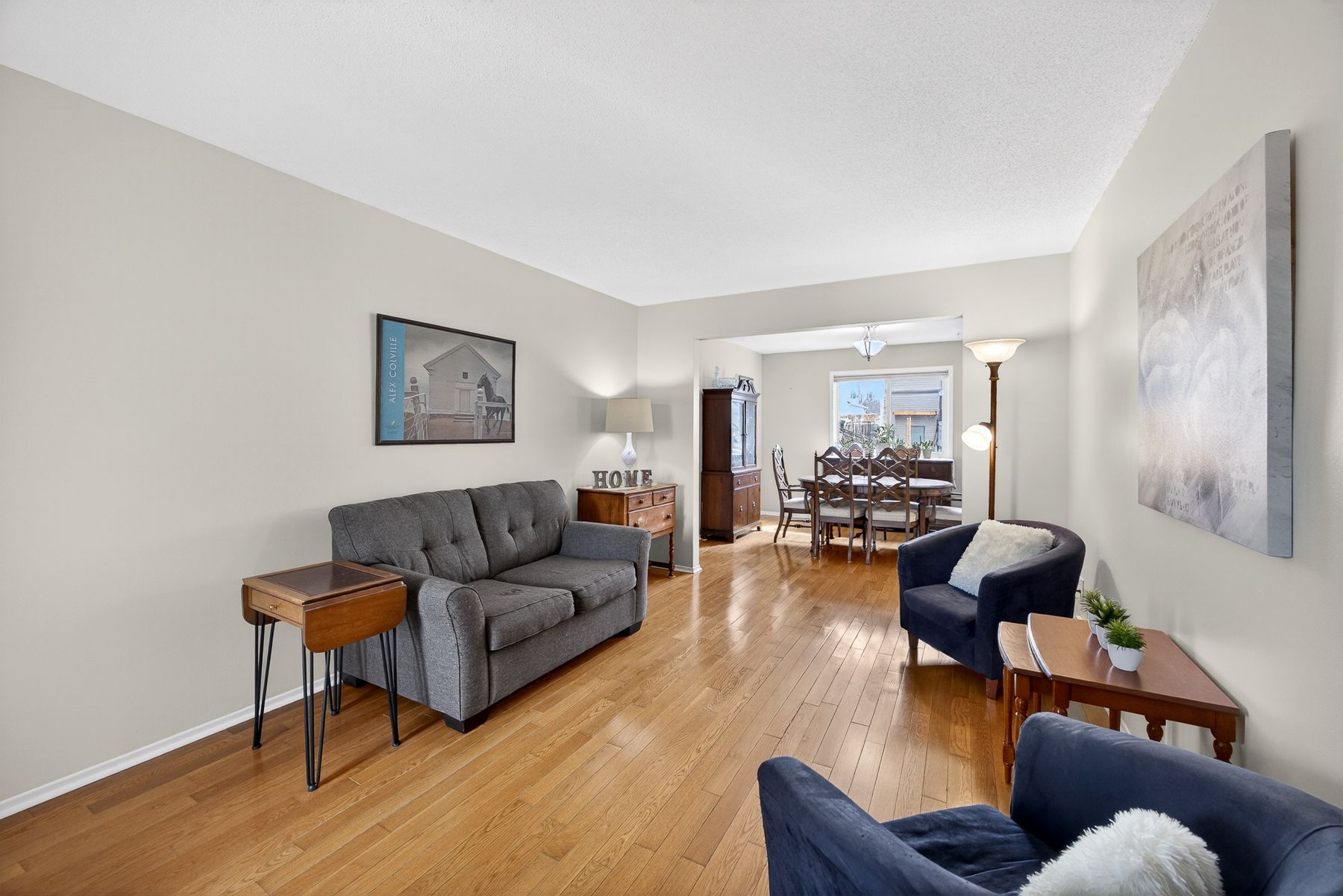 • Warm hardwood flooring enhances the main living spaces throughout the home.