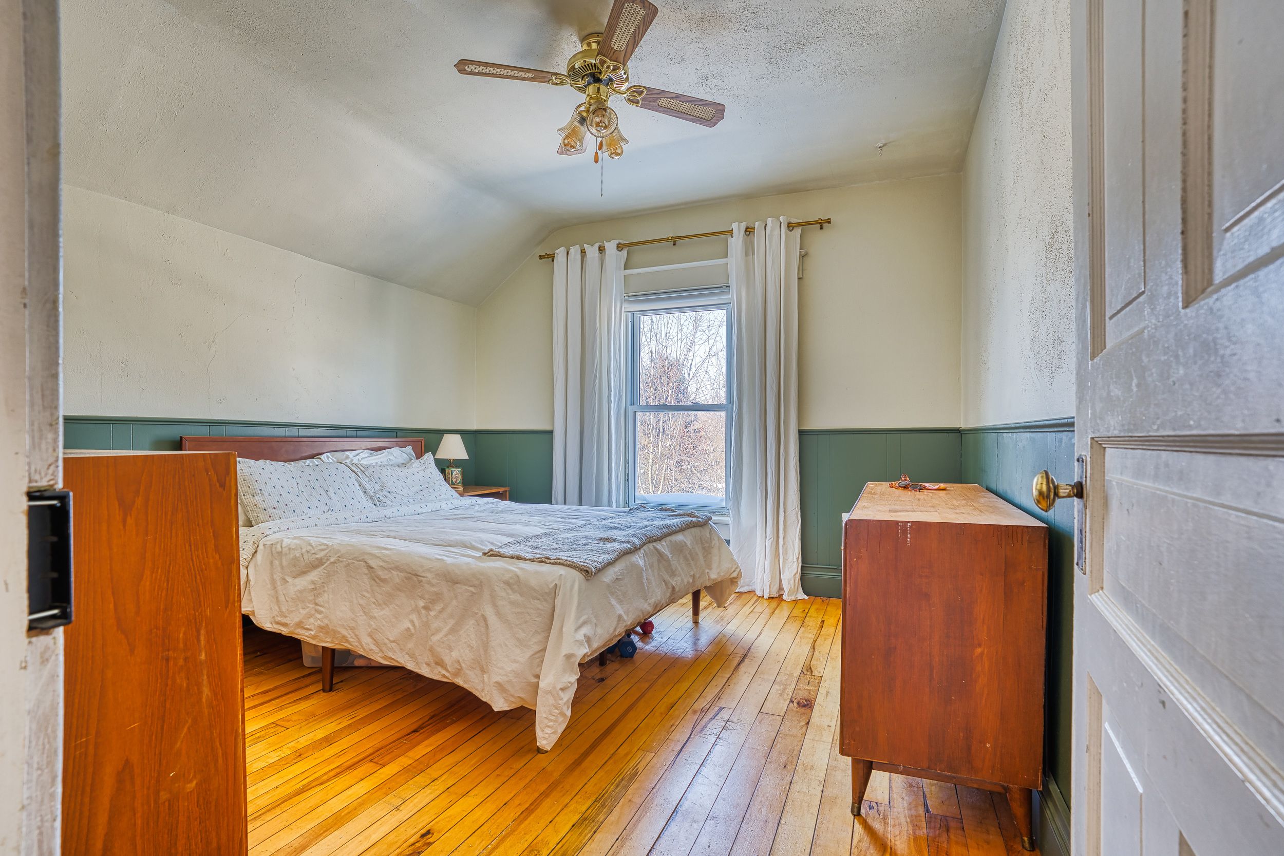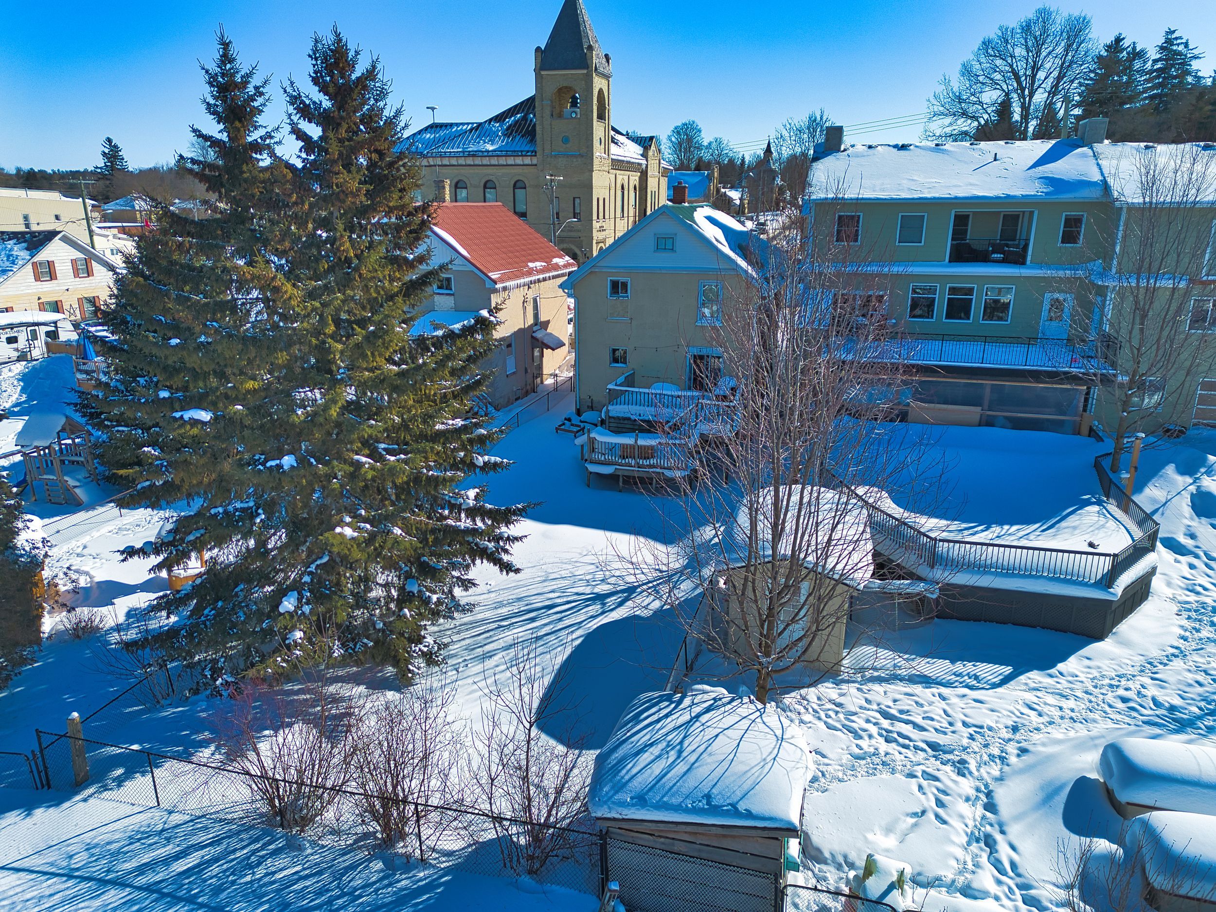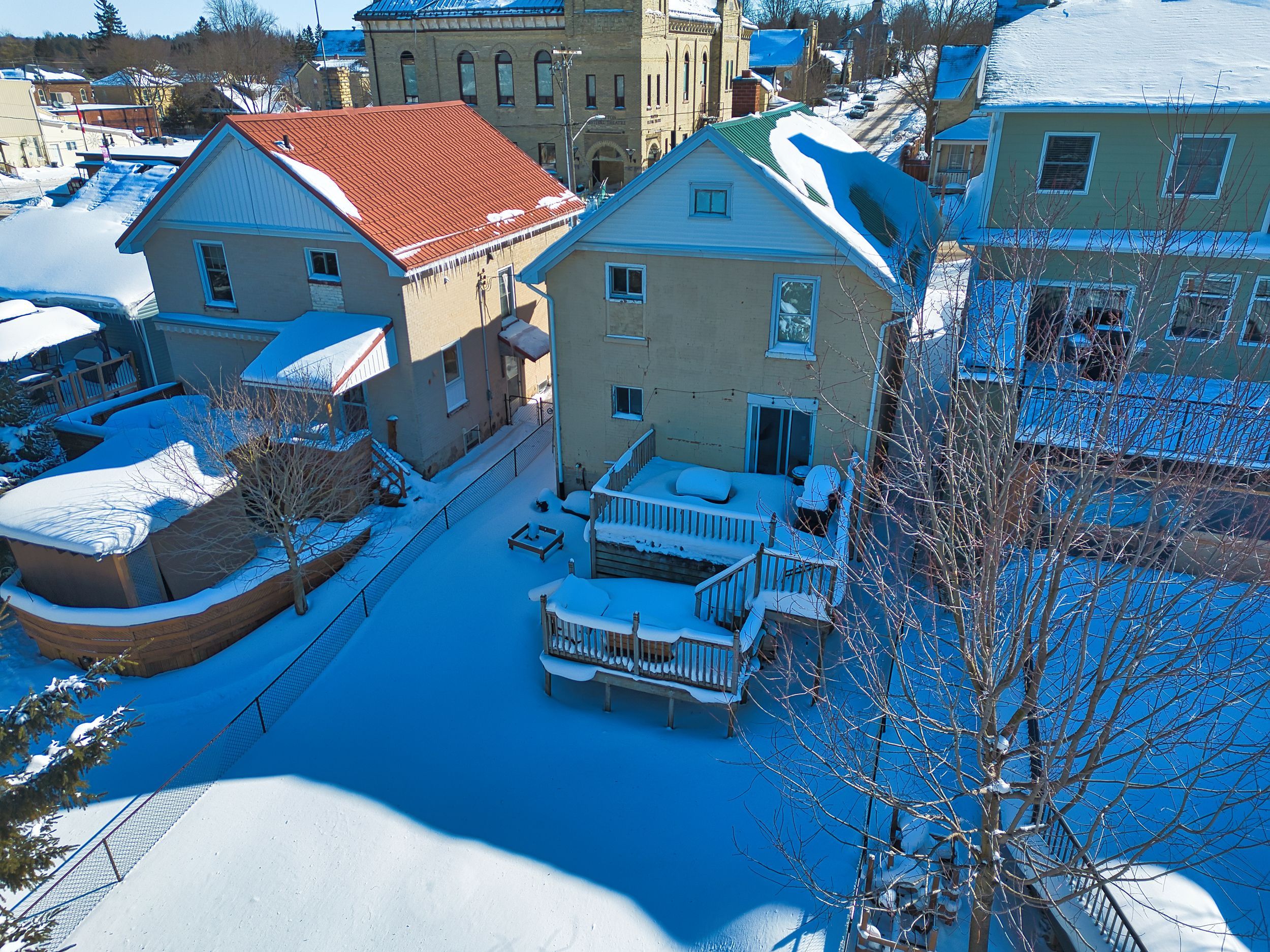 Fall in love with timeless charm in this circa 1910 brick two-storey, where character and comfort meet. Rich hardwood floors, gorgeous original trim, and a cozy living room with gas fireplace create an inviting atmosphere you'll feel the moment you step inside. Offering 3 bedrooms and 1 bathroom, each bedroom features large closets, blending historic charm with everyday practicality. The spacious second-floor bathroom conveniently includes laundry nicely tucked away, making daily living effortless. A fully fenced backyard with a multi-tiered deck sets the stage for summer nights, easy entertaining, weekend bbqs, and quiet morning coffees in the open air. A durable metal roof adds peace of mind. Nestled in the heart of drayton, you're just steps from downtown shops, the theatre, restaurants, schools, parks, and all the small-town charm that makes this community so special. A truly special place to call home.