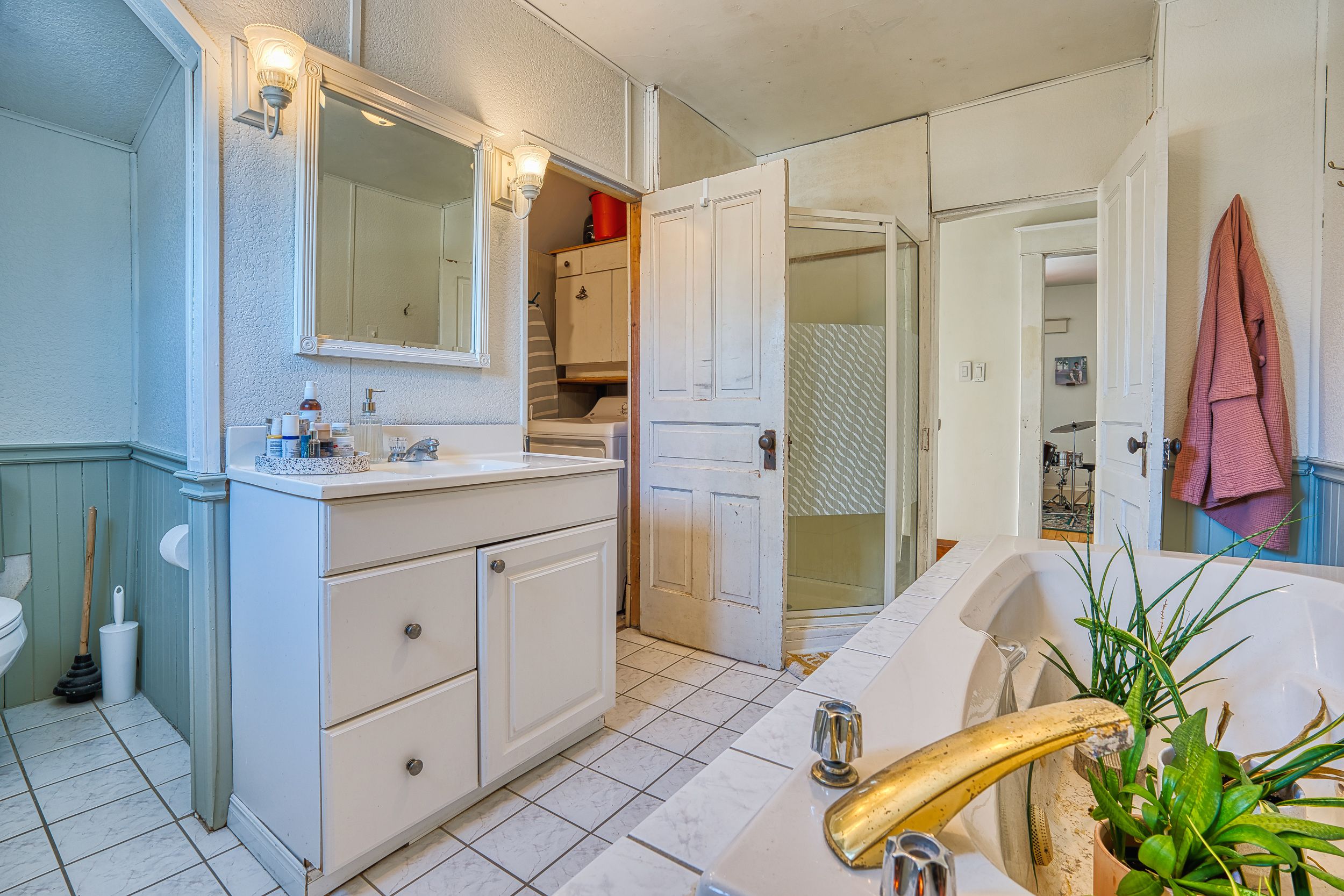• Spacious second-floor bathroom includes conveniently tucked away laundry.