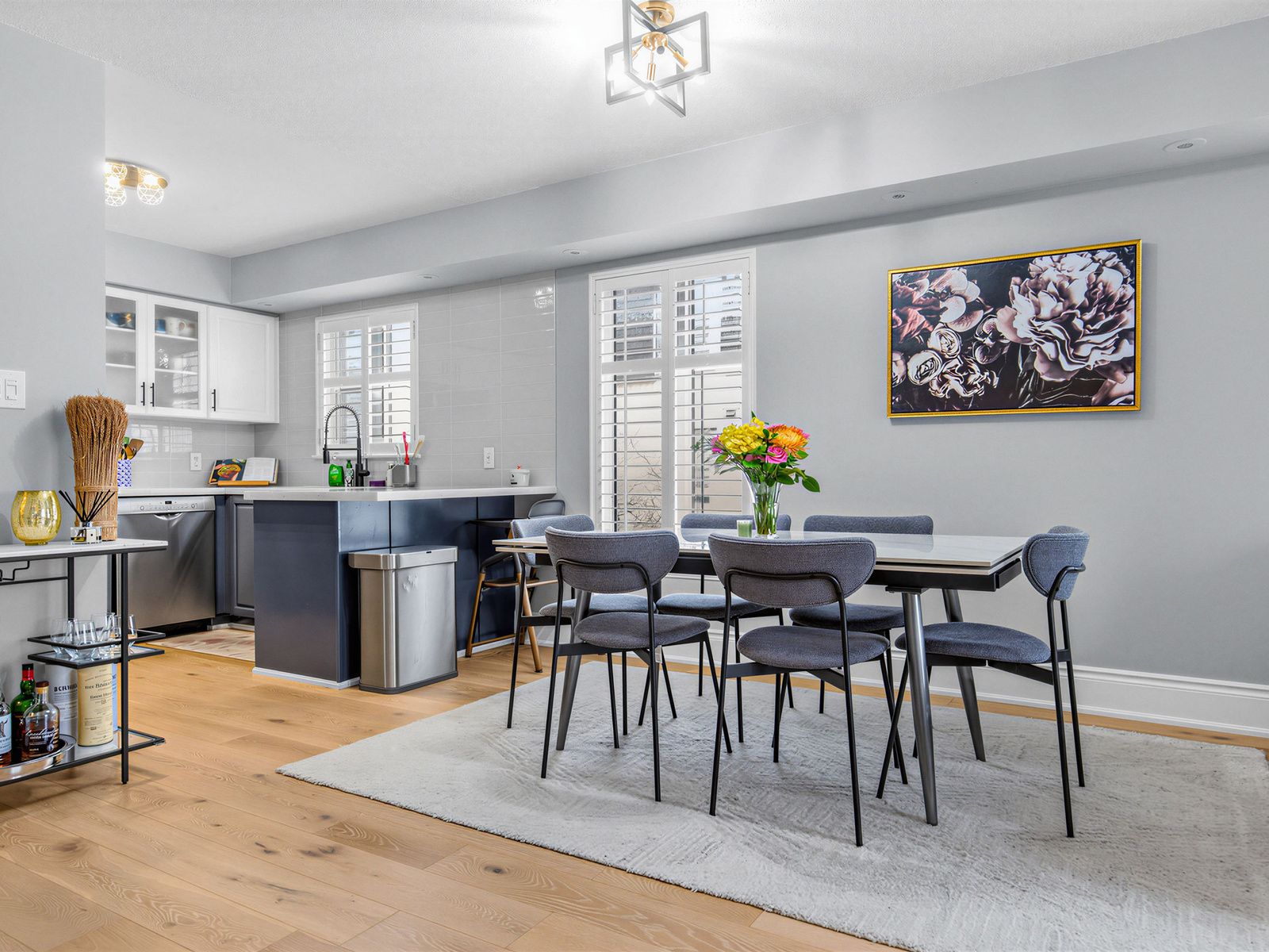 • Bright open-concept kitchen with modern appliances and stylish finishes.