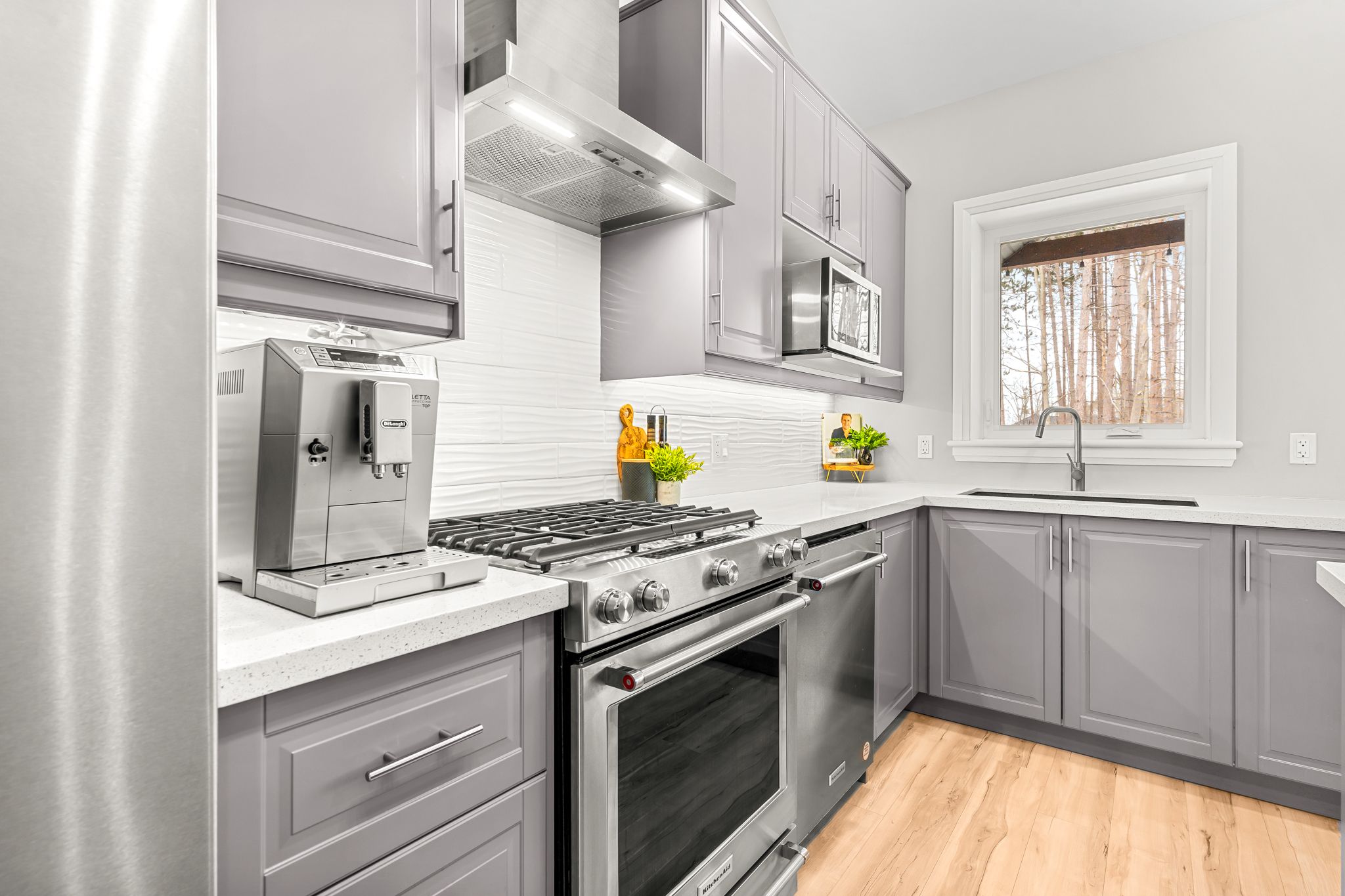 • Gourmet kitchen perfect for entertaining with premium appliances and quartz countertops.