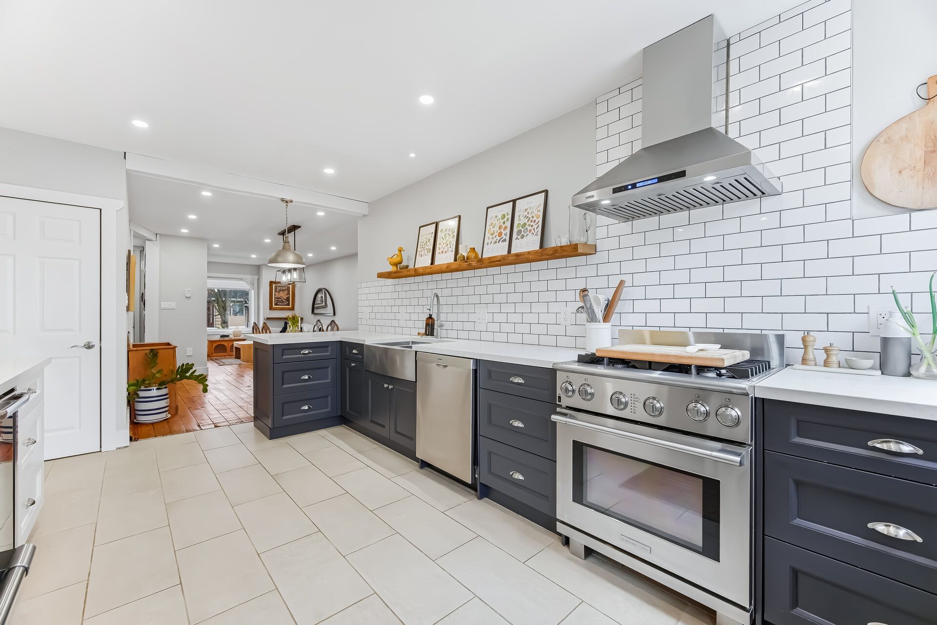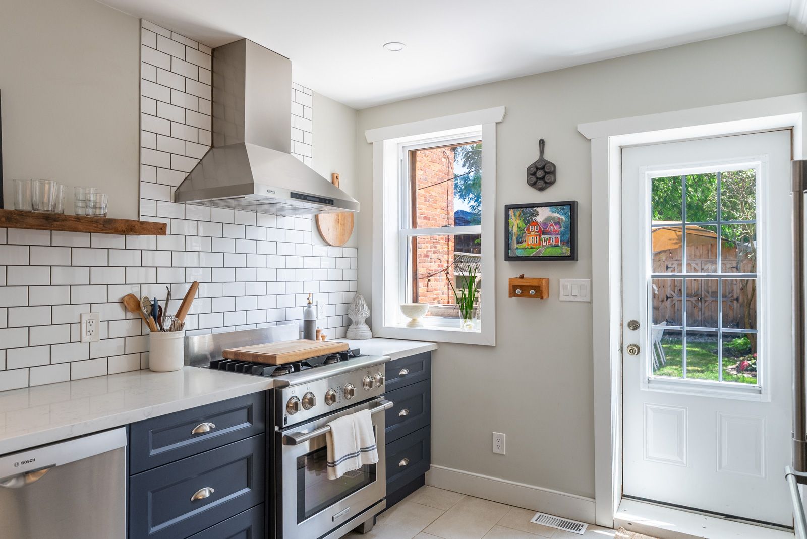• Functional kitchen featuring custom cabinetry and stainless steel appliances.
