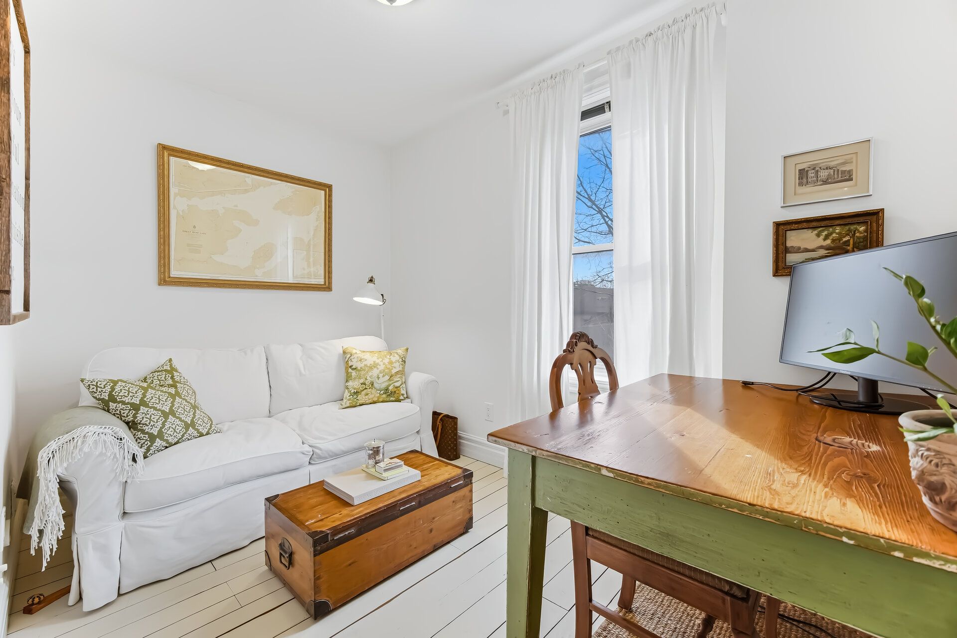 • Bright interiors featuring original hardwood floors and high ceilings.