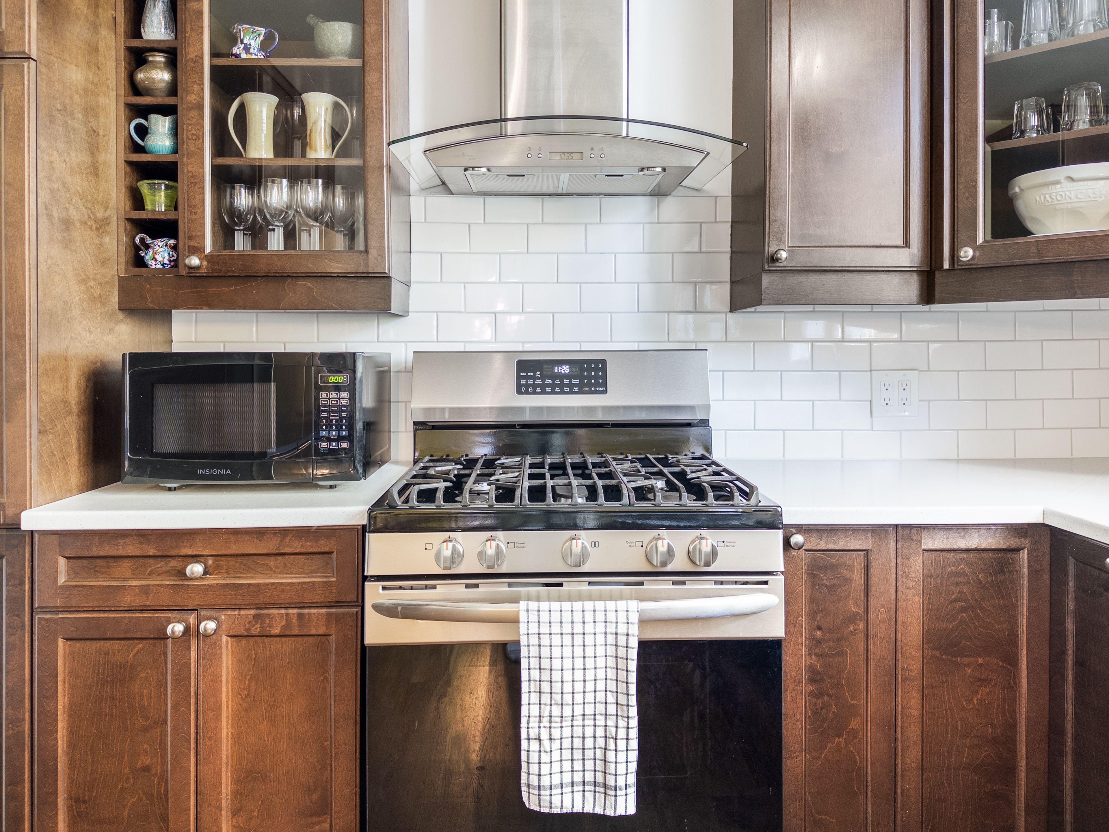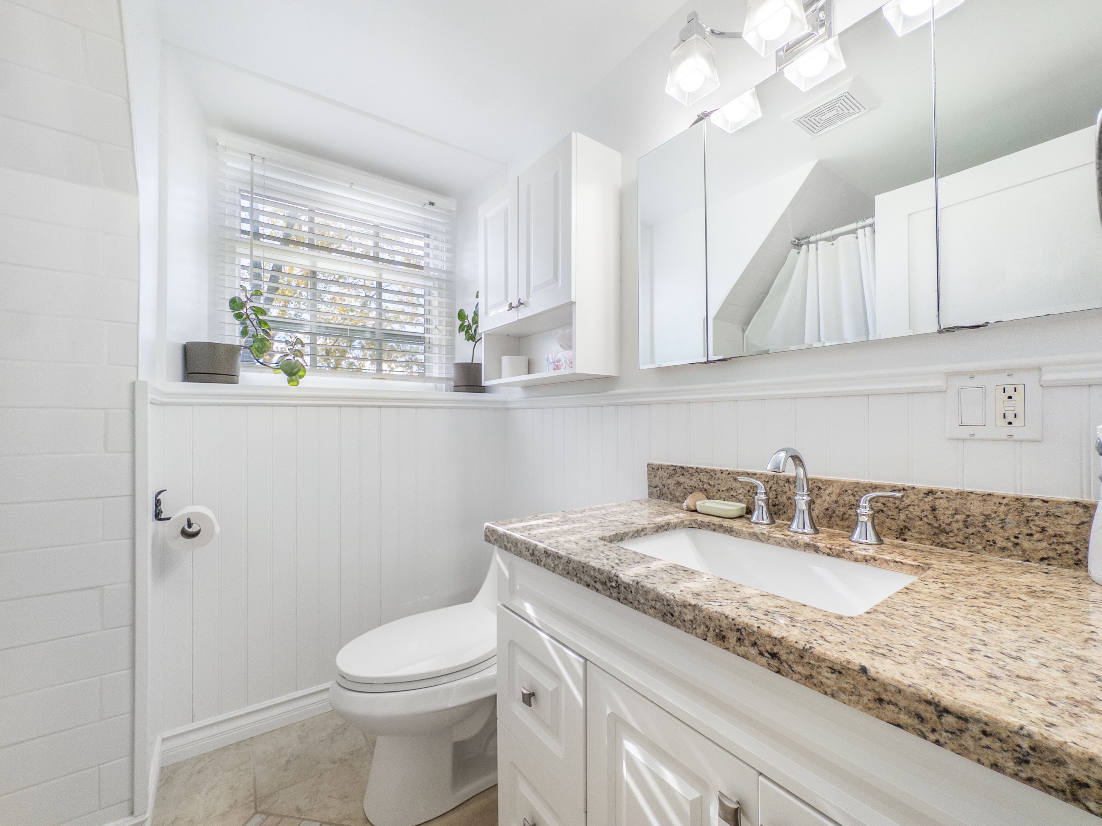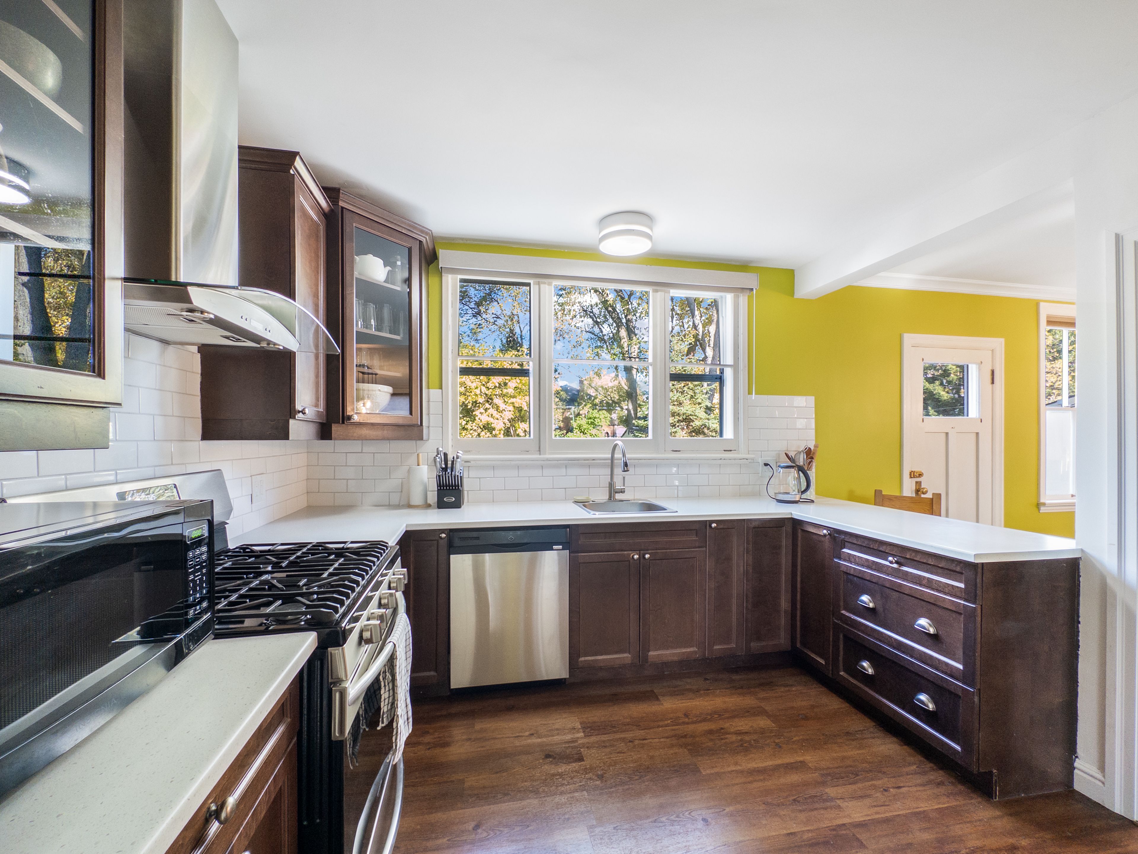 • Updated kitchen with new counters, flooring, and a functional layout.