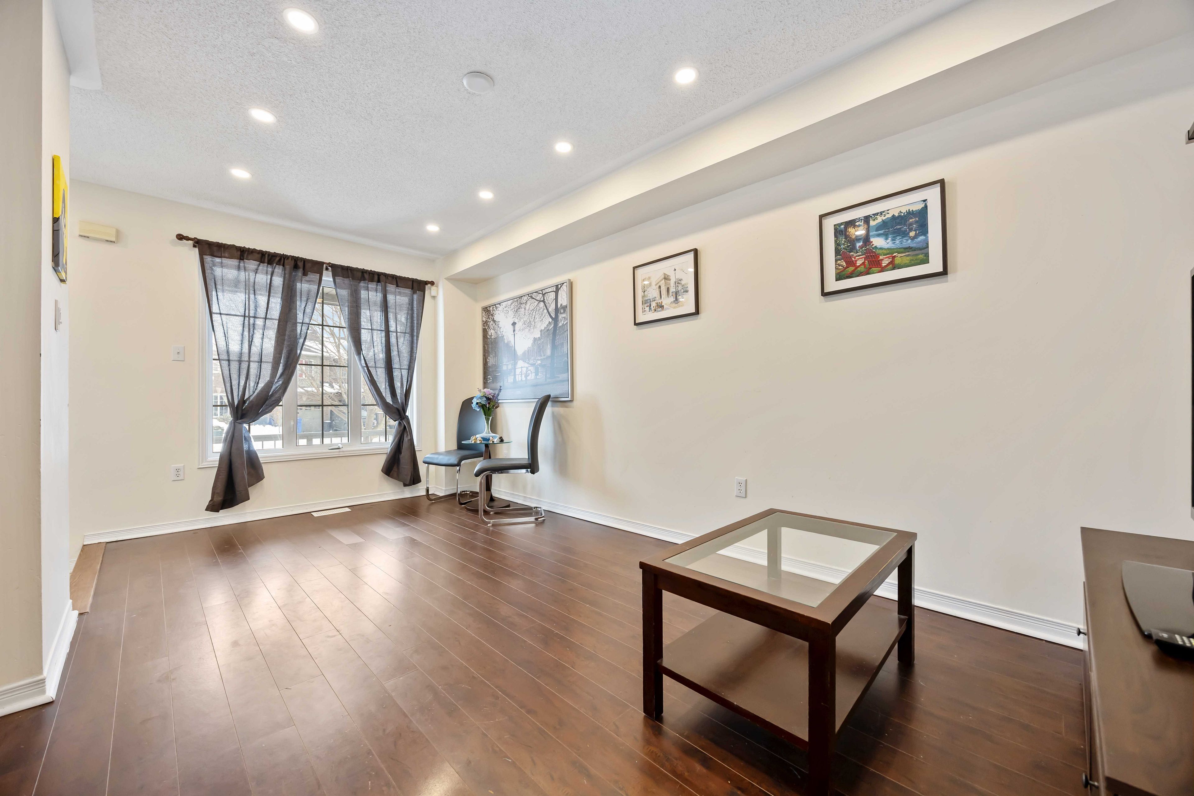 Bright freehold townhouse. No maintenance fees!!! High demand location. Functional layout, spacious bedrooms. Laminate floors on main and 2nd floors. Pot lights through out main floor. Stainless steel appliances. Smart thermostat. Finished flex room in basement with window. Additional access to backyard from garage. Steps to shopping, restaurants, parks, schools and more. Minutes to upper canada mall. Easy access to hwy 404 and go train.