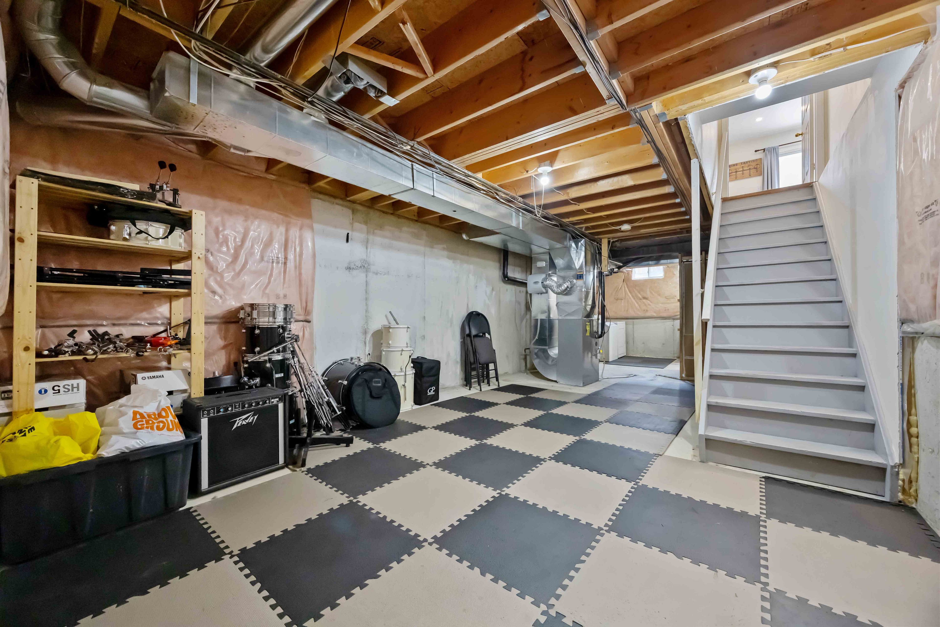 • Finished basement flex room provides extra living space with natural light.