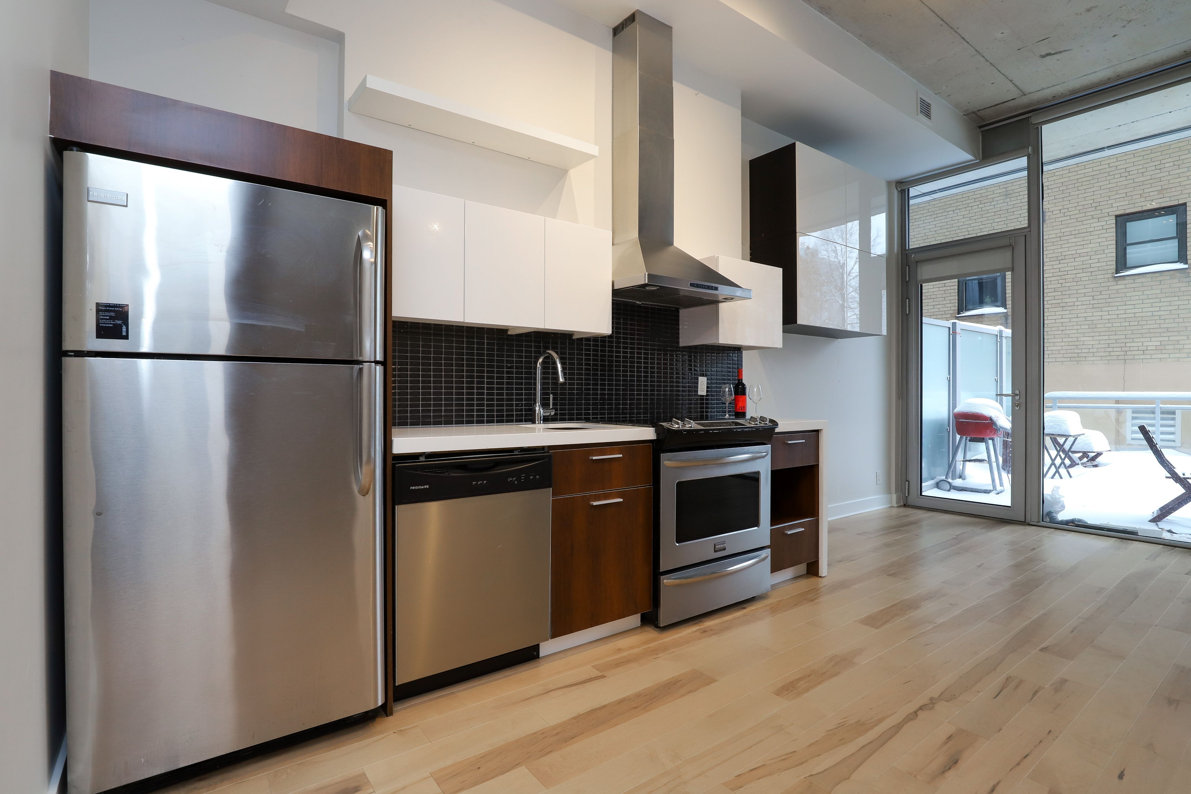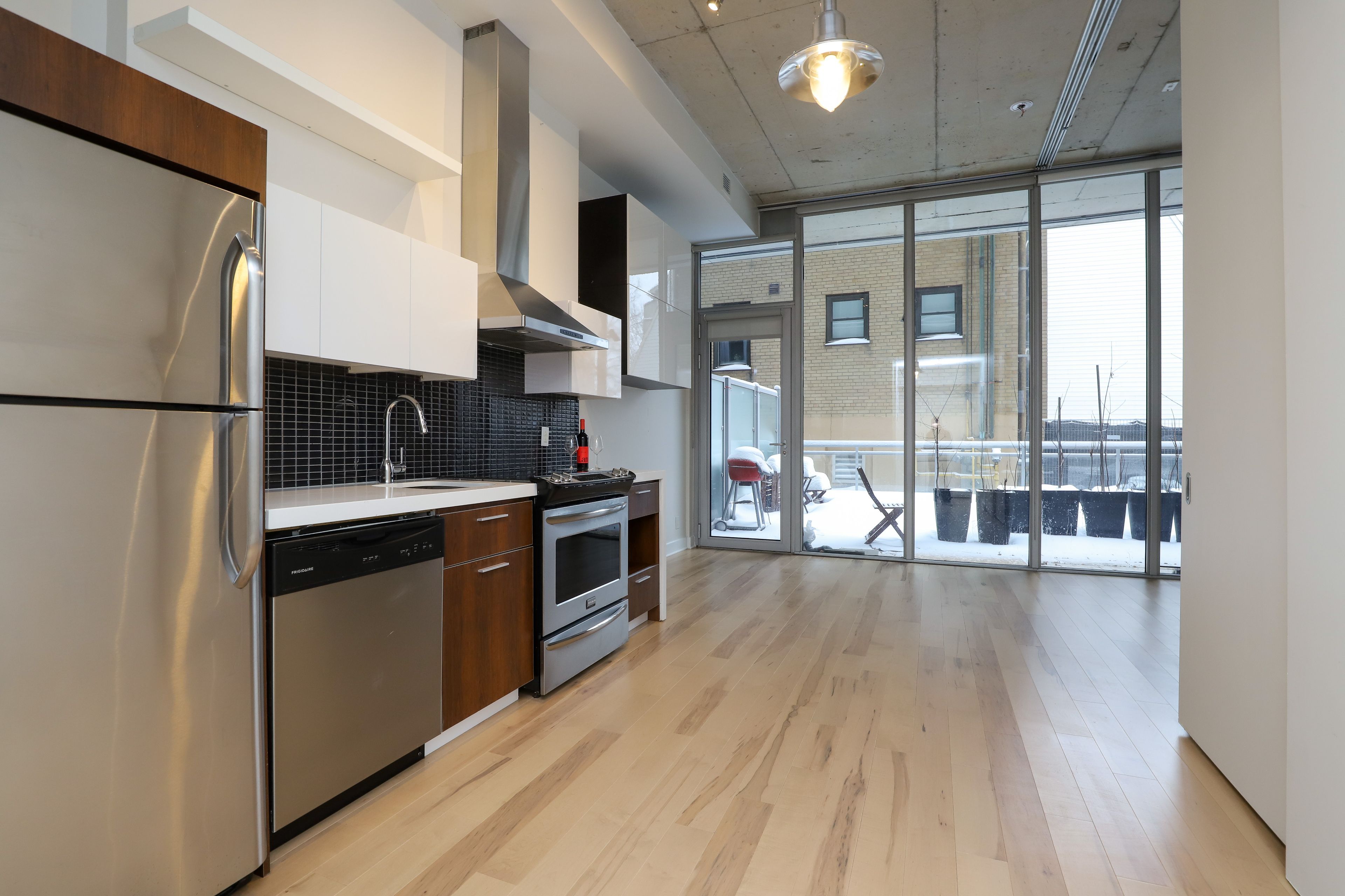 Nothing beats renting in one of the city's most sought-after central locations. Welcome to fabulous urban living in this one-bedroom plus true den at the hideaway condos by urban capital. This bright, open-concept suite features high ceilings, floor-to-ceiling windows, and abundant natural light throughout. The modern kitchen features stainless steel appliances, complemented by brand-new hardwood flooring throughout the unit. Conveniently located on the first floor, this suite boasts an exceptionally large private terrace-nearly 350 sq. Ft.-perfect for outdoor dining and entertaining. It's like having an extra living space for six months of the year. Enjoy access to excellent building amenities, plus the added convenience of a storage locker. Ideally situated steps to the glebe, the rideau canal, lcbo, and all the best of downtown living.