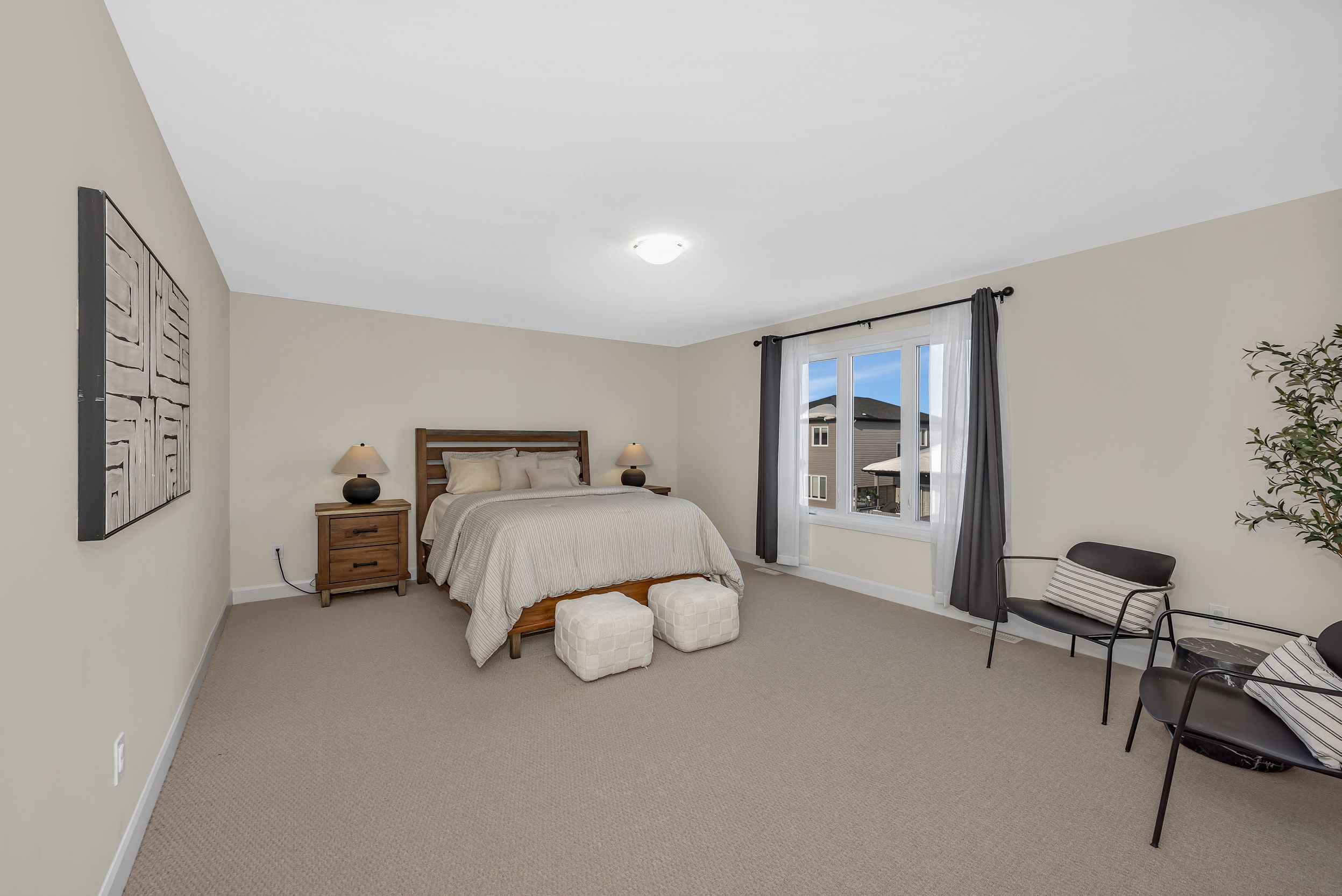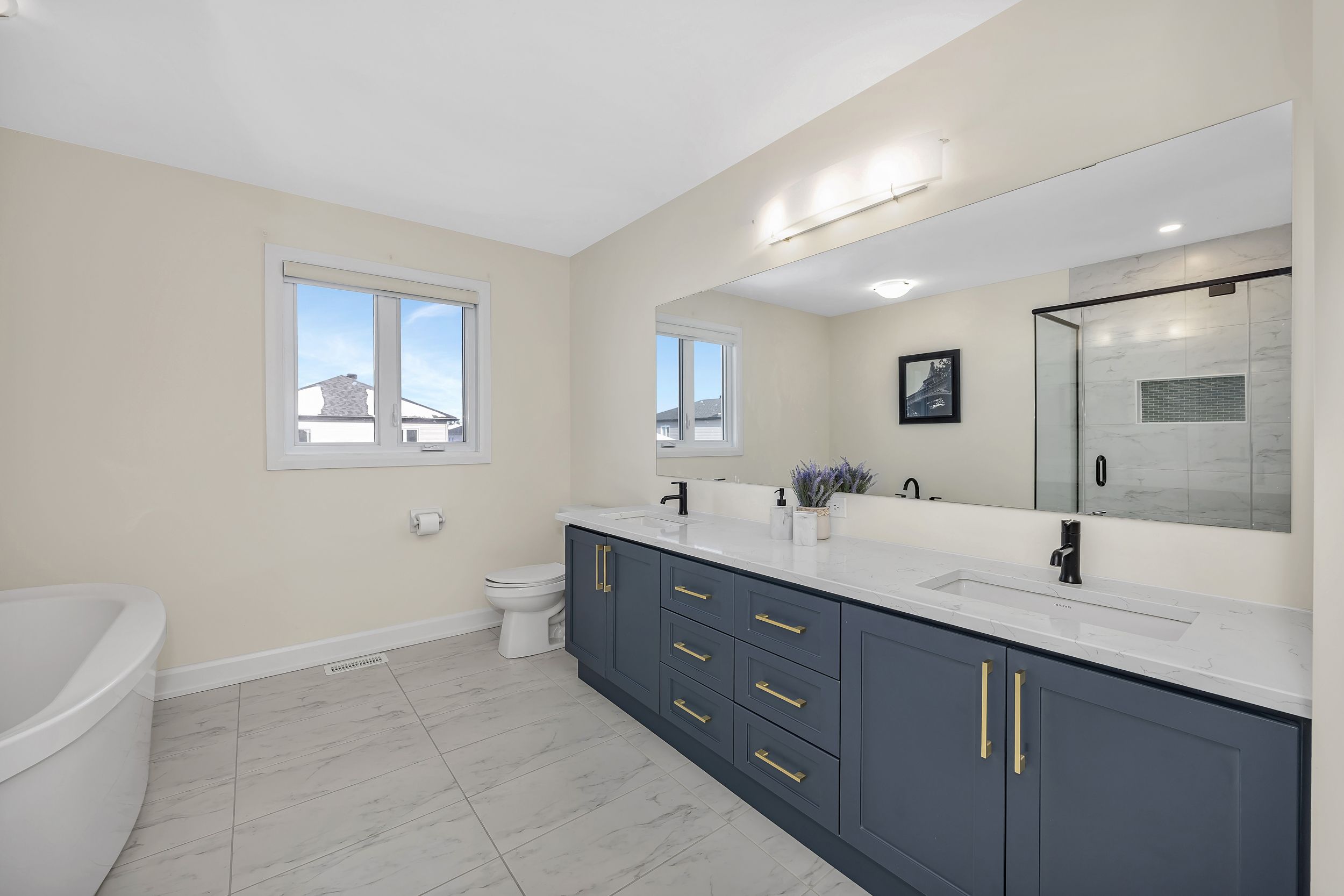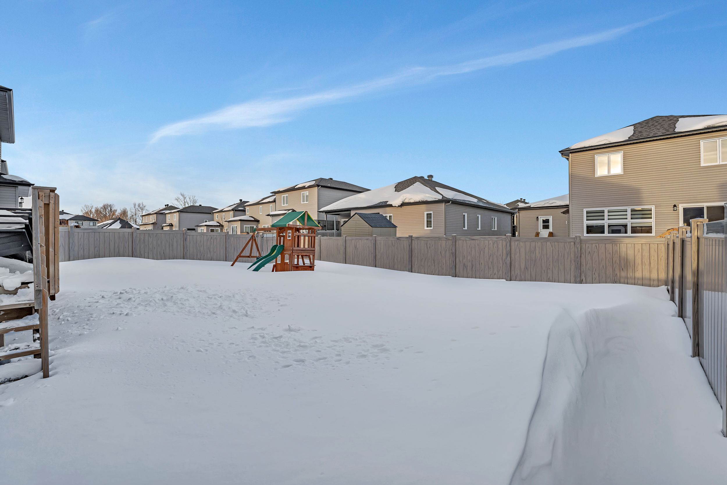 *oh sunday march 29 2-4pm* welcome to this stunning lincolnshire ii model by melanie, thoughtfully upgraded to offer exceptional space, comfort, and style for modern family living. A bright tiled entrance welcomes you into a main floor featuring light hardwood throughout, smooth ceilings, potlights and a private office with glass french doors. The show-stopping kitchen boasts crisp white cabinetry, quartz countertops, a subway tile backsplash, stainless steel appliances, and a spacious walk-in pantry. A large island with contrasting cabinetry and seating for four makes it perfect for everyday living and entertaining. The builder-extended living room offers additional space to gather, complete with pot lights, custom built-in cabinetry, and a natural gas fireplace with stone surround. A convenient main-level powder room adds functionality. A hardwood staircase with decorative metal railing leads upstairs which offers four spacious bedrooms, each secondary bedroom featuring its own walk-in closet. The main bath includes modern fixtures, tiled flooring, and a tub/shower combination. A full laundry room with cabinetry, sink, folding counters, and ample drying space adds everyday convenience. The primary suite is a retreat with larger windows, a generous walk-in closet, and a luxurious ensuite with his-and-her sinks, quartz counters, a glass-enclosed shower, freestanding soaker tub, and linen closet. The finished basement includes a bedroom, full bath, recreation room, and ample storage. Outside, enjoy a fully fenced yard with play structure, ready for your personal touch.