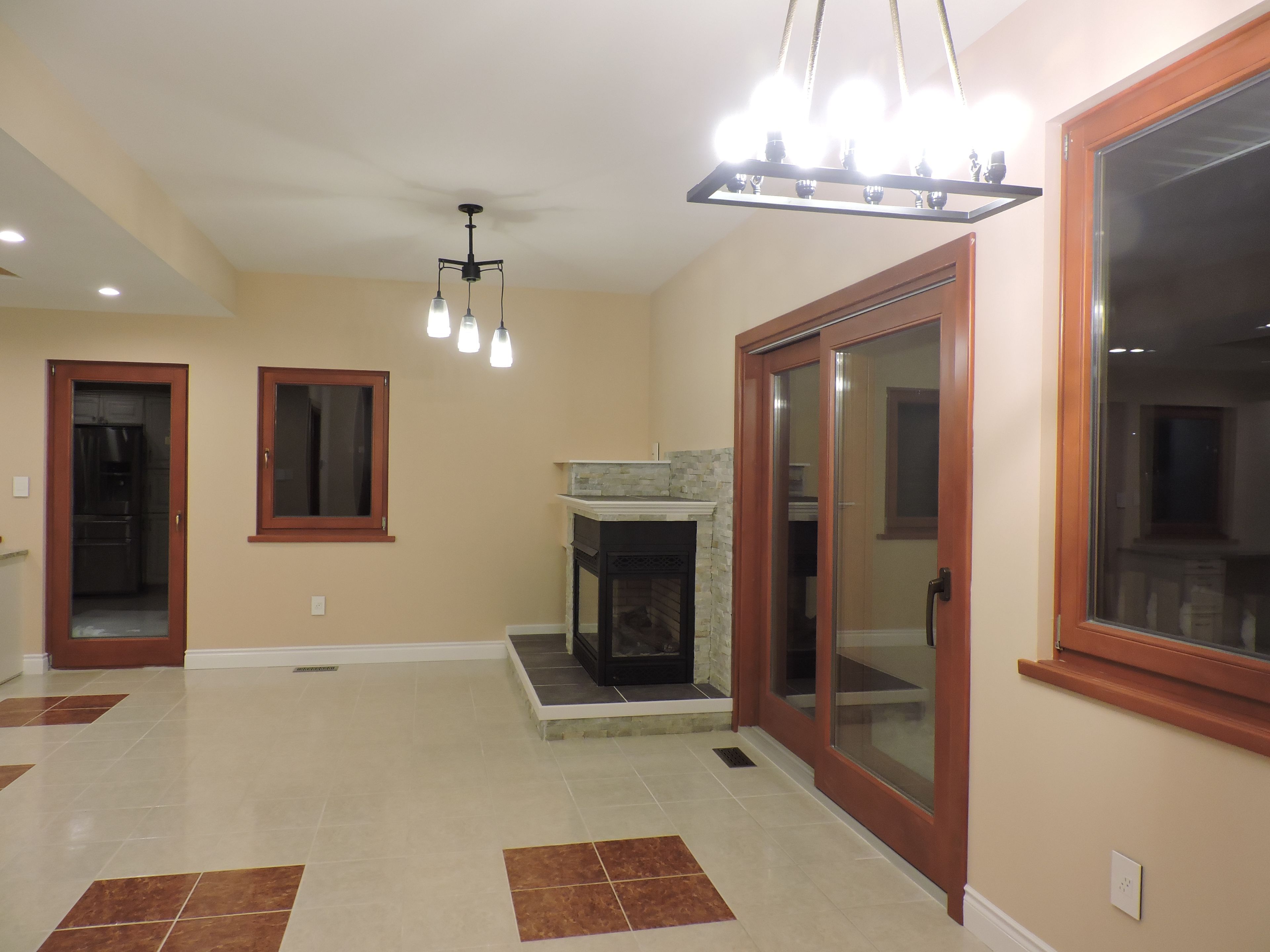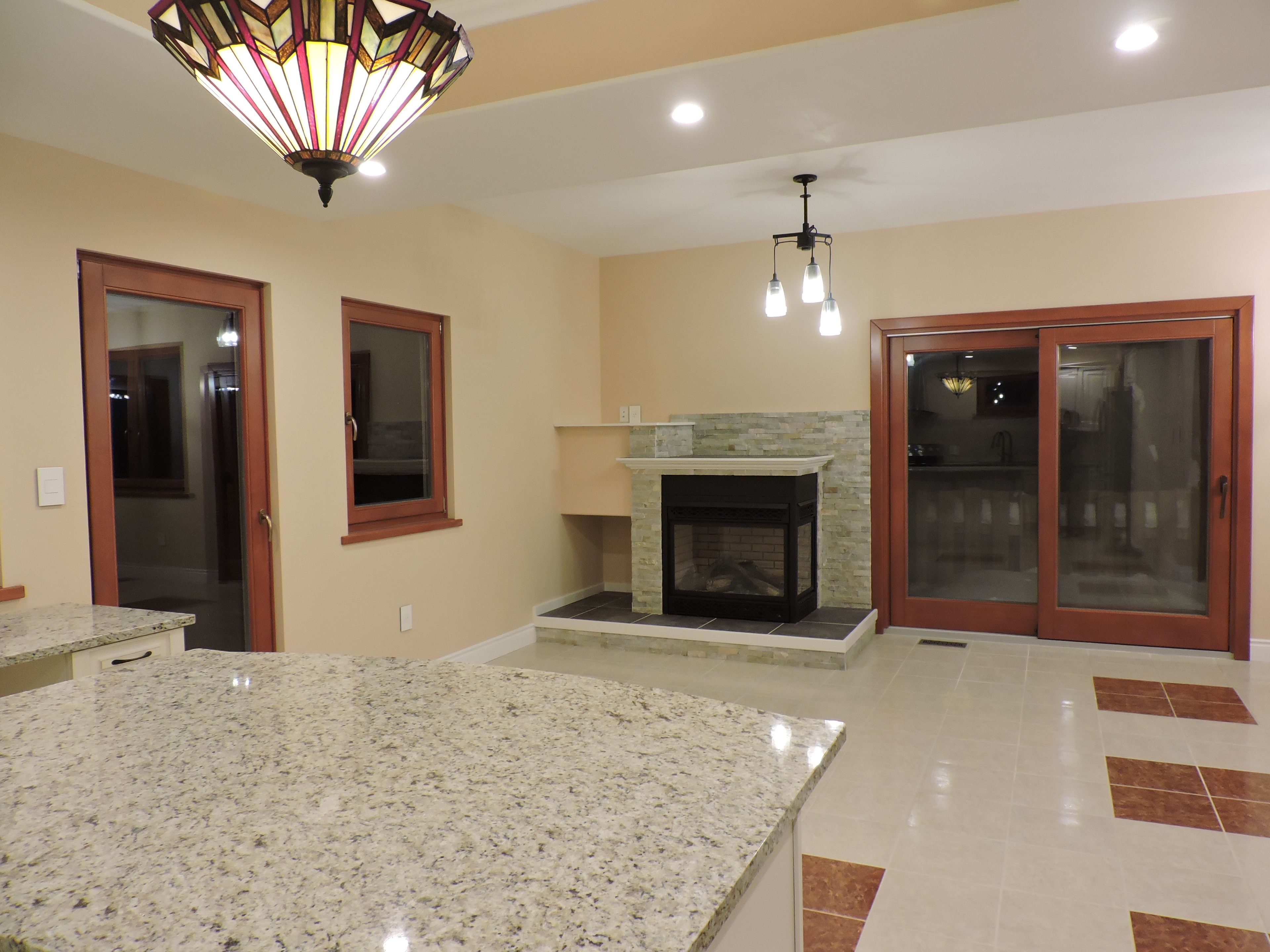 • Open concept main floor with modern kitchen and gas fireplace for comfort.