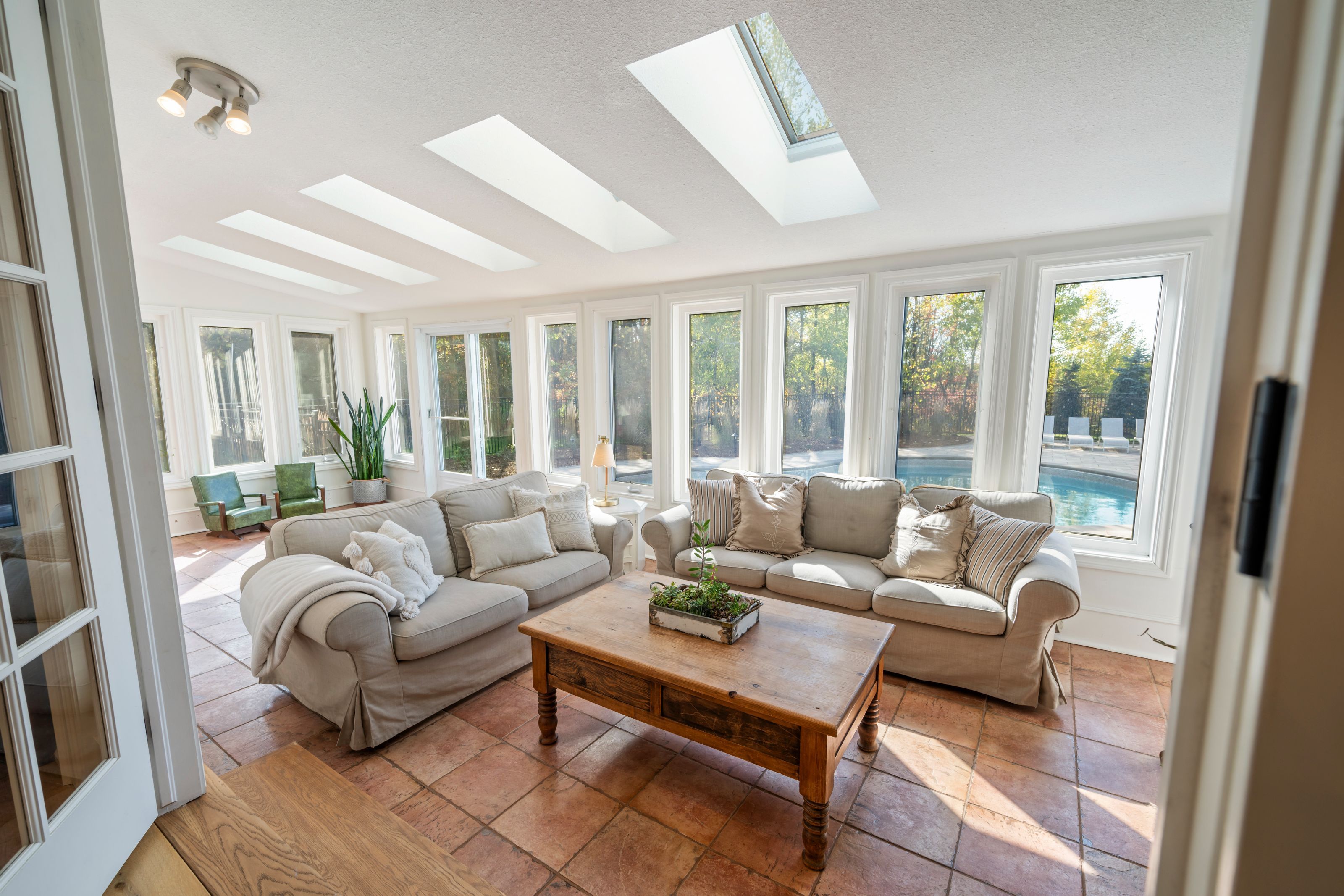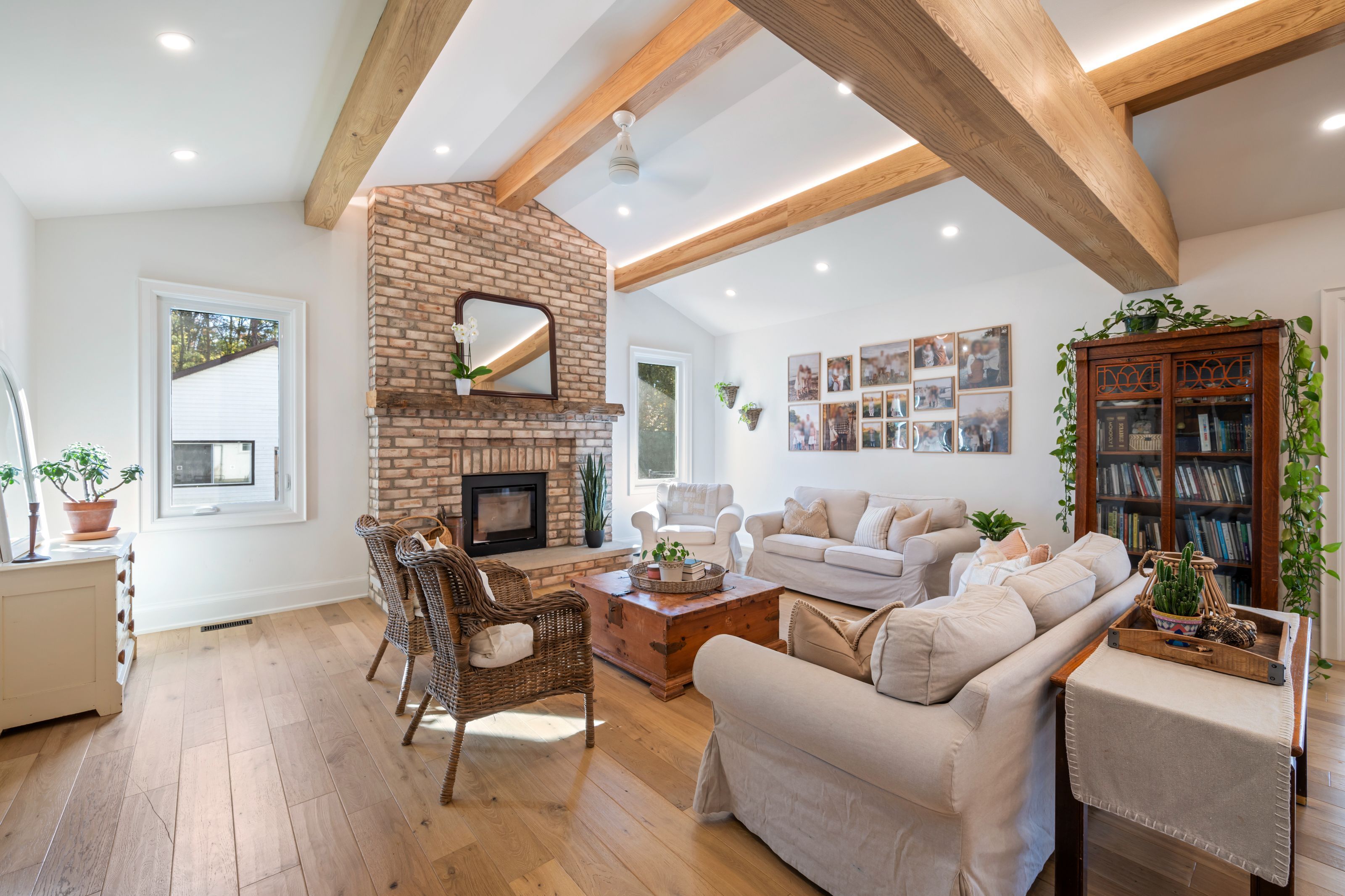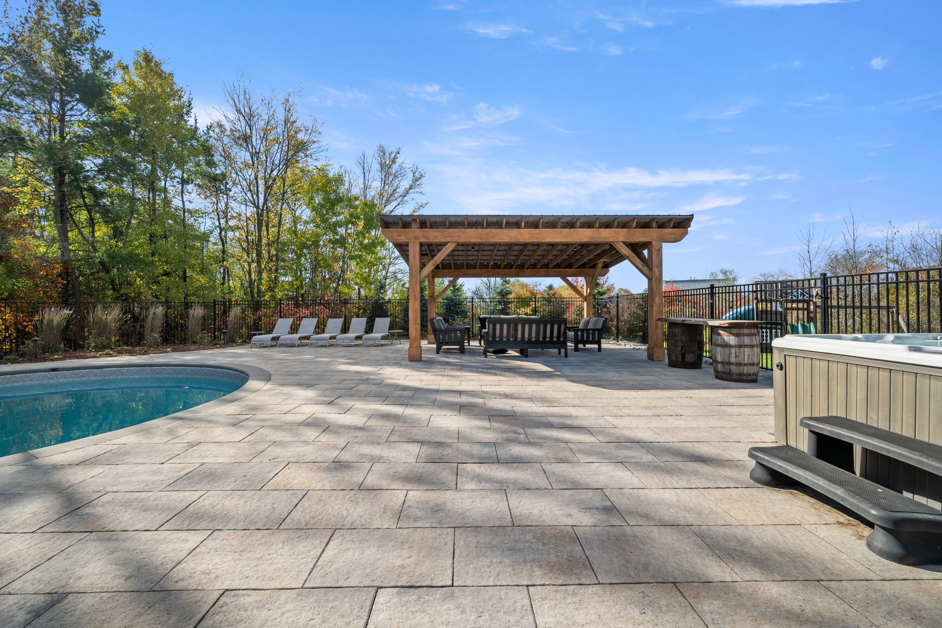 Welcome to this exceptional country estate, set on over 8 acres of picturesque, gorgeously landscaped land. From the moment you arrive the property will impress you, with its long winding driveway, which passes by a beautiful natural pond with a fountain, a fabulous resort-like back yard with multiple sitting areas, an inground pool, & a hot tub. Step inside to an inviting open concept main level, featuring a gorgeous chef-inspired kitchen with soaring high ceilings, premium finishes, and a seamless flow into the bright living & dining areas. A wonderful sunroom with heated floors offers year round comfort, & is the perfect place to unwind while enjoying panoramic views of the property. The main level boasts four large bdrms, including two luxurious suites, each with an ensuite bthrm & walk-in closet-ideal for family living, or hosting in style. There's also a 4 pc bath & a 3 pc shared bath on the main level, along with a convenient laundry room off the garage. The lower level is designed for versatility & entertainment, offering a family room, a 5th bedroom, & an in-law suite, that's perfect for your extended family to have their own space. It features a large bdrm, an updated bthrm with stackable laundry, a spacious kitchen/living/dining area, & a separate walk-up to the side yard. There is a door from the suite to the rest of the basement, so you could use the entire space for your own immediate family as well. Just a few of the upgrades include: hot tub '22, metal roof '22, stucco '22, approx. 2 acres of irrigation system, landscape lighting, & underground dog fence, many new windows, kitchen, flooring, & baths. Outdoors, the possibilities are endless, whether enjoying the heated pool (new liner '22), entertaining on the expansive patios & deck, simply soaking in the peace & beauty of country living, or exploring the acres of woods & skating on the pond in winter. Truly a one-of-a-kind property offering space, luxury, & unmatched tranquility! Luxury certified