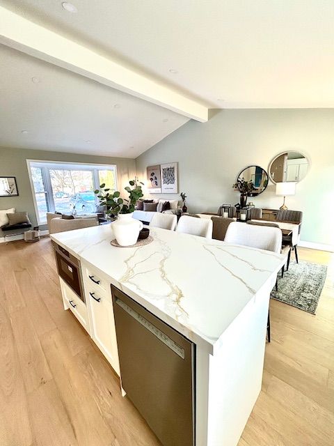 Stunning fully renovated home in a family-friendly cul-de-sac! Stay tuned for more & better pictures soon. Located in a highly sought-after neighborhood, this beautiful home has been completely renovated from top to bottom, nothing has been left untouched! From all plumbing (including underground), electrical, insulation, windows, doors, lighting, flooring, bathrooms, kitchen, appliances, and so much more! Everything is brand new and professionally done with city permits. Featuring high ceilings, an open-concept layout, and a pie-shaped lot with a gorgeous new deck perfect for entertaining. The home offers a walk-out basement with the potential to create an in-law suite, complete with an additional bedroom, full bathroom and kitchenette already in place. With 3+1 spacious bedrooms, 3 bathrooms, and almost carpet-free living (cozy carpet only in the basement), this home combines style, comfort, and practicality. The driveway fits up to 8 cars, ideal for gatherings or multiple vehicles. You don't want to miss the opportunity to see this stunning, move-in-ready home, truly a turnkey gem for your family!