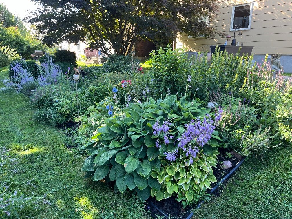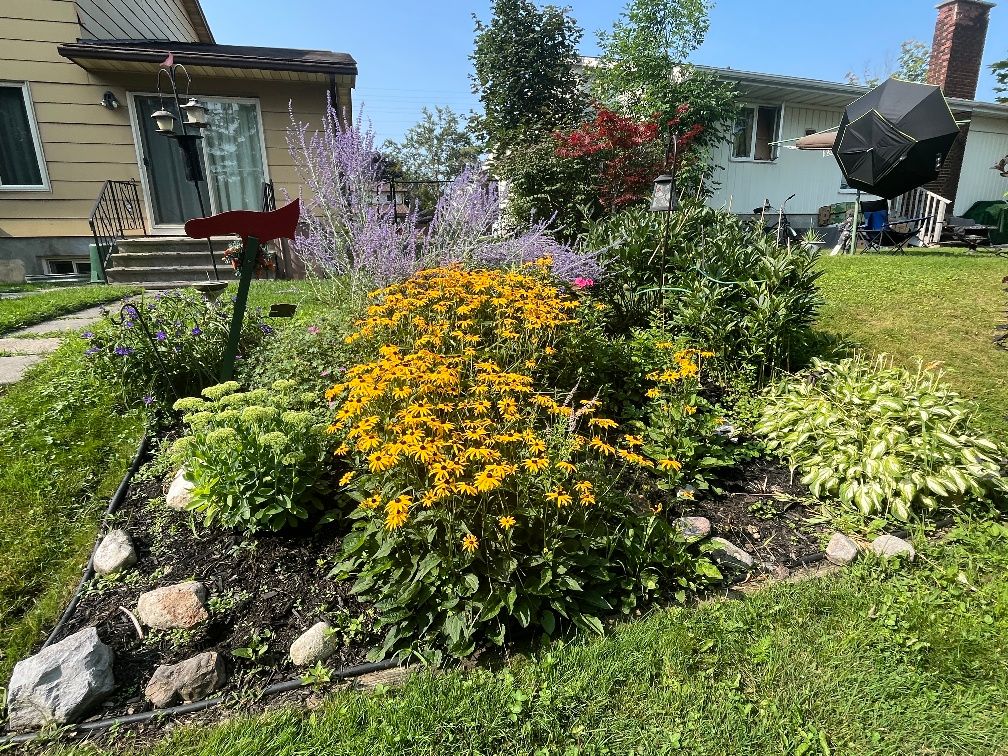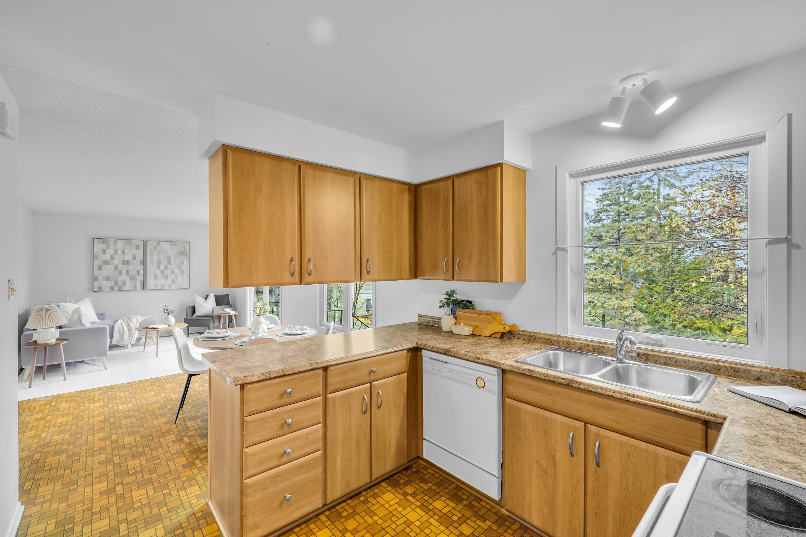 • Family room with patio door access to a landscaped backyard.