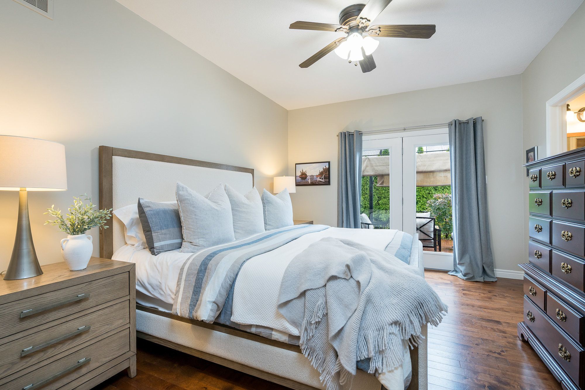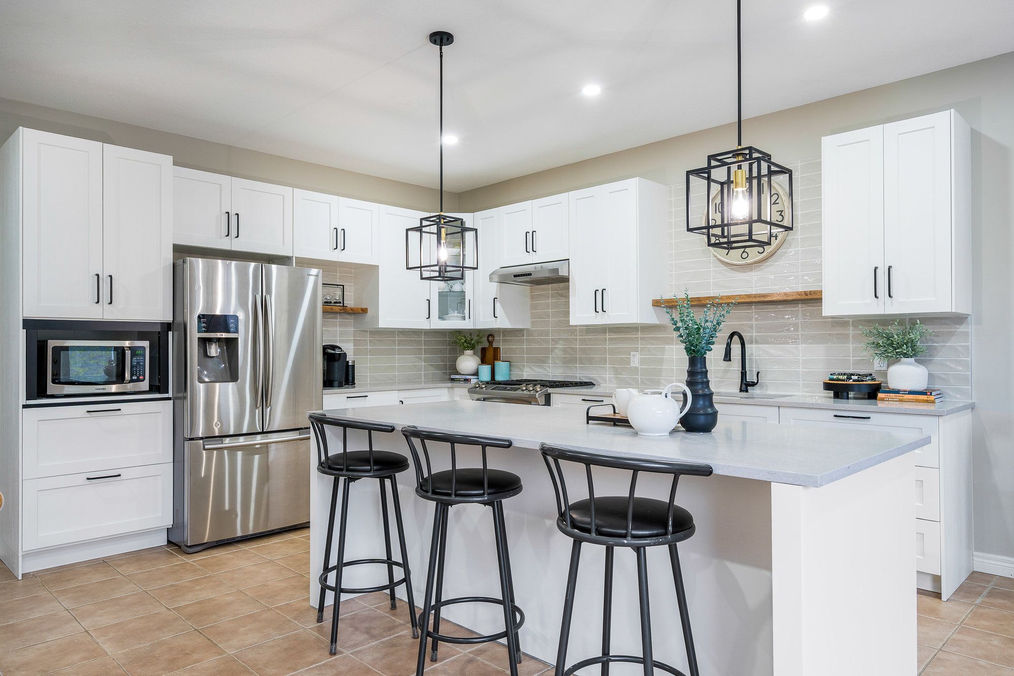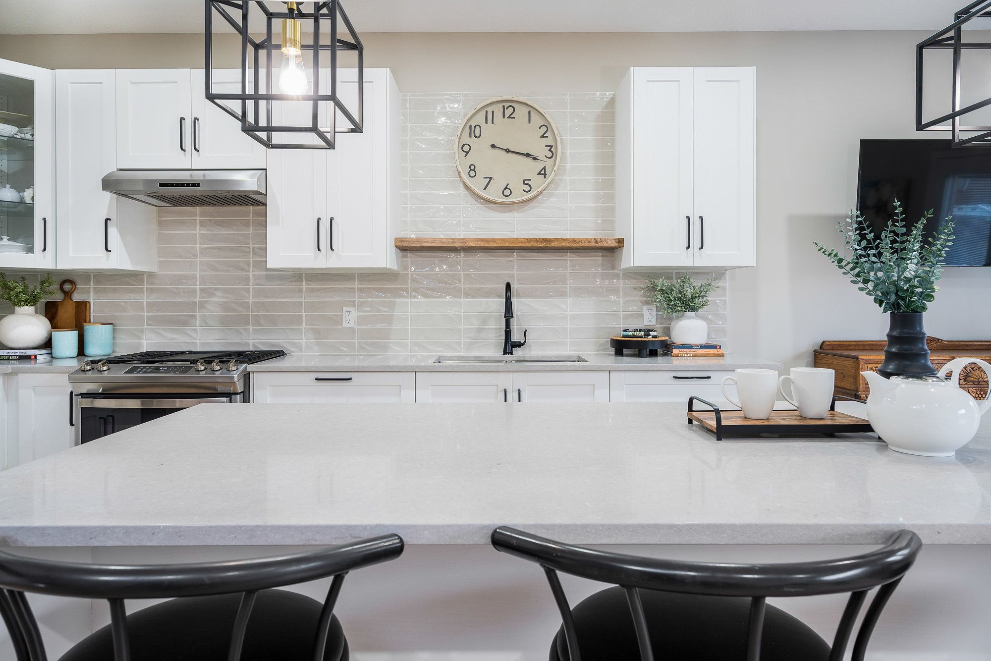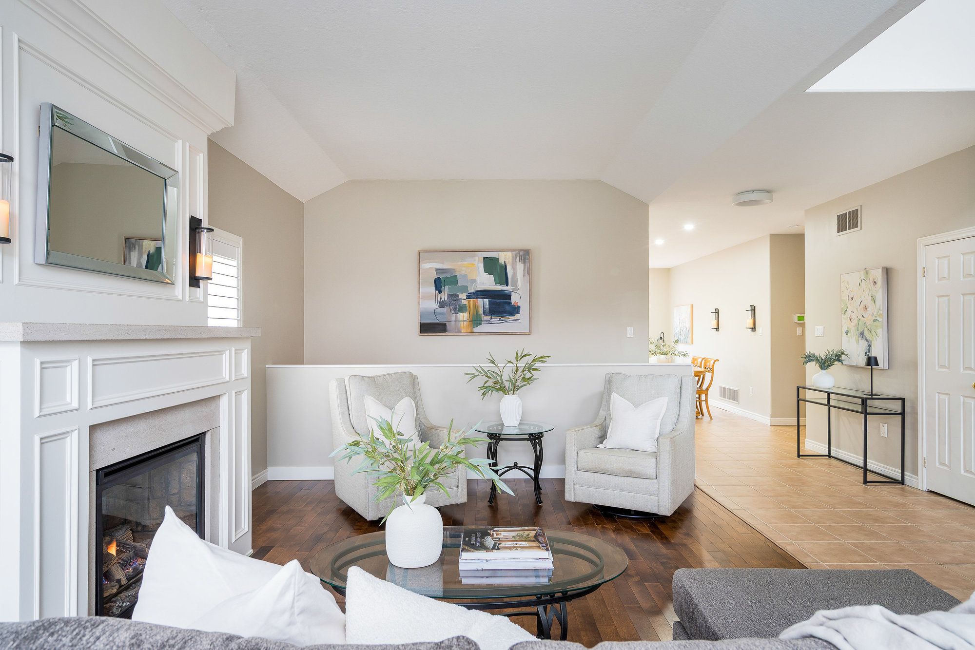 Nestled on a picturesque street in the sought-after creekside community, this exceptional bungalow offers effortless, turn-key living. Thoughtfully designed and meticulously maintained, this home combines elegant style, comfort, and practicality, perfect for both everyday living and entertaining. From the moment you arrive, you'll be charmed by beautifully landscaped gardens and a welcoming west-facing front porch. Inside, the bright and spacious foyer with vaulted ceiling leads to an open-concept living area filled with natural light. A stunning picture window and cozy gas fireplace create an inviting atmosphere. The new kitchen is a dream showcasing timeless cabinetry, a sit-up breakfast bar, and newer stainless steel appliances. Step from the dining area to the private backyard, featuring a large deck with hot tub surrounded by lush cedar hedging for exceptional privacy. The main floor features two generous bedrooms and two full bathrooms, including a peaceful primary suite with walk-in closet, ensuite, and direct access to the deck, the perfect spot for morning coffee. The guest bedroom enjoys its own access to a thoughtfully designed 3-piece bath with a curb-free, walk-in shower using the premium schluter waterproofing system, ideal for accessibility and ease of use. Main floor laundry adds everyday convenience. The finished lower level offers bright, versatile living space with recessed lighting, a gas fireplace, a third bedroom, stunning full bathroom (also with curb-less shower), and an expansive flex room. A double garage with inside entry completes this exceptional home. Designed with accessibility in mind from wider doorways to barrier-free bathrooms and ideally located across from a park and steps to the collingwood trail system, this home offers the perfect blend of lifestyle, and community - a place where every detail has been carefully considered for years of enjoyment.